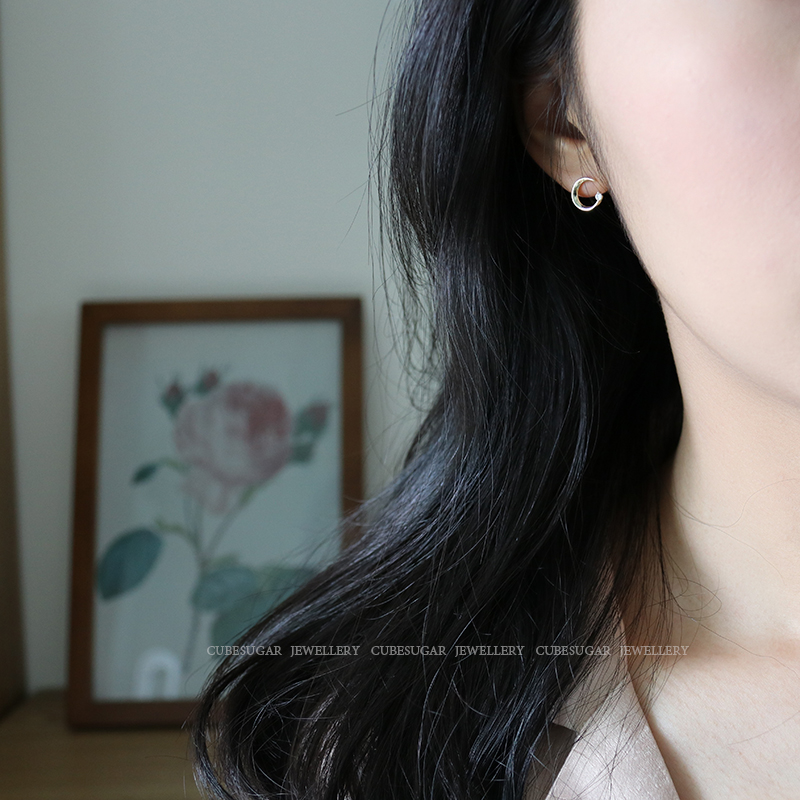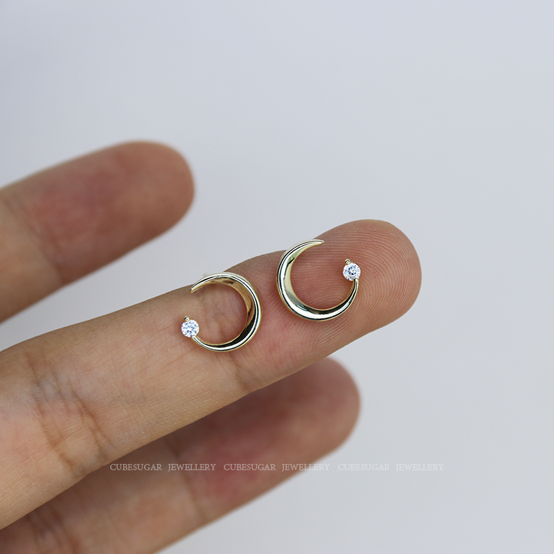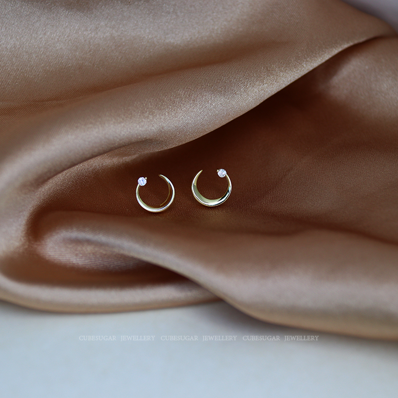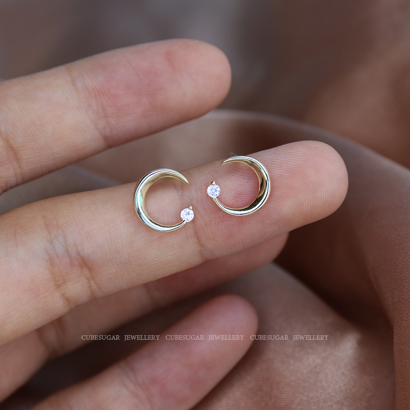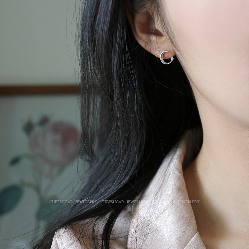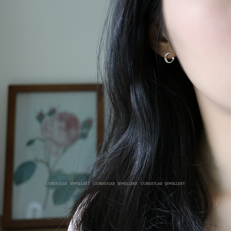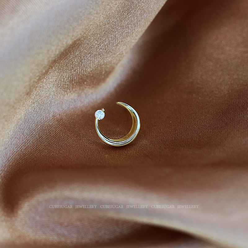 通體925純銀月亮耳環少女百搭小巧個性網紅精致小耳垂適合的耳釘1入