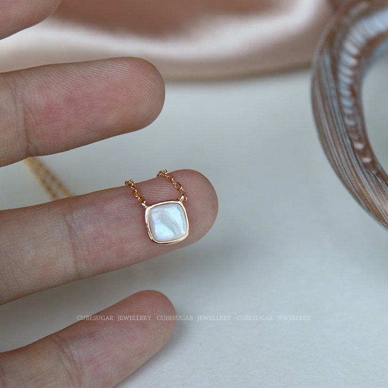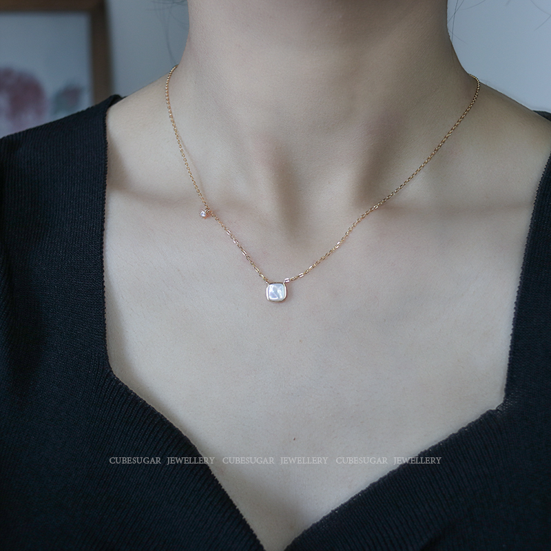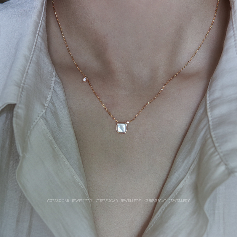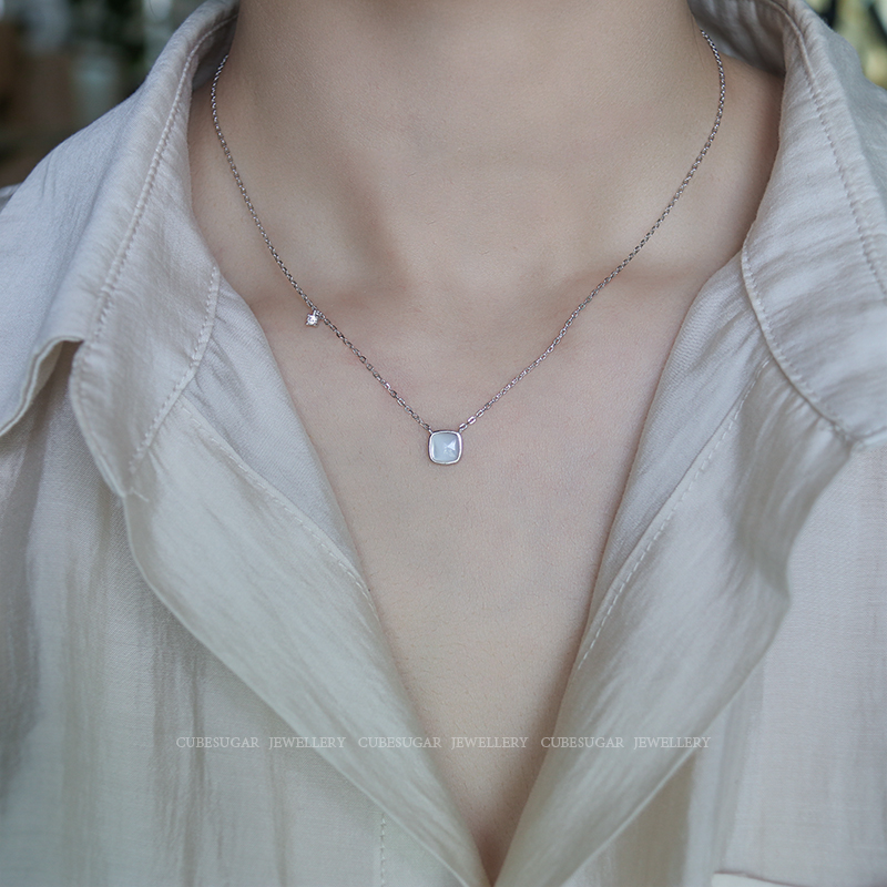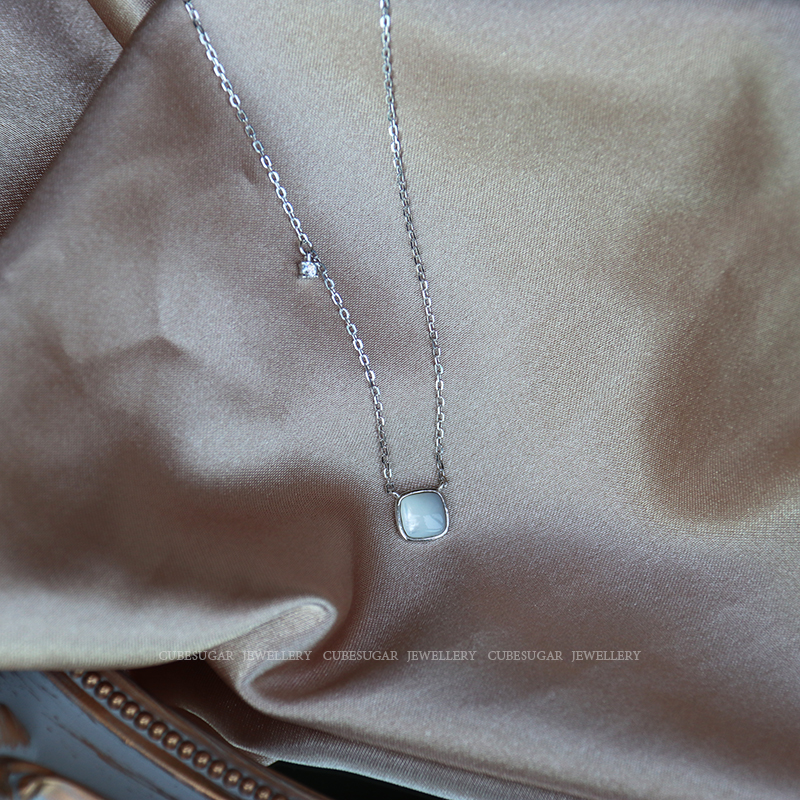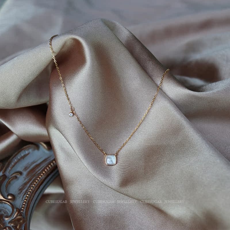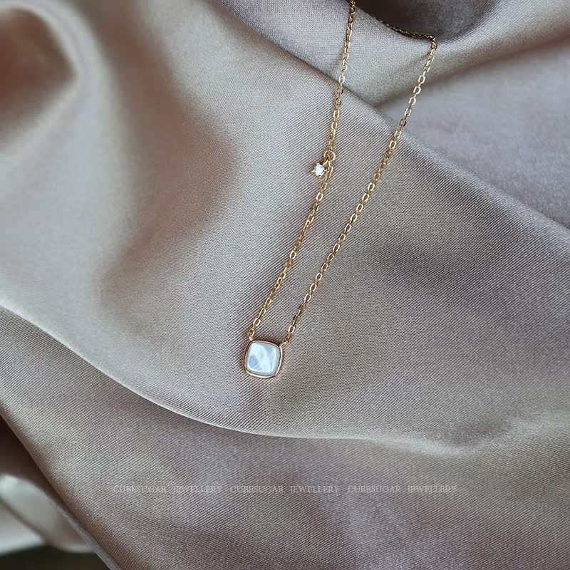 通體925純銀方形天然白蝶貝項鏈高級感輕奢小眾簡約氣質鎖骨鏈女1入