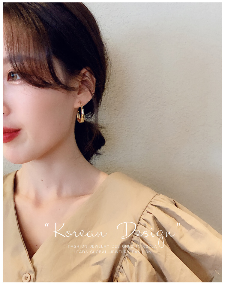 質感蛋形耳圈2019新款潮氣質韓國簡約冷淡風耳環輕奢名媛網紅耳墜1入
