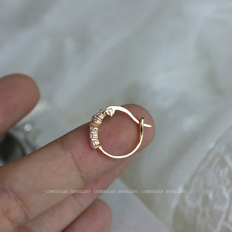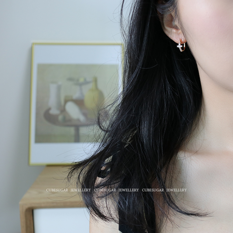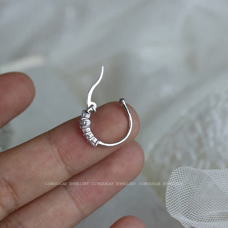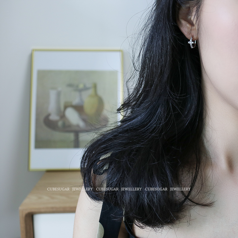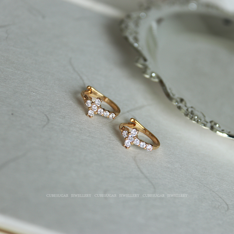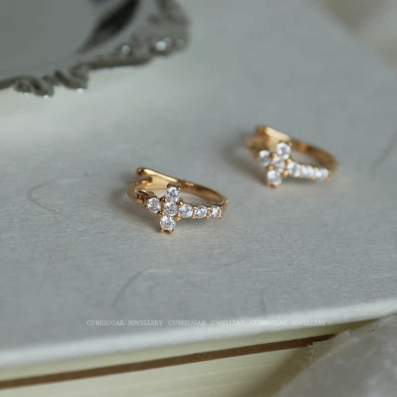 通體925純銀鑲鉆十字架耳扣精致鋯石簡約個性時尚氣質韓國耳環1入