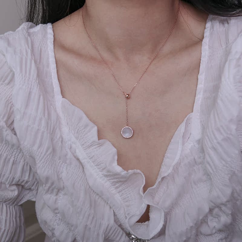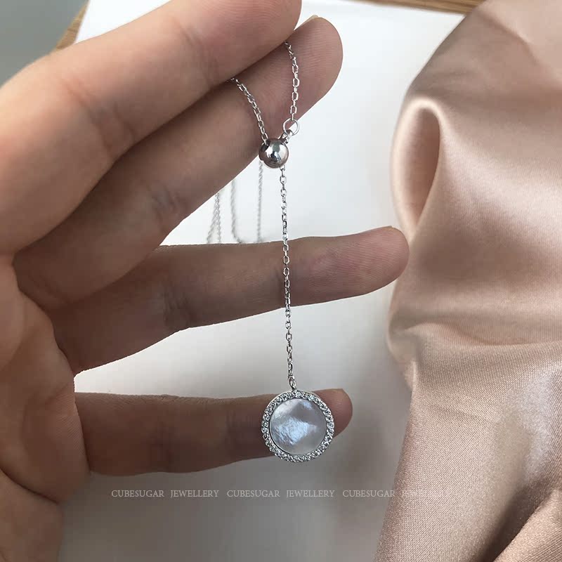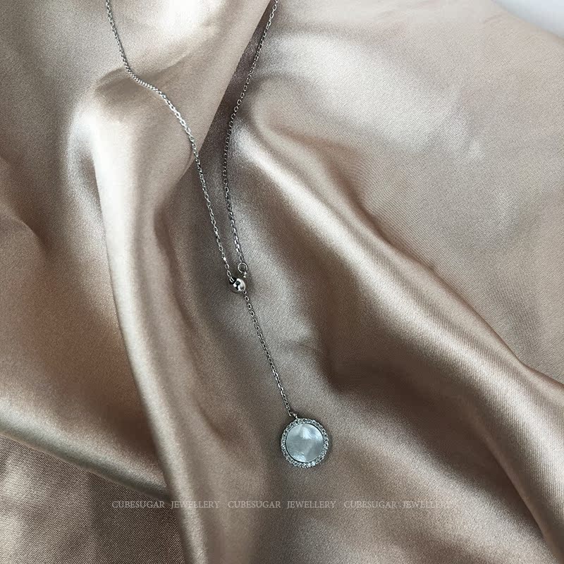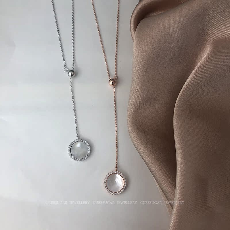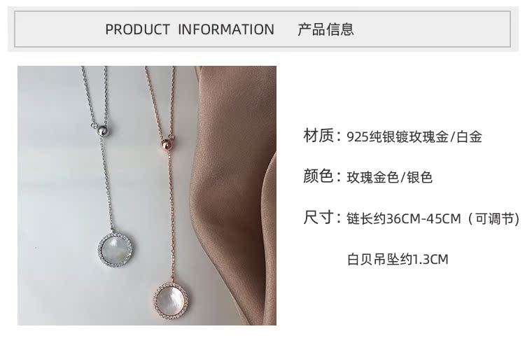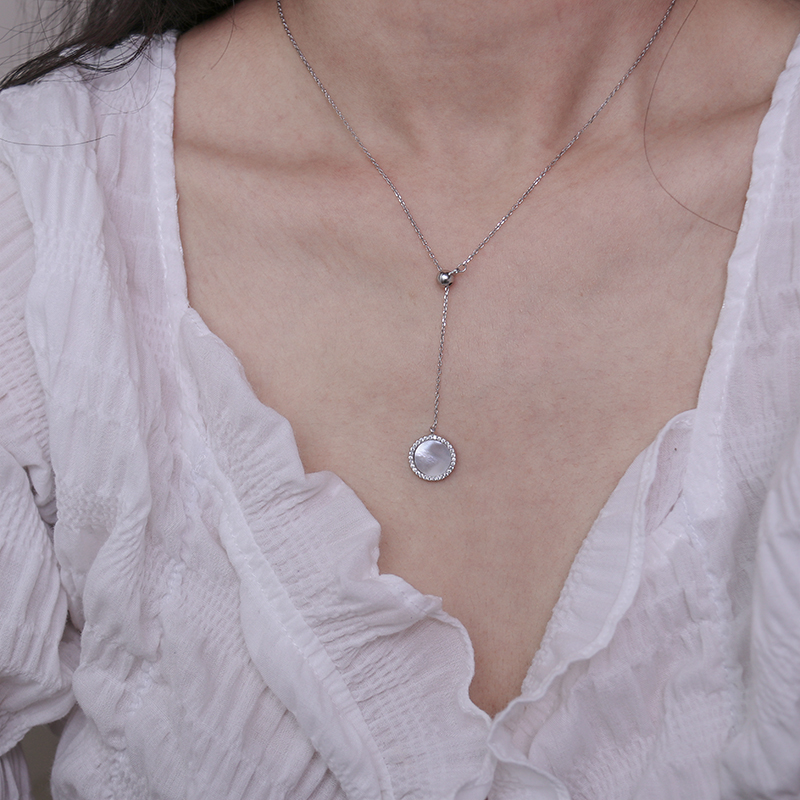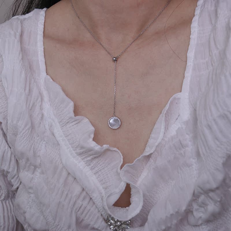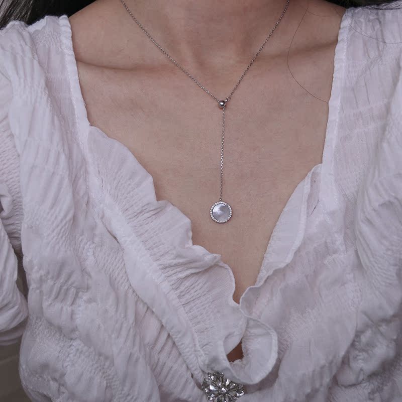 通體925純銀光澤白貝殼項鏈抽拉可調節輕奢小眾簡約Y字鏈鎖骨鏈女1入