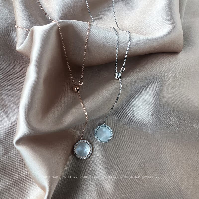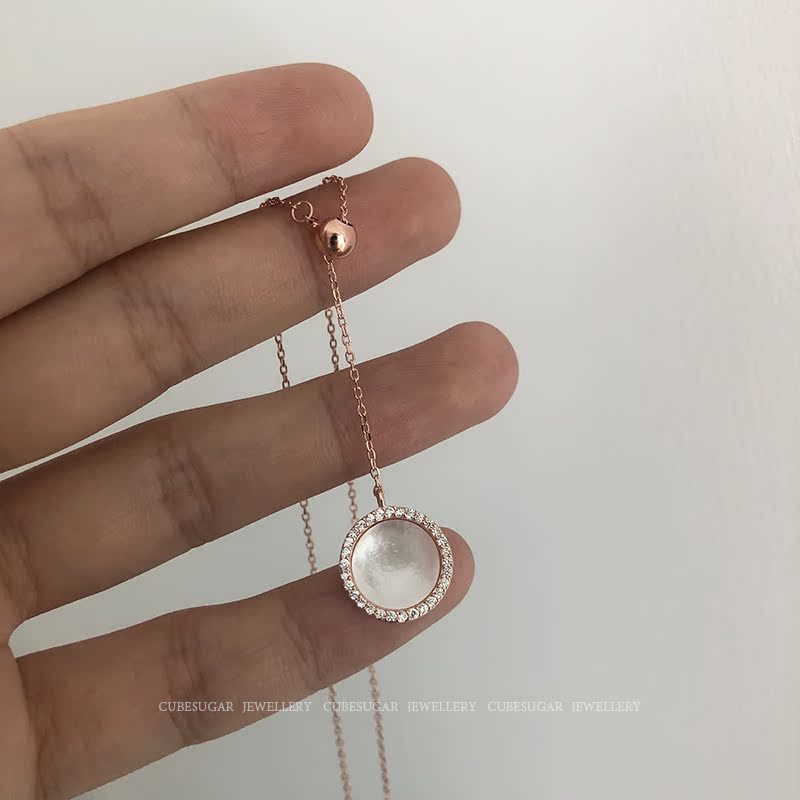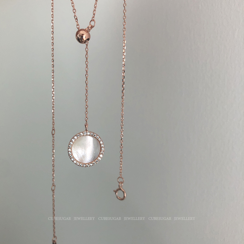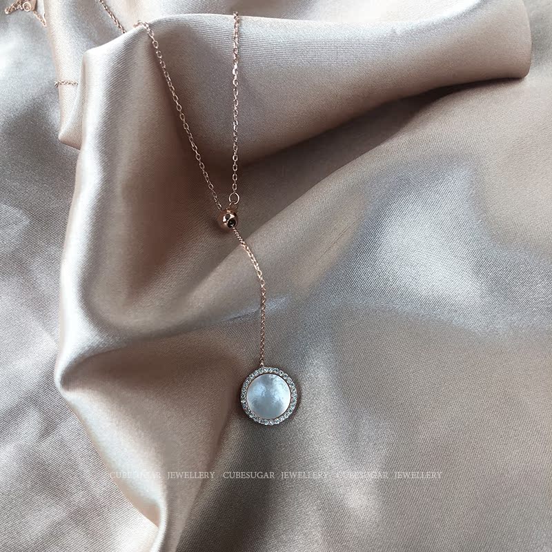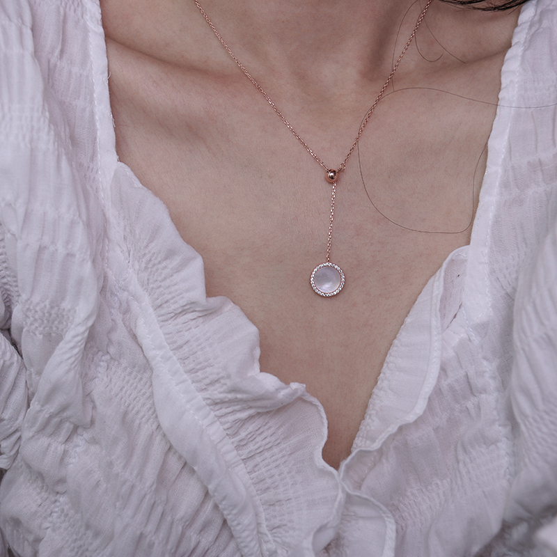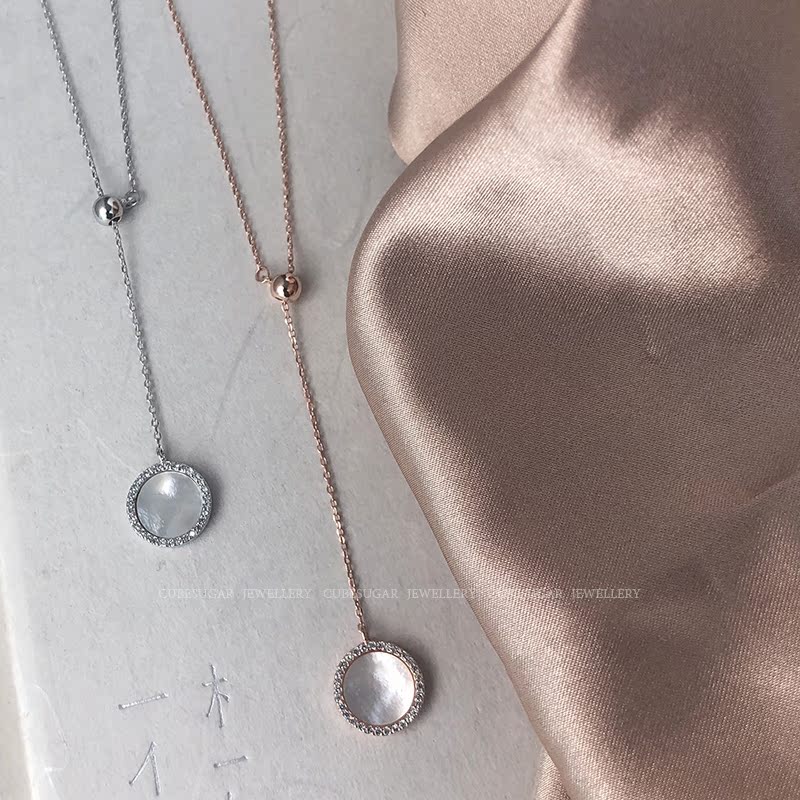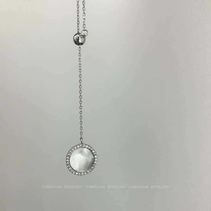 通體925純銀光澤白貝殼項鏈抽拉可調節輕奢小眾簡約Y字鏈鎖骨鏈女1入