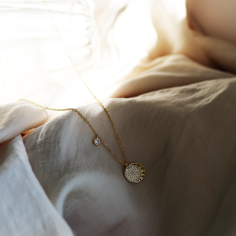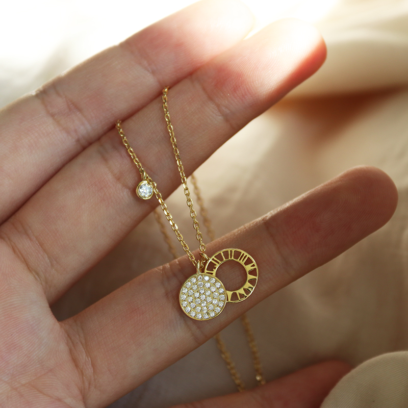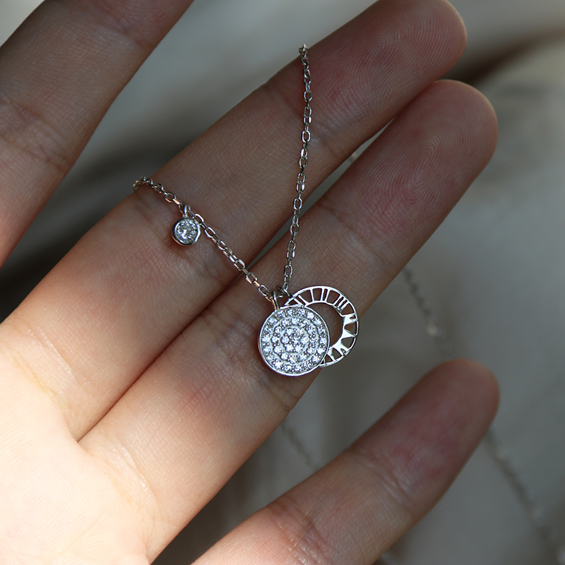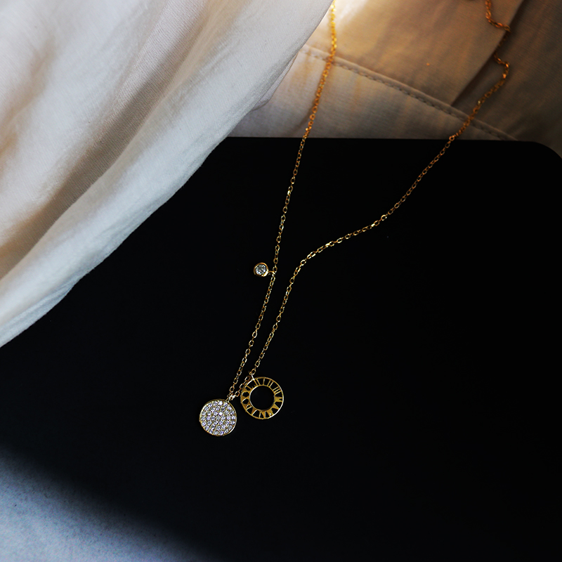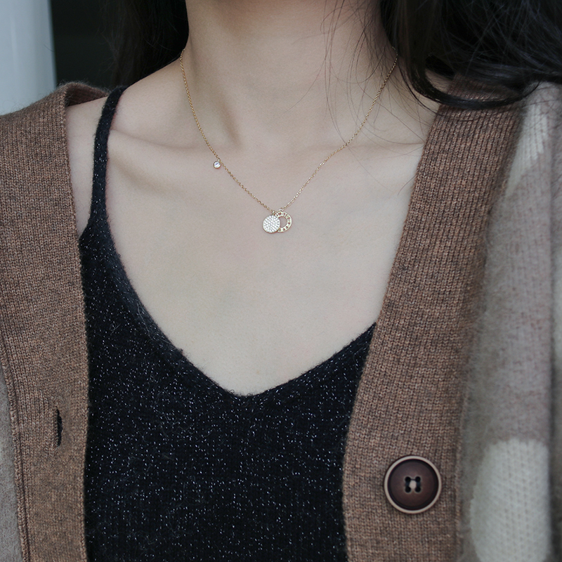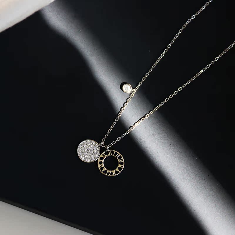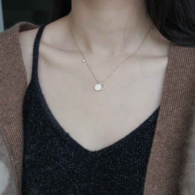 設計感通體925純銀幾何圓形鑲鉆項鏈韓國個性小眾圓牌百搭鎖骨鏈1入