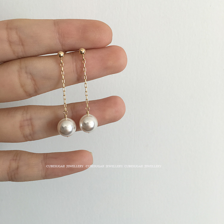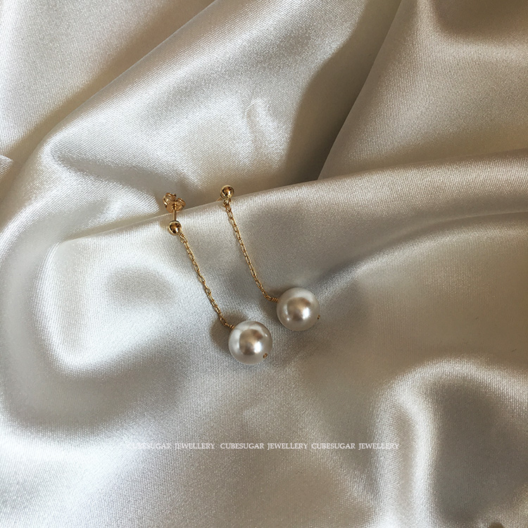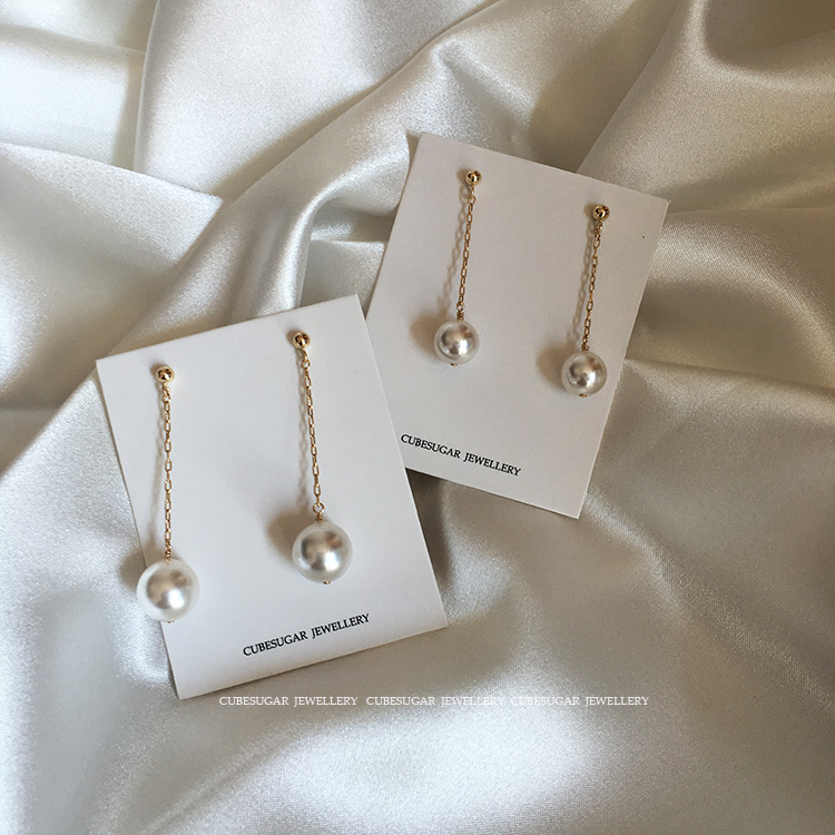 風在吹。美國14k包金 高品質仿珍珠吊墜 溫婉百搭 中長款耳環耳飾1入