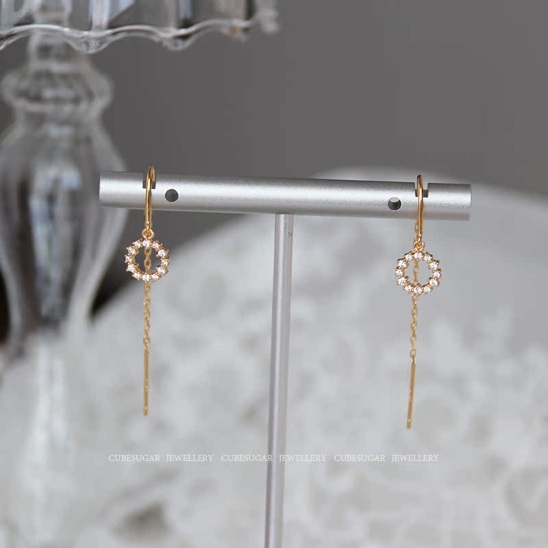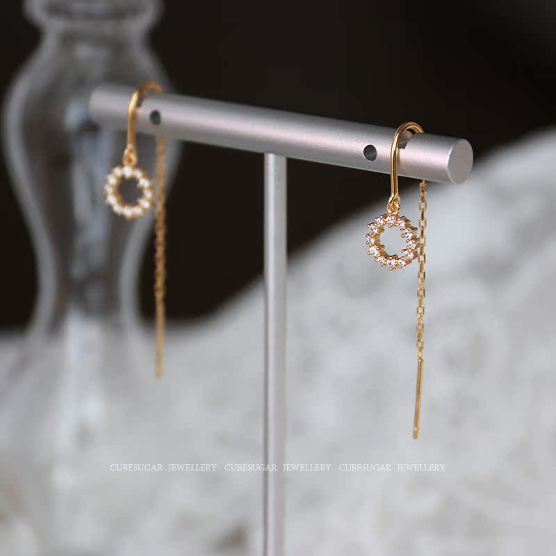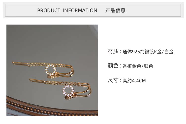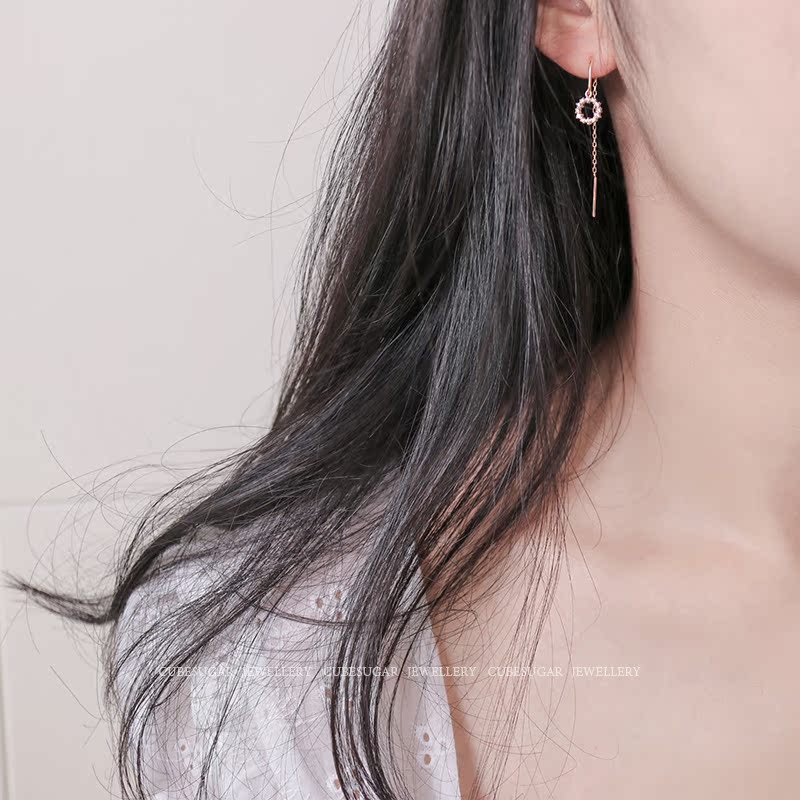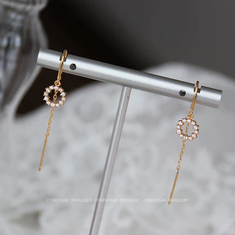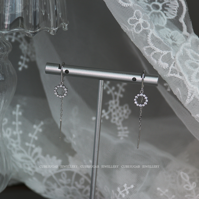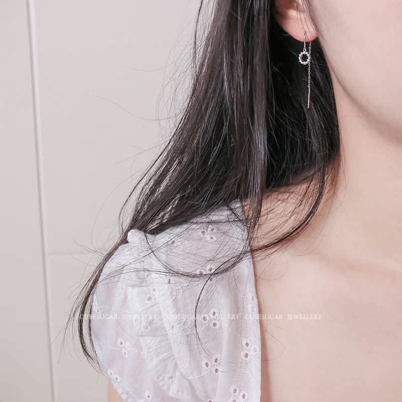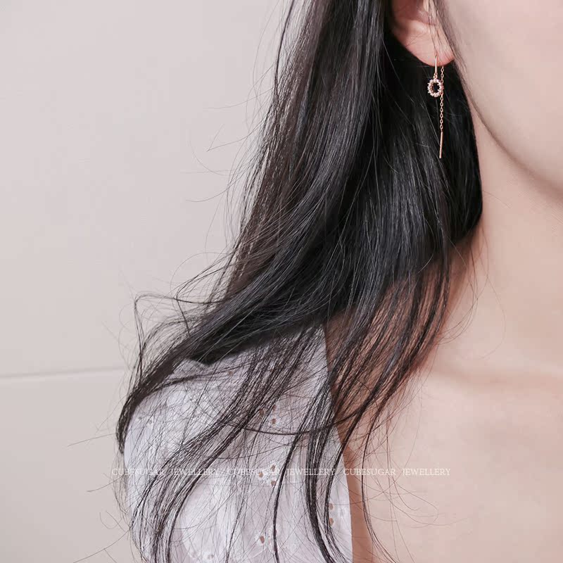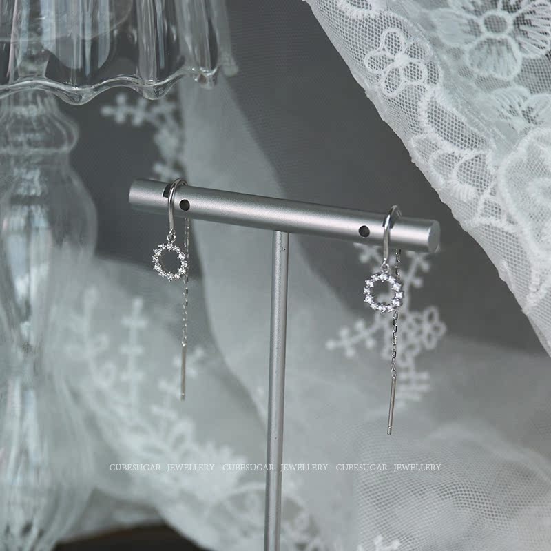 通體925純銀圓形鑲鉆長款耳線精致氣質輕奢流蘇超仙簡約顯瘦耳環1入