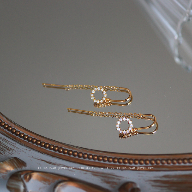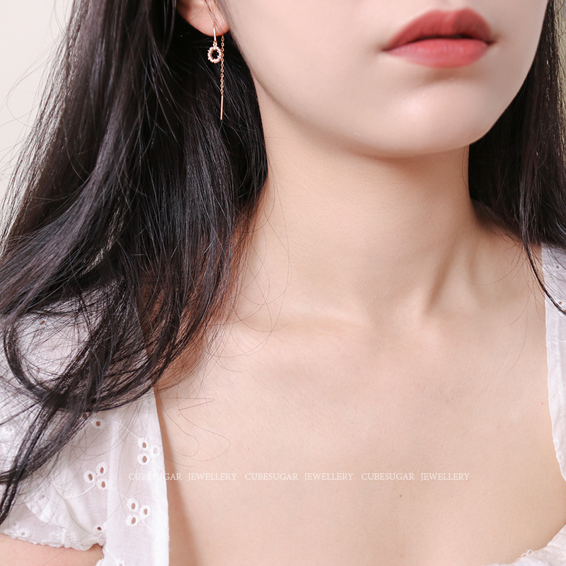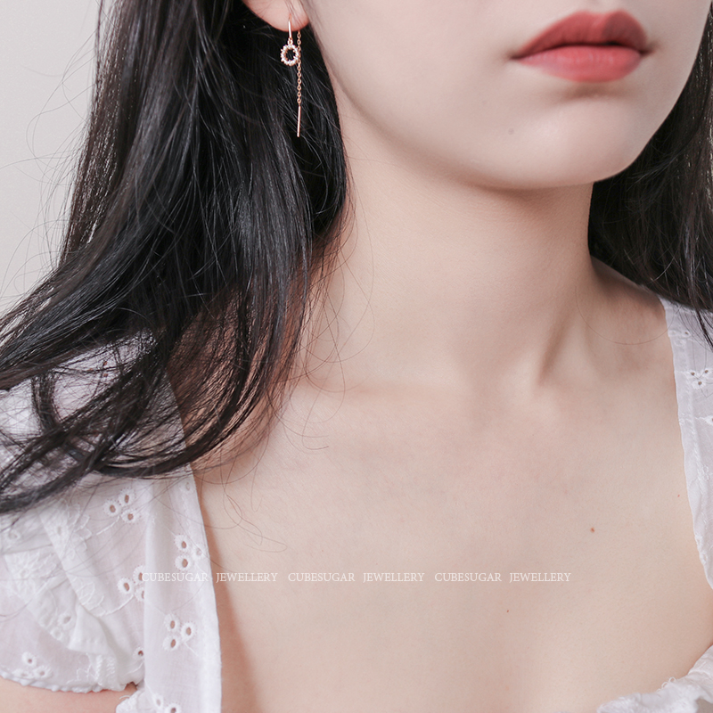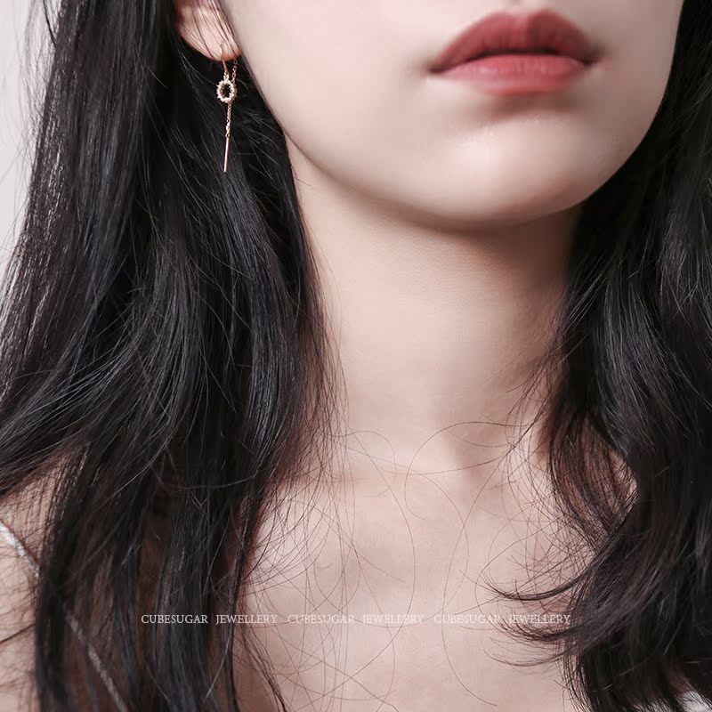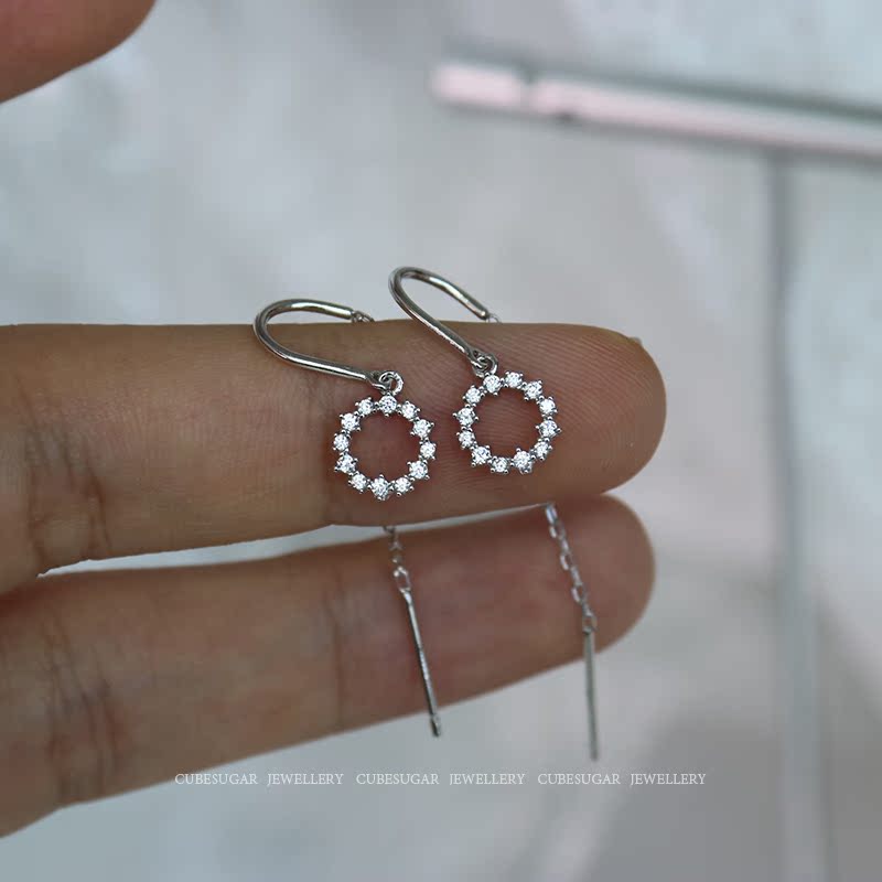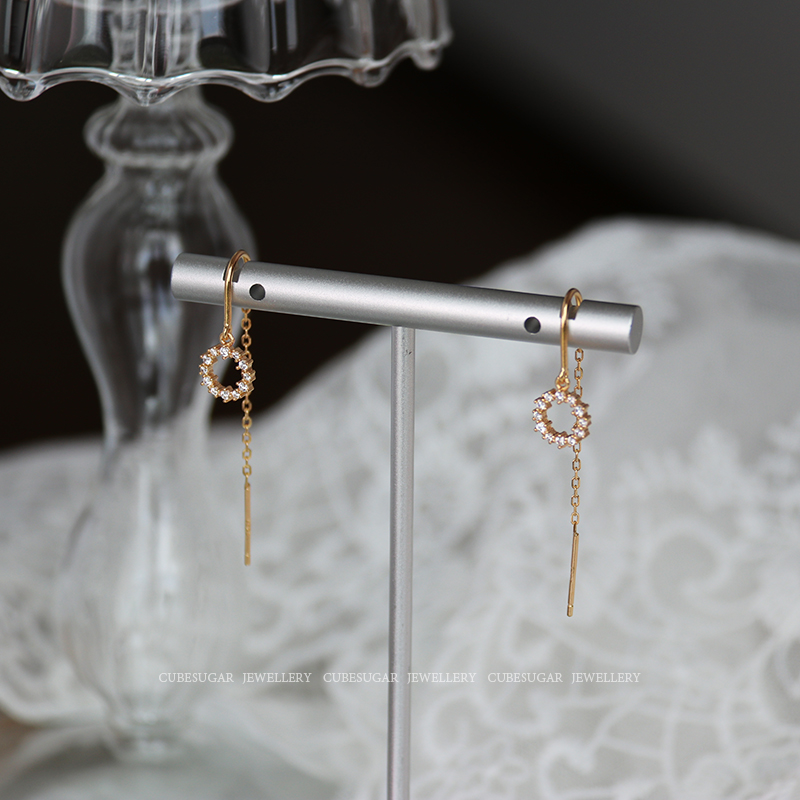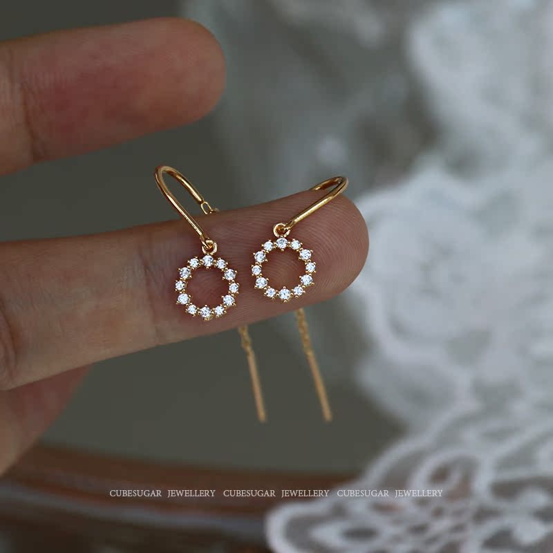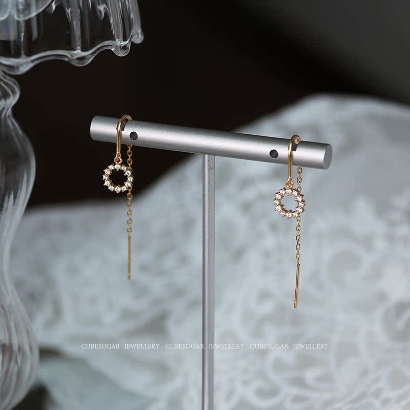 通體925純銀圓形鑲鉆長款耳線精致氣質輕奢流蘇超仙簡約顯瘦耳環1入
