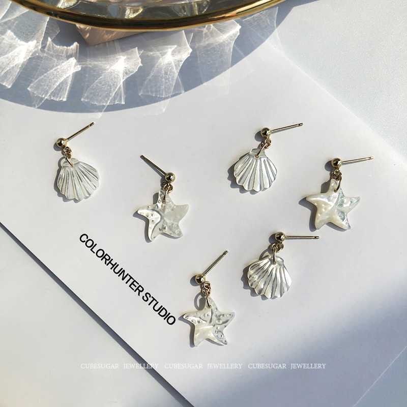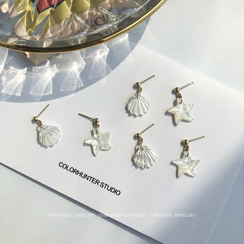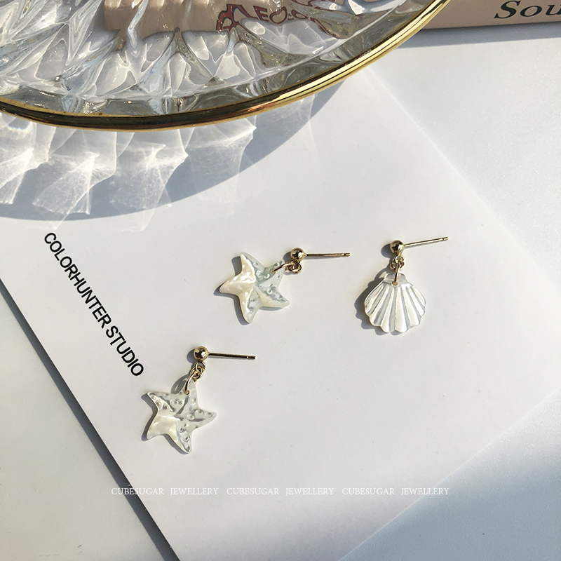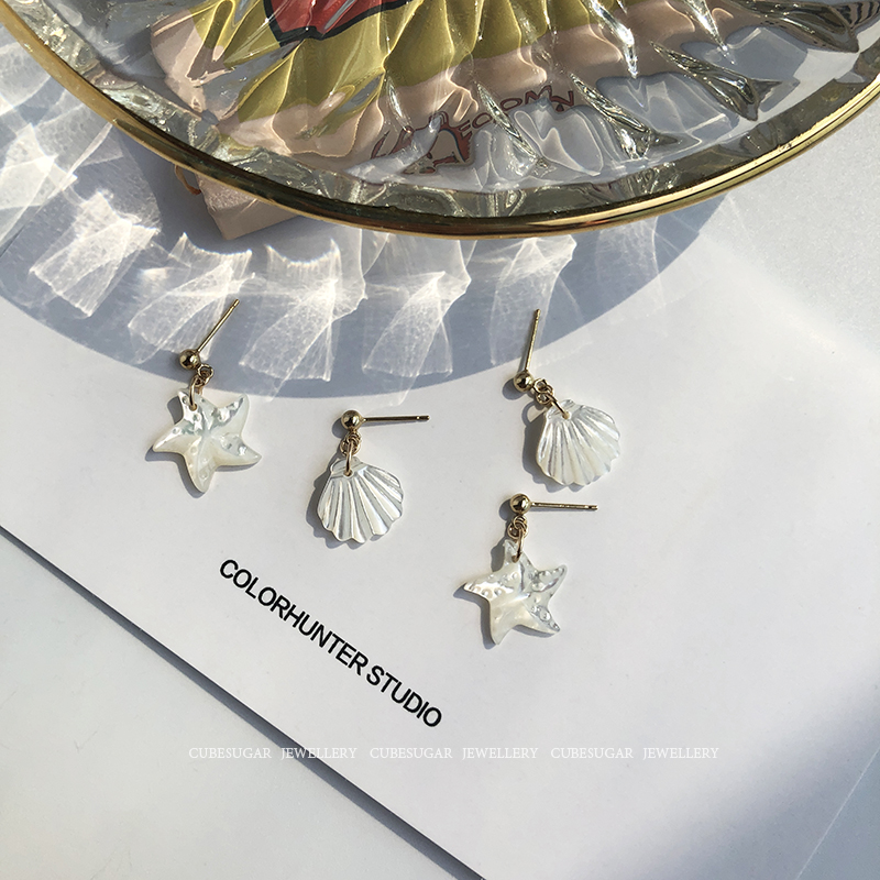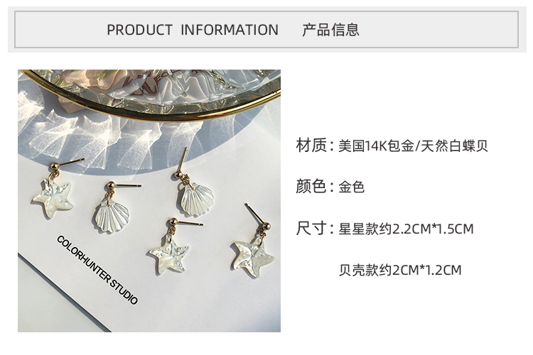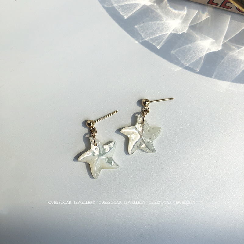 軟萌 美國14K包金天然白貝星星海星耳環少女可愛俏皮氣質個性耳飾1入