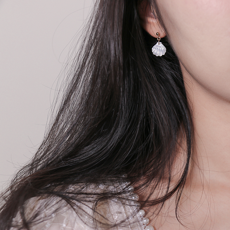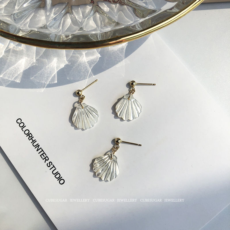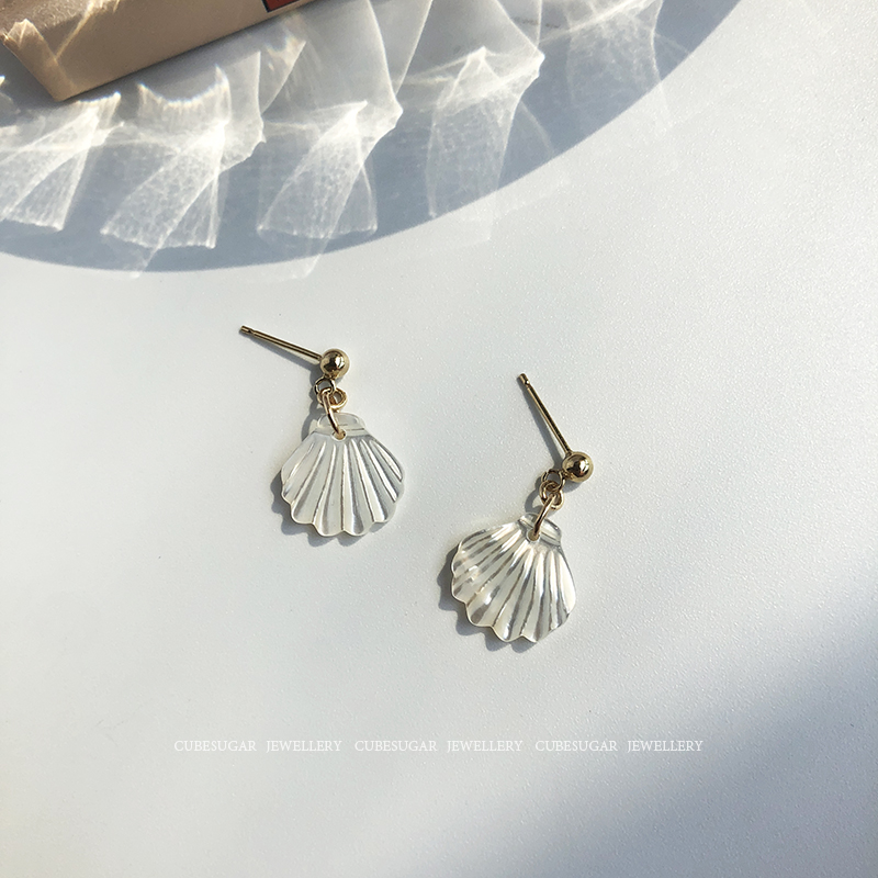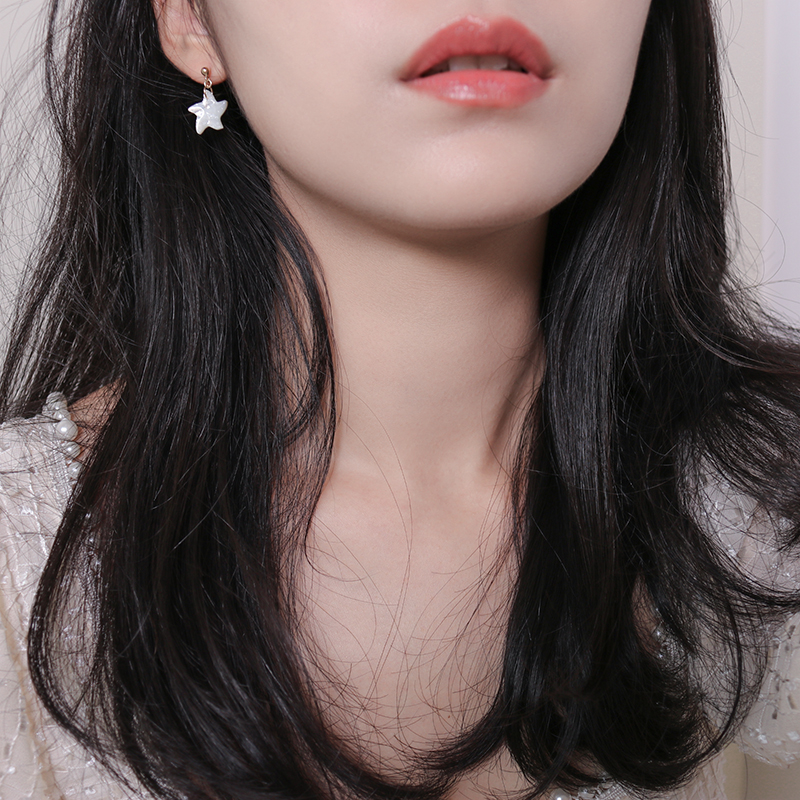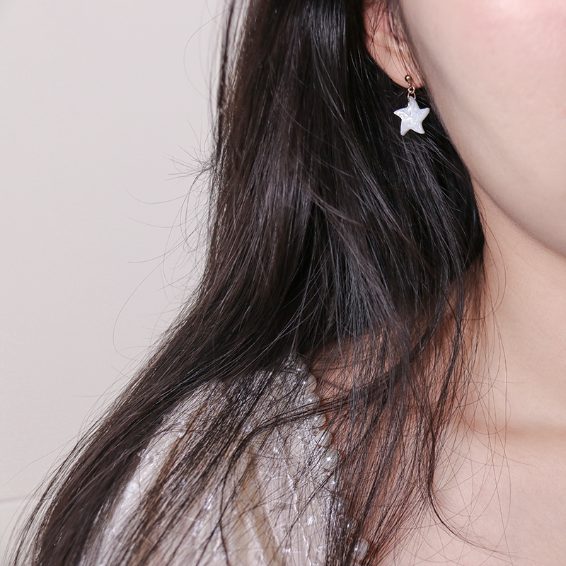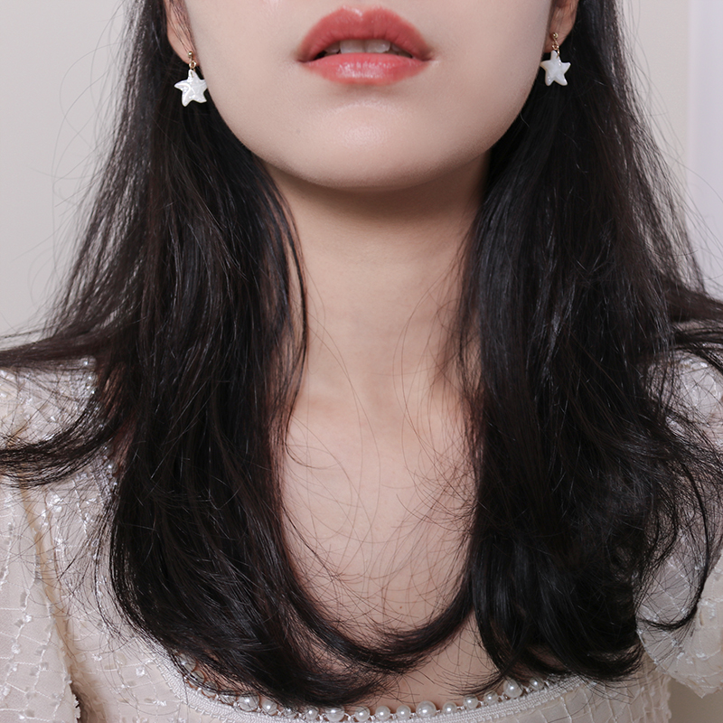 軟萌 美國14K包金天然白貝星星海星耳環少女可愛俏皮氣質個性耳飾1入