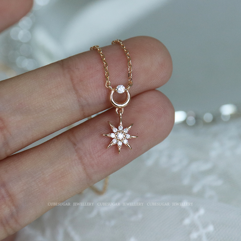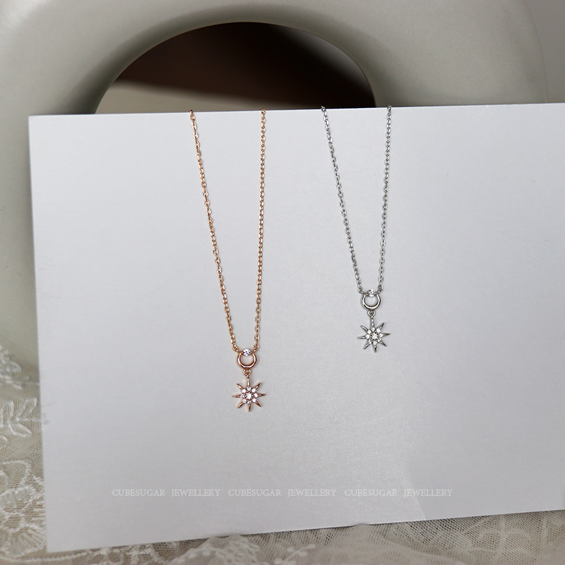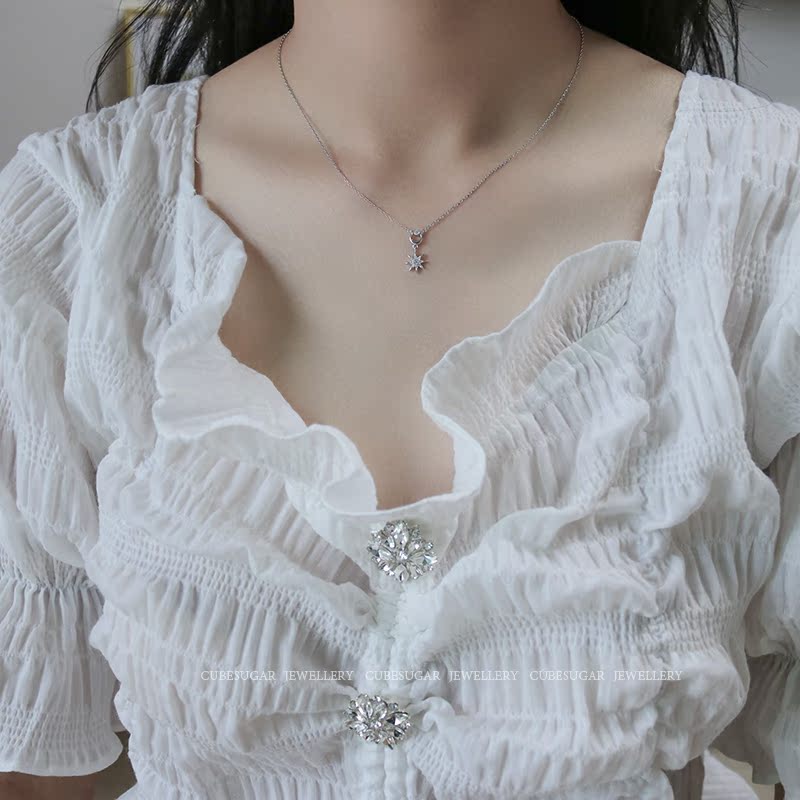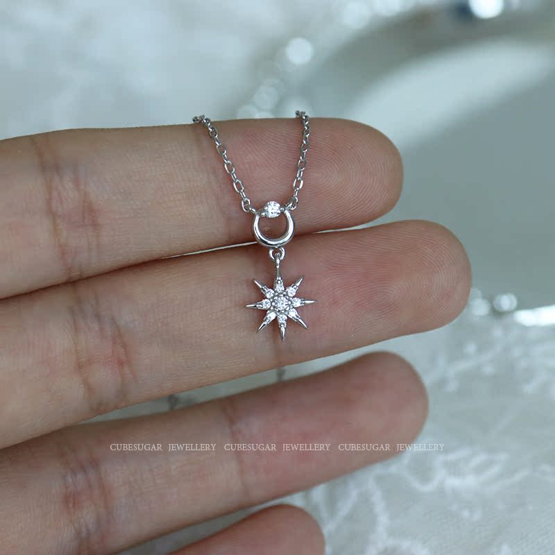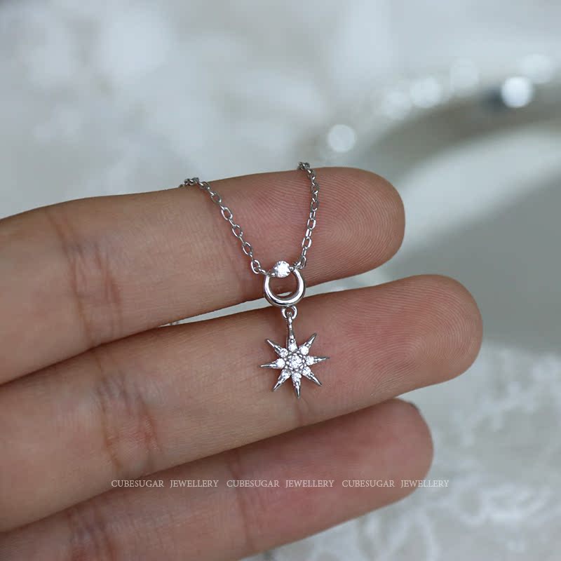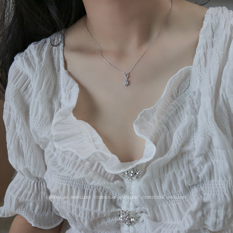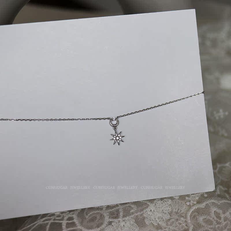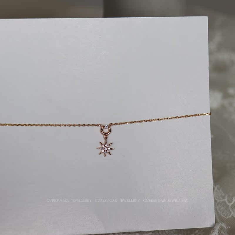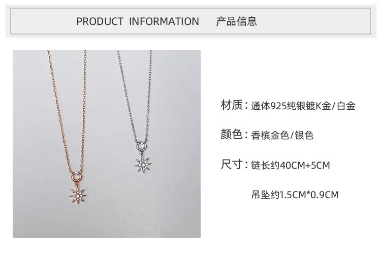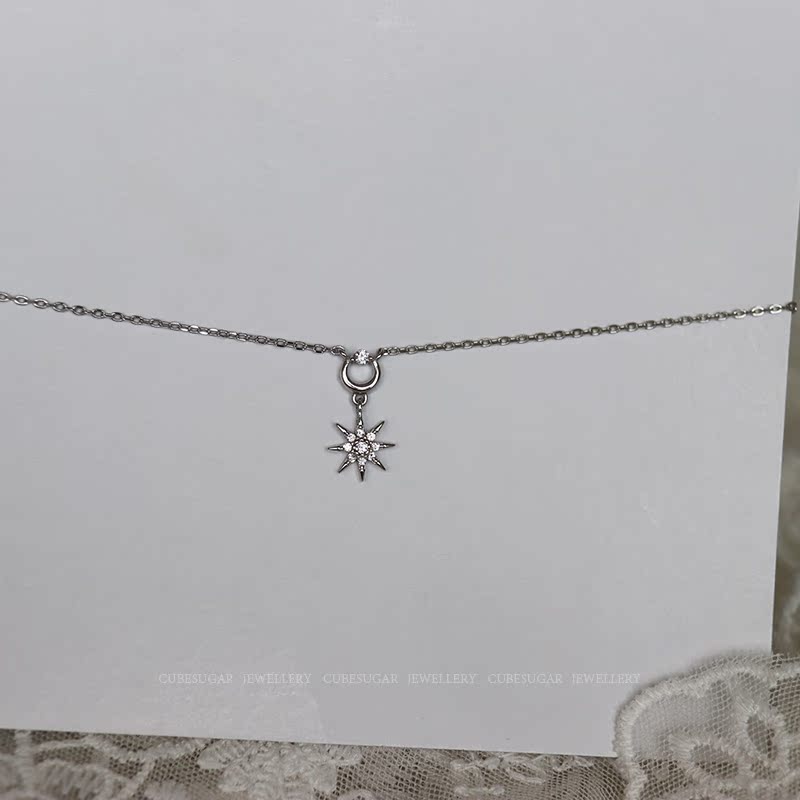通體925純銀精致星星項鏈鑲鉆高級感小巧簡約輕奢小眾鎖骨鏈女1入