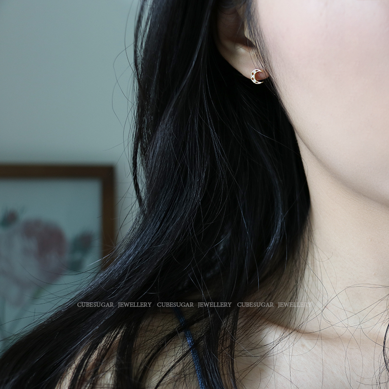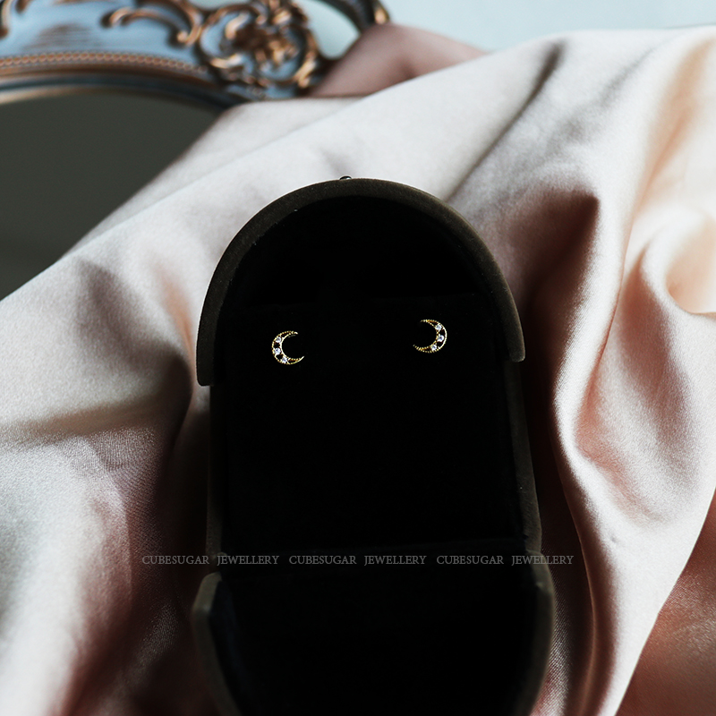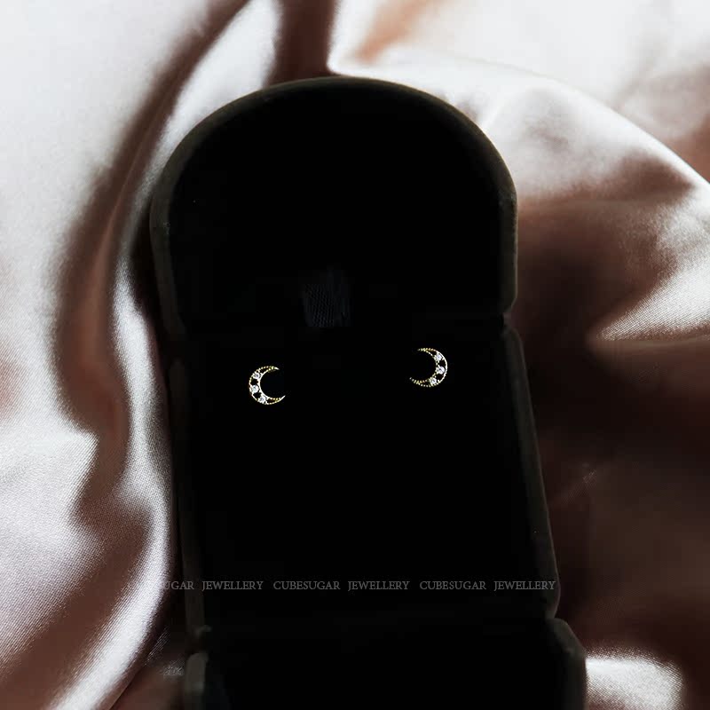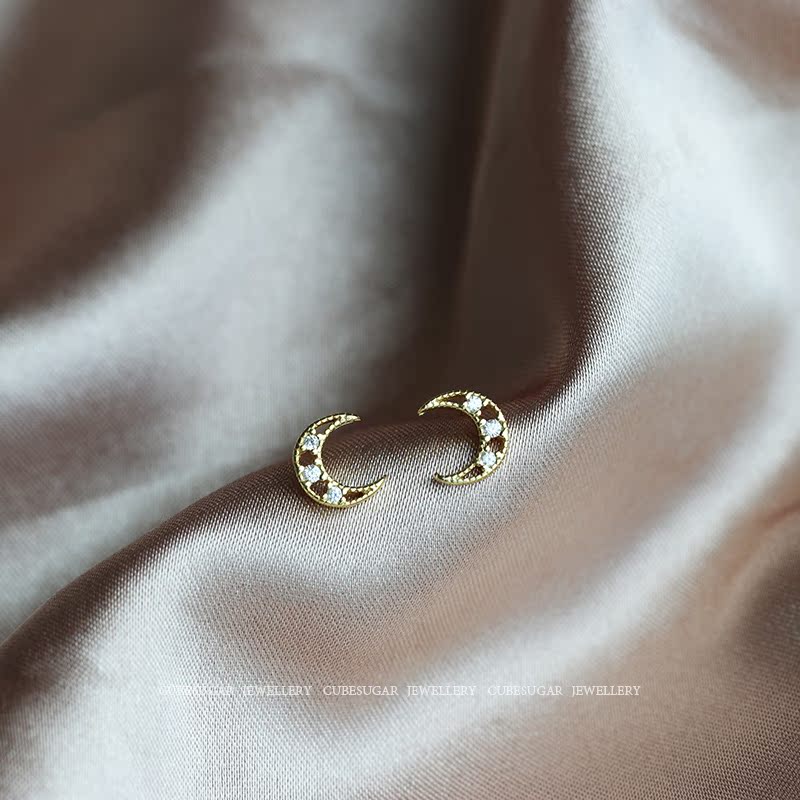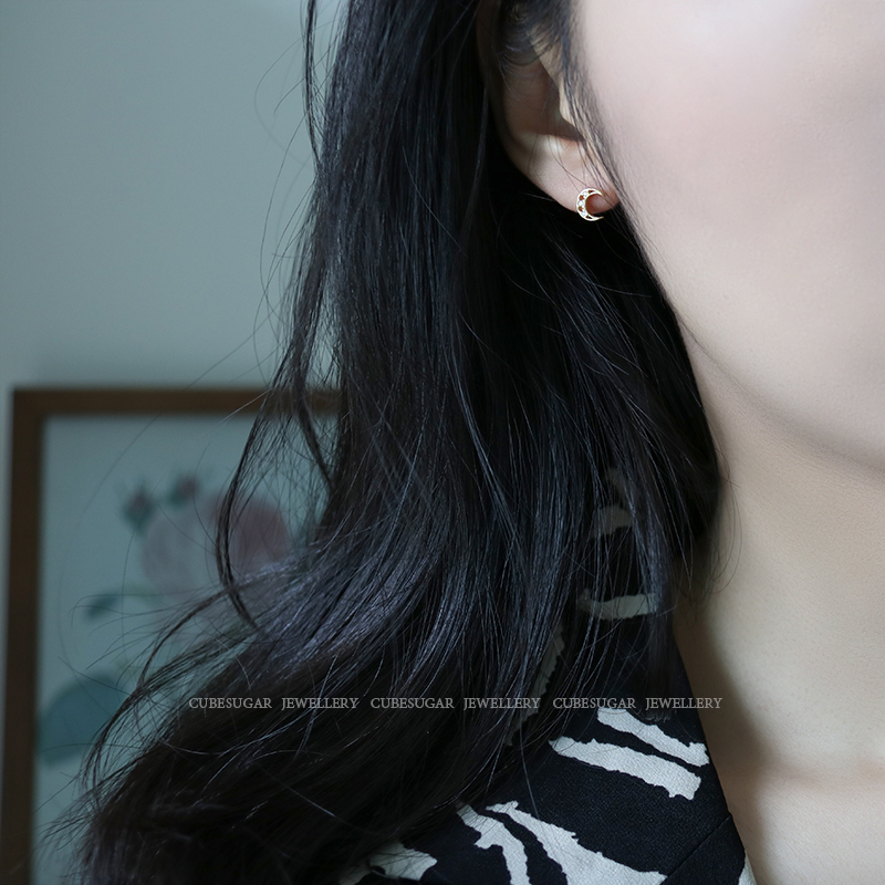 通體925純銀鏤空鑲鉆月亮耳環復古可愛氣質迷你小耳垂適合的耳釘1入