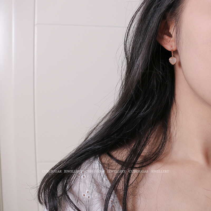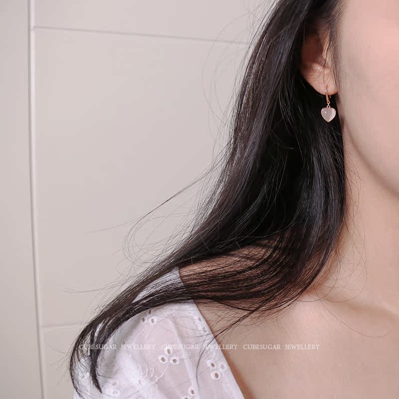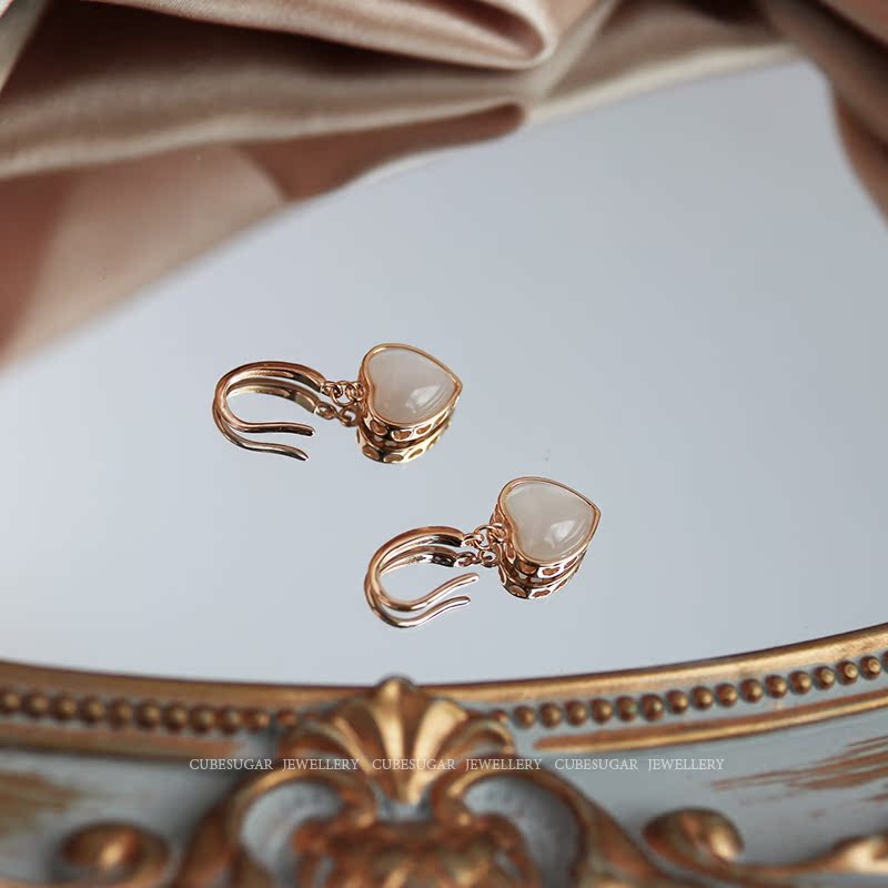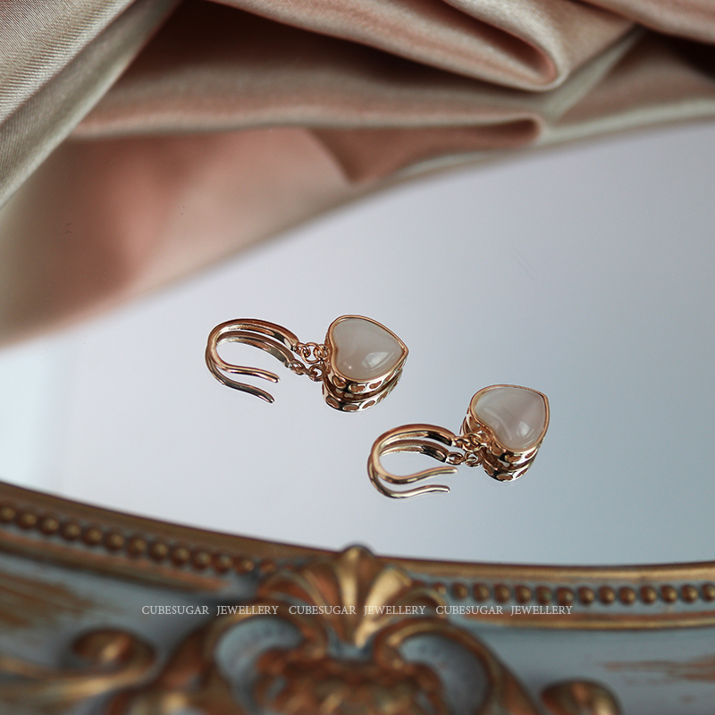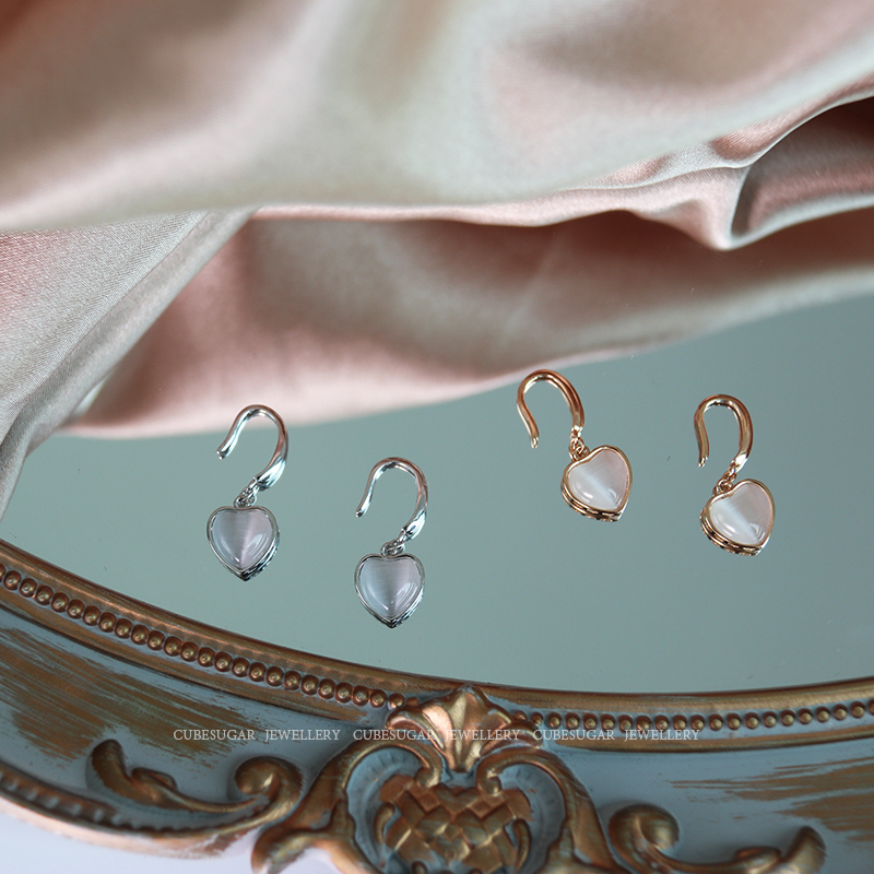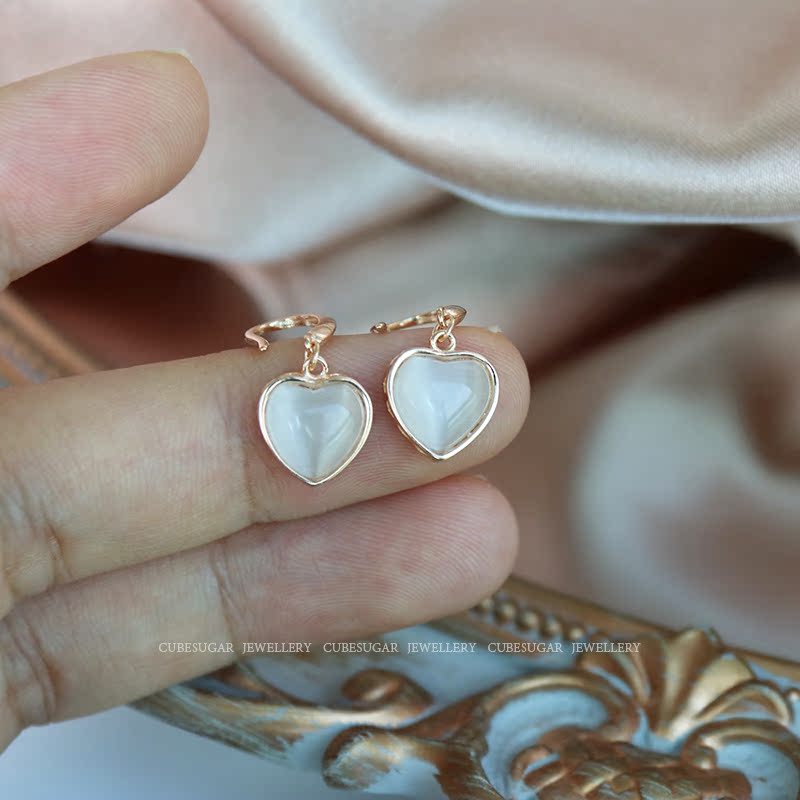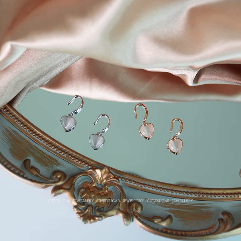 通體925純銀愛心仿貓眼石耳環簡約氣質法式輕奢高級感復古耳勾1入