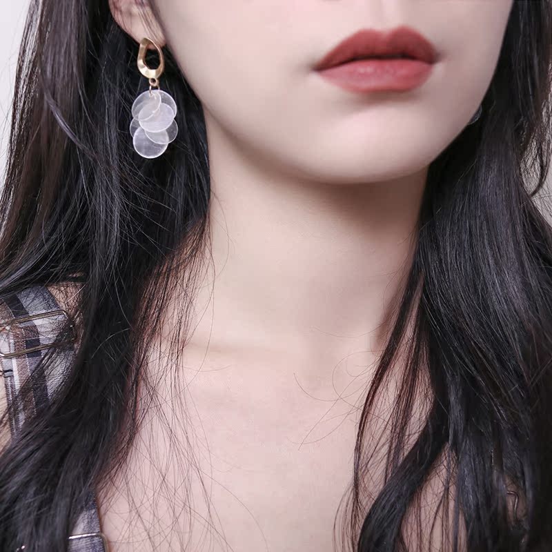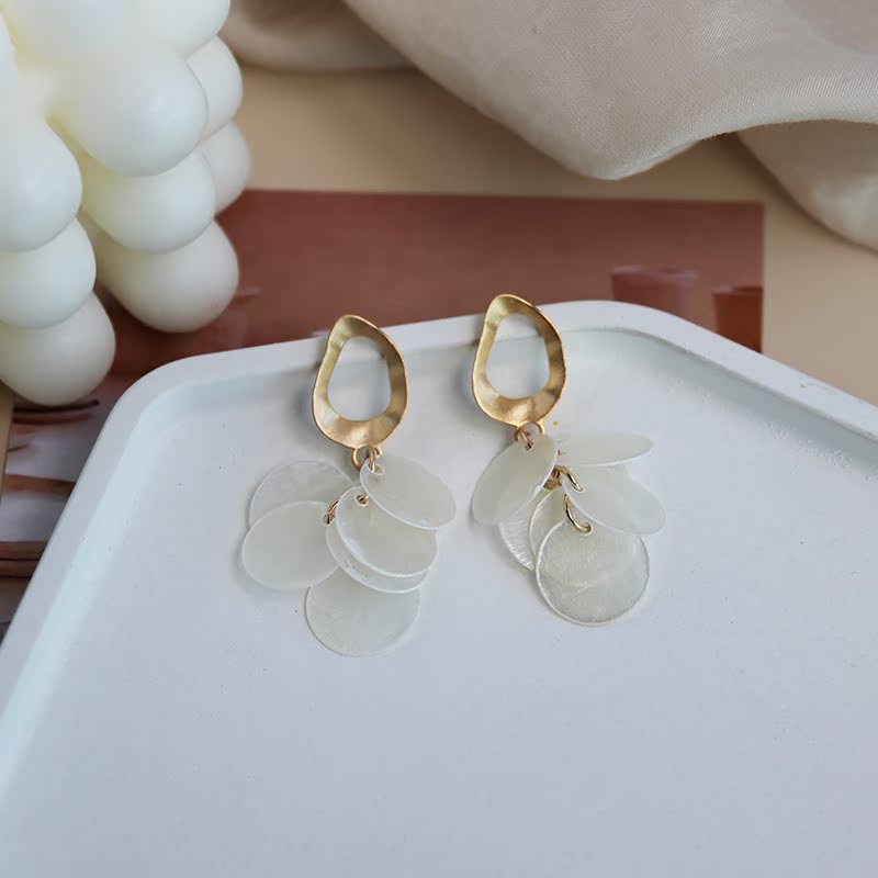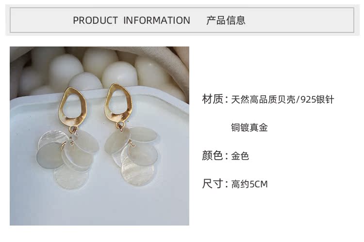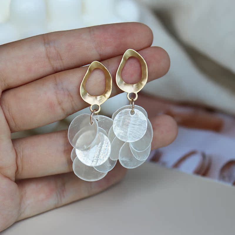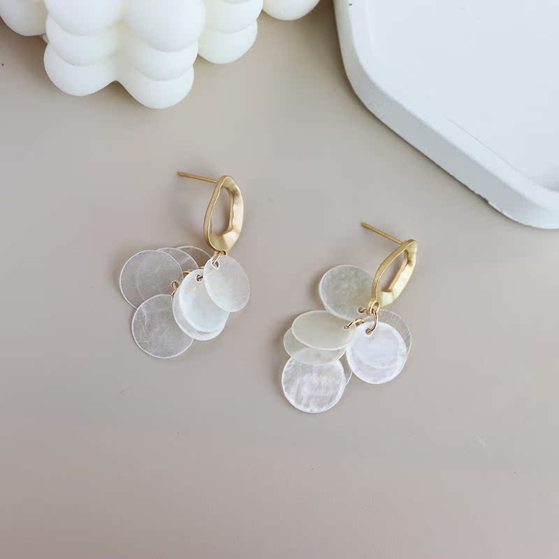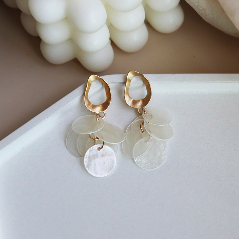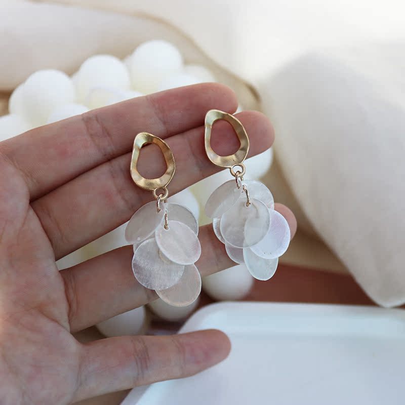 高級感品質天然貝殼流蘇耳環復古氣質輕奢顯臉瘦秋冬網紅長款耳飾1入