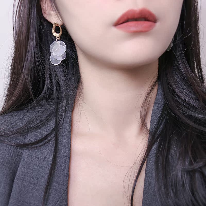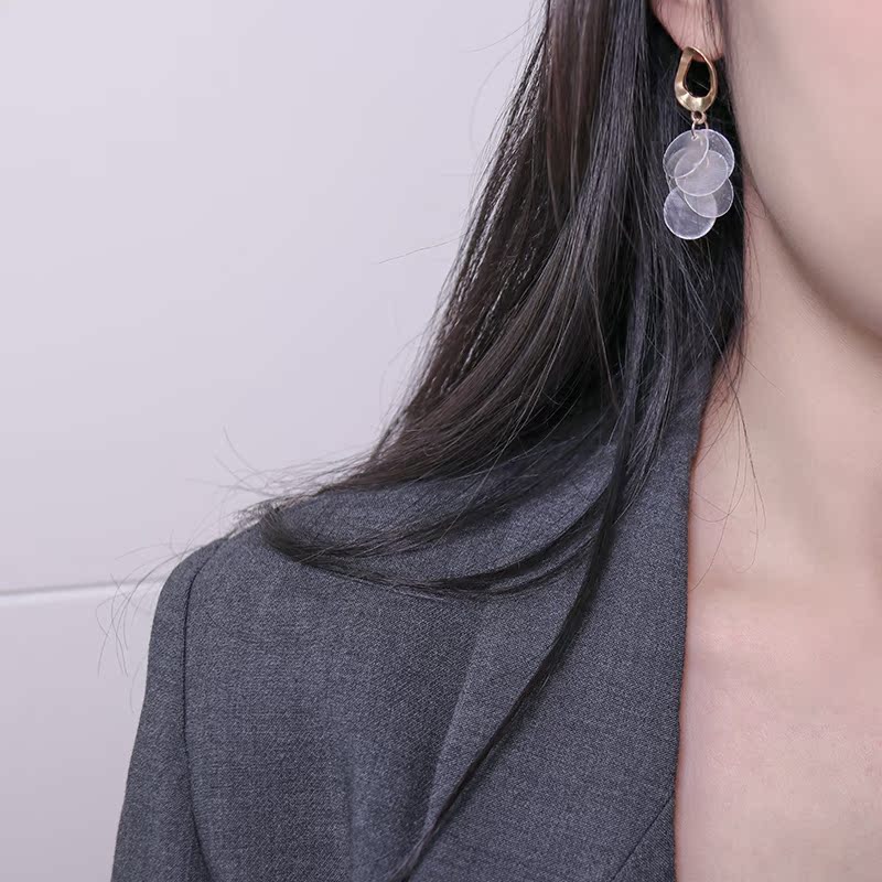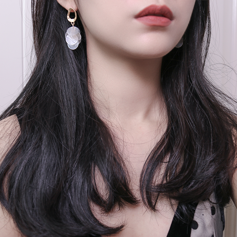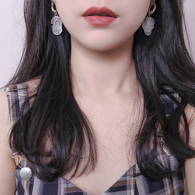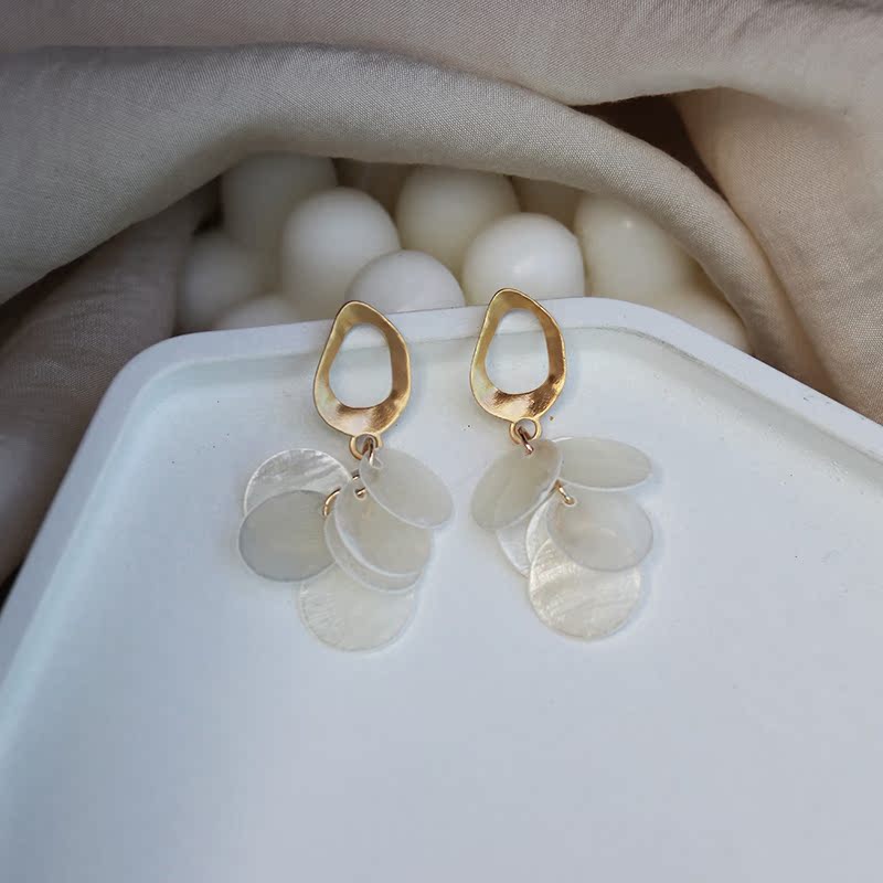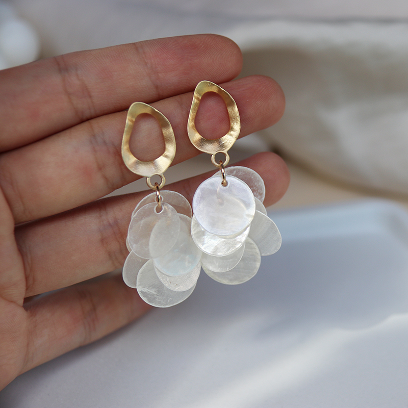 高級感品質天然貝殼流蘇耳環復古氣質輕奢顯臉瘦秋冬網紅長款耳飾1入