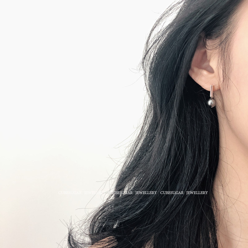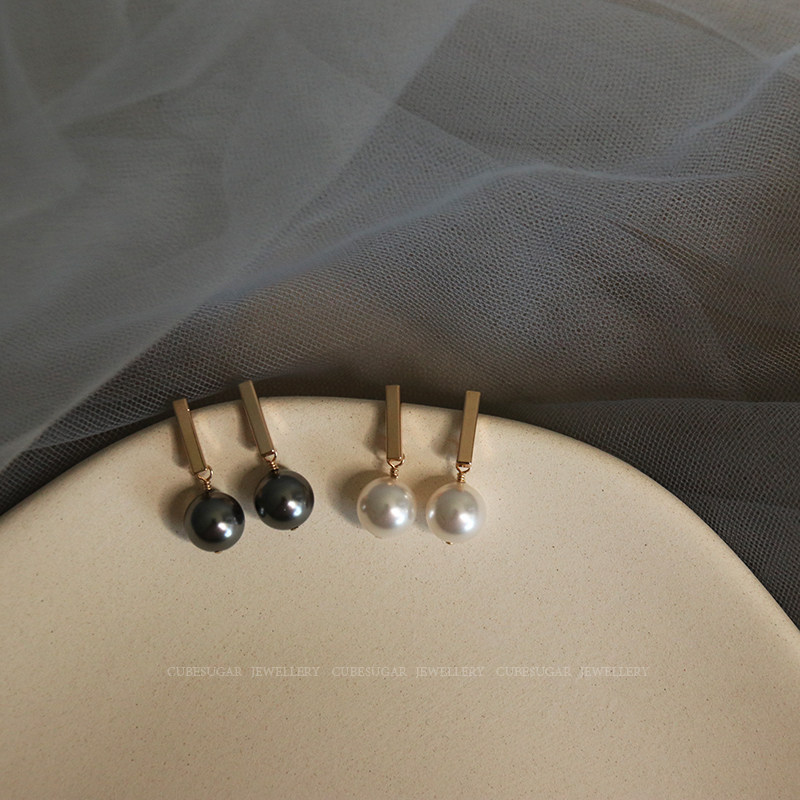 方糖家 珍珠吊墜耳環 氣質灰/溫柔白耳釘 銅鍍14K真金 施家仿珍珠1入
