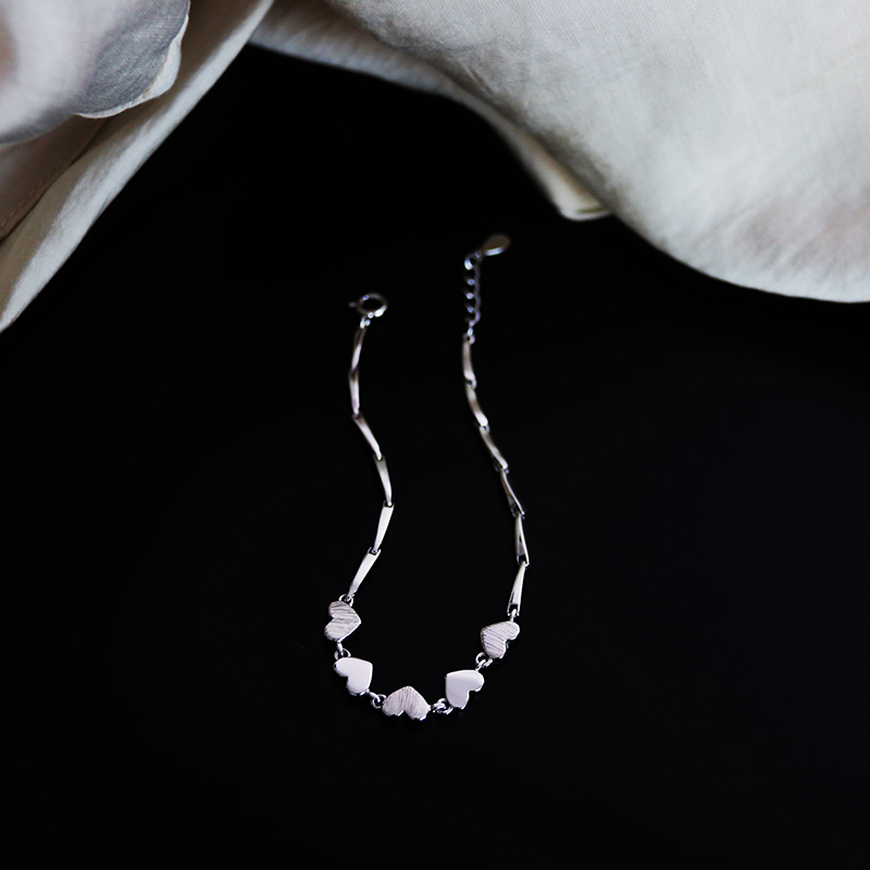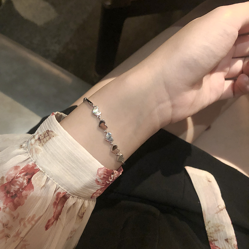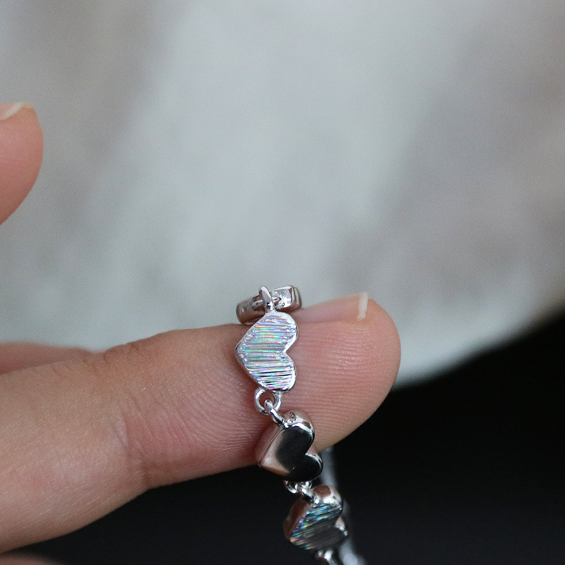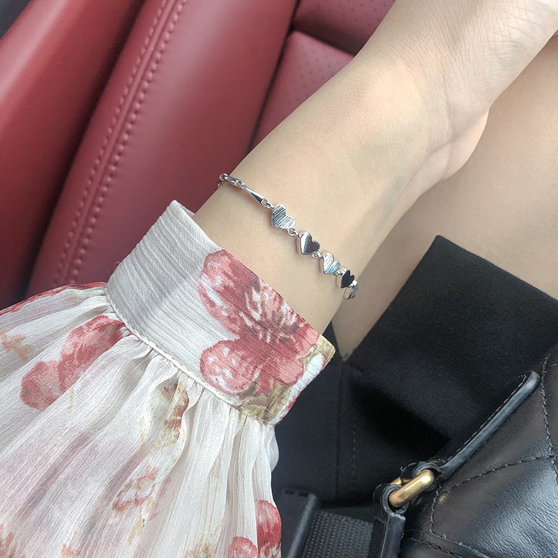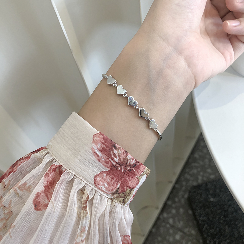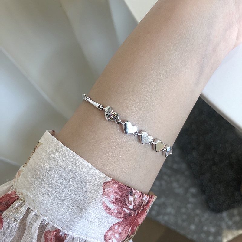 重工款用料足通體925純銀彩色拉絲工藝愛心手鏈甜美少女簡約氣質1入