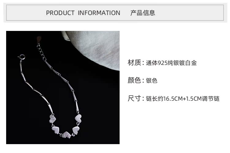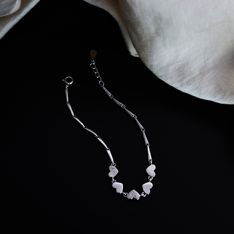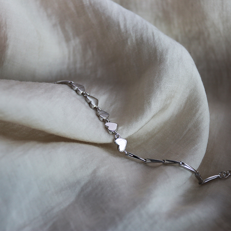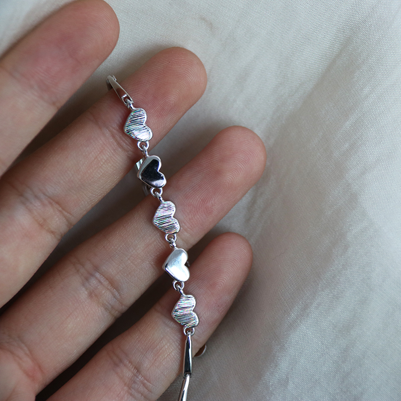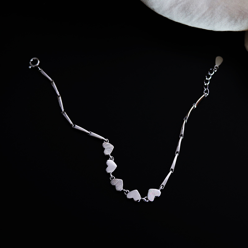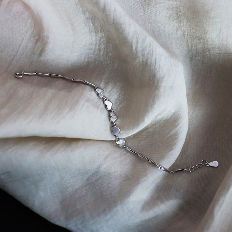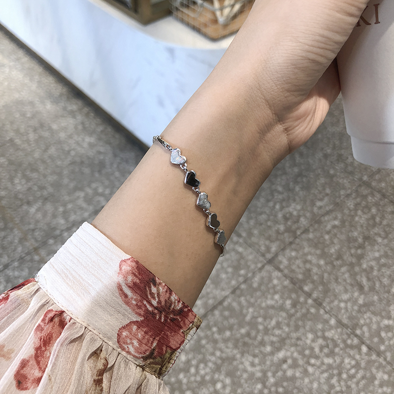 重工款用料足通體925純銀彩色拉絲工藝愛心手鏈甜美少女簡約氣質1入