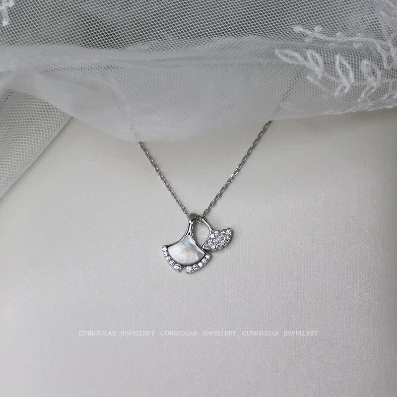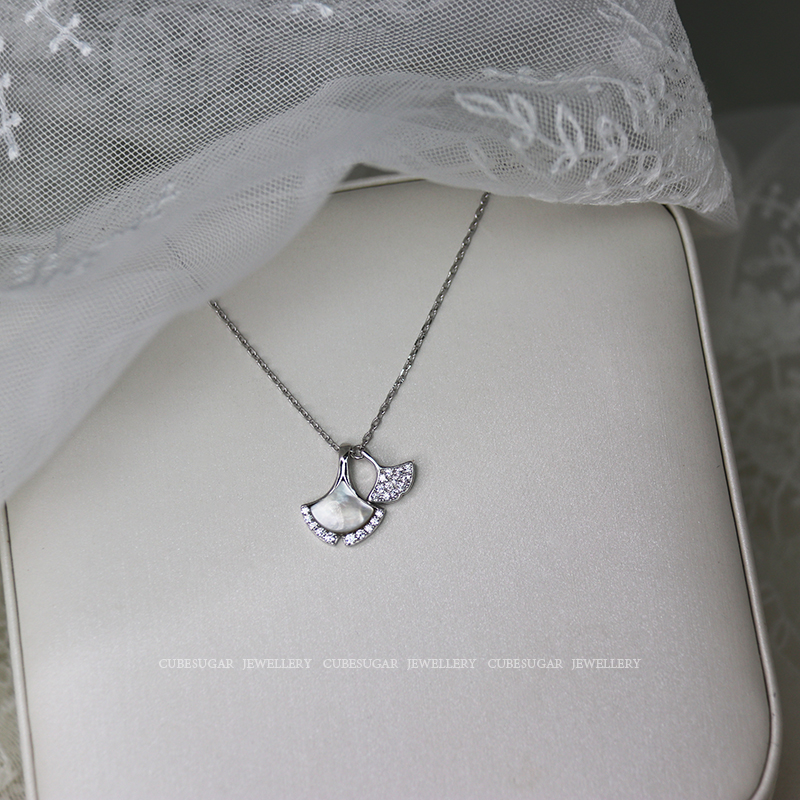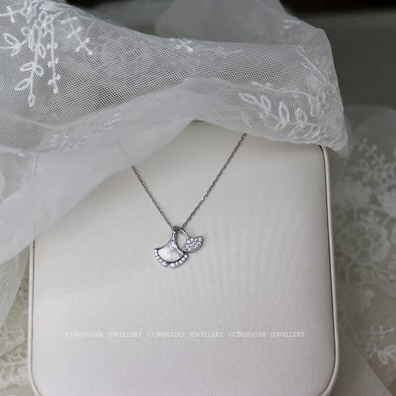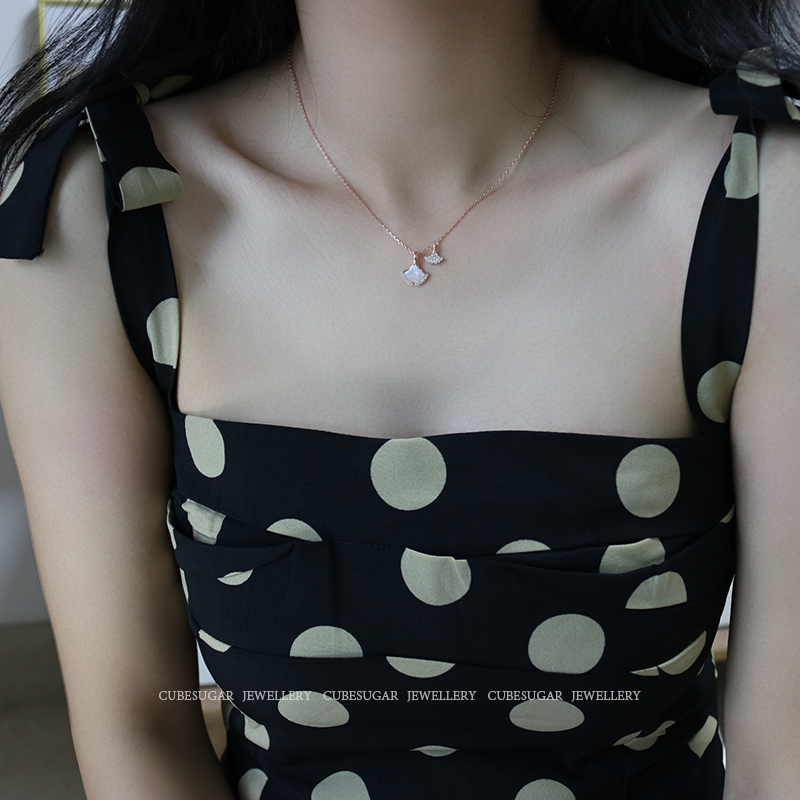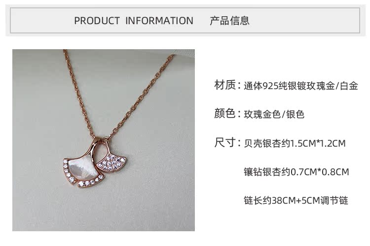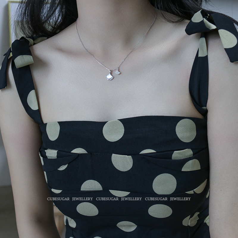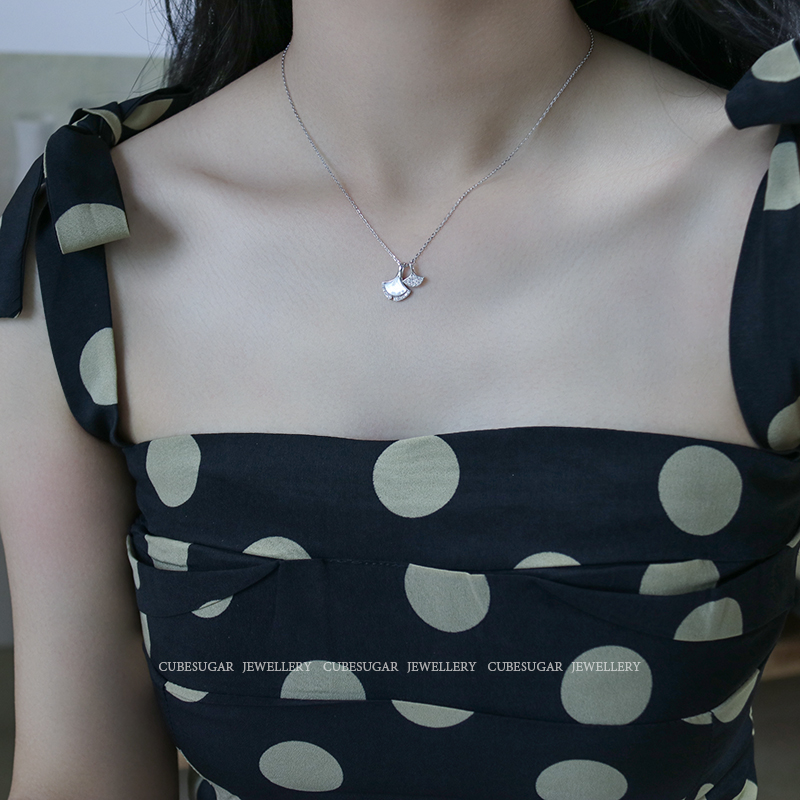 通體925純銀貝殼鑲鉆銀杏葉項鏈小眾設計簡約輕奢法式鎖骨鏈女1入