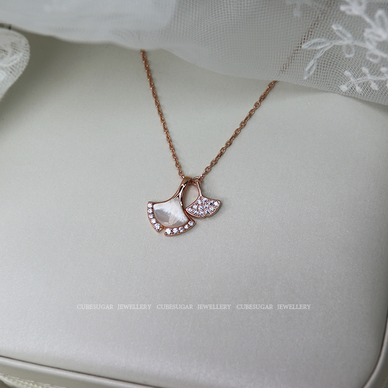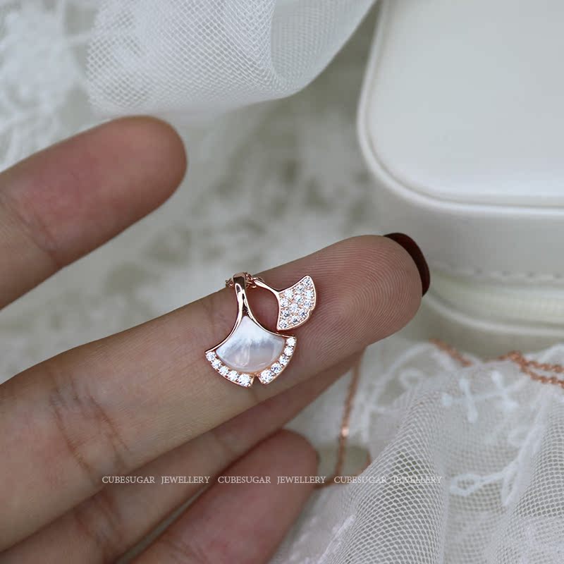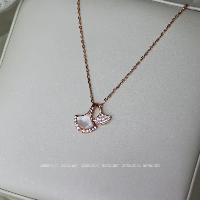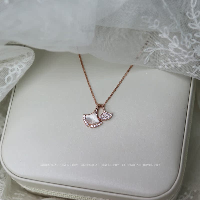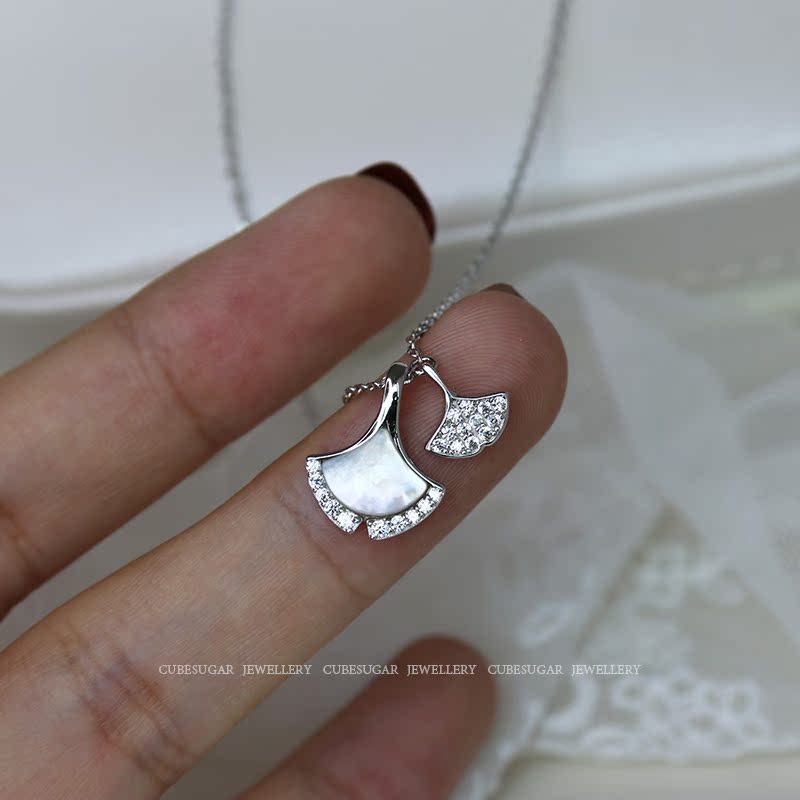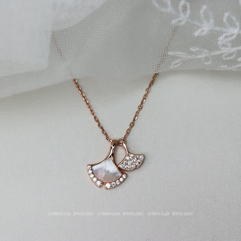 通體925純銀貝殼鑲鉆銀杏葉項鏈小眾設計簡約輕奢法式鎖骨鏈女1入