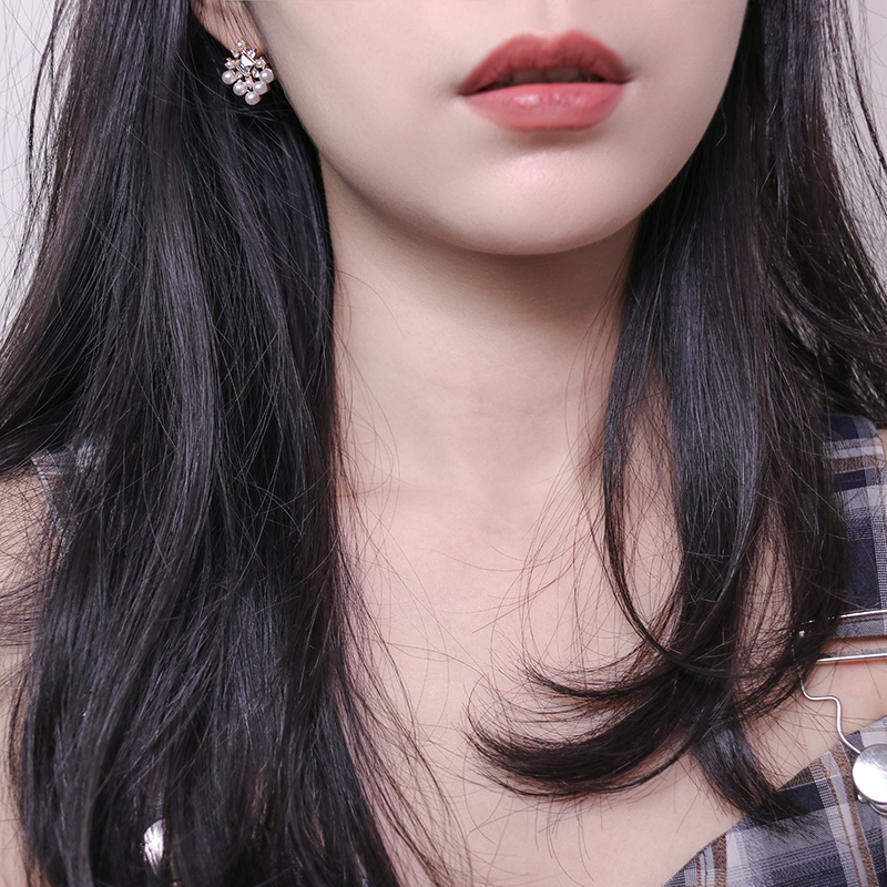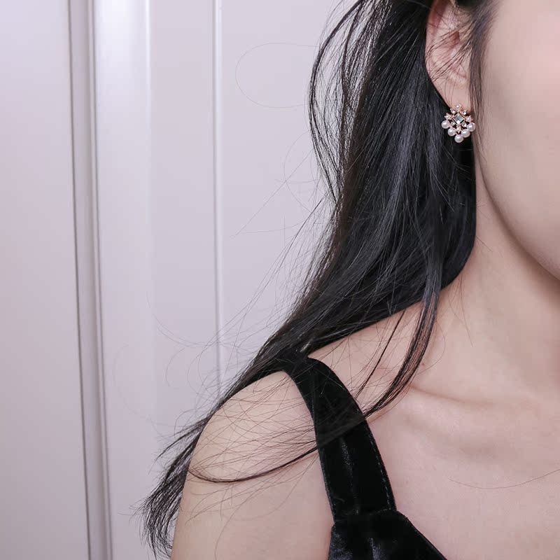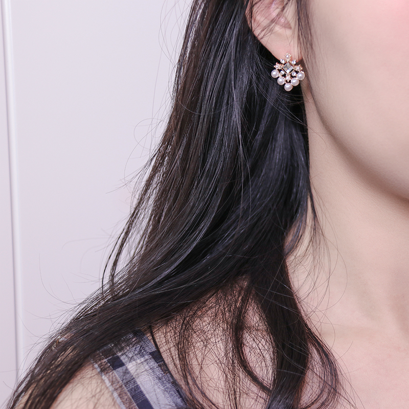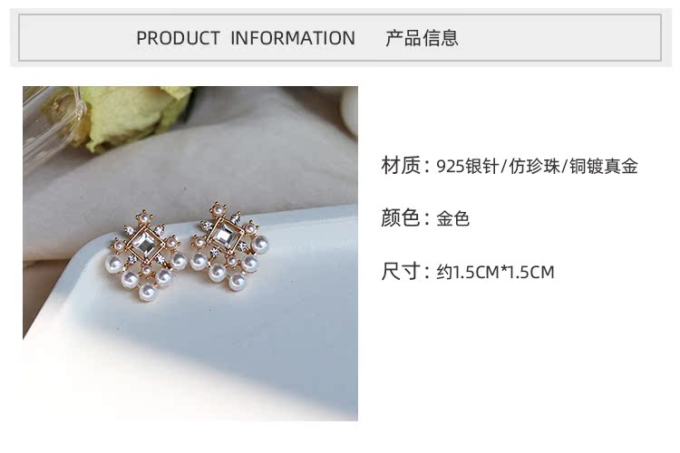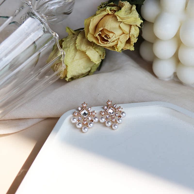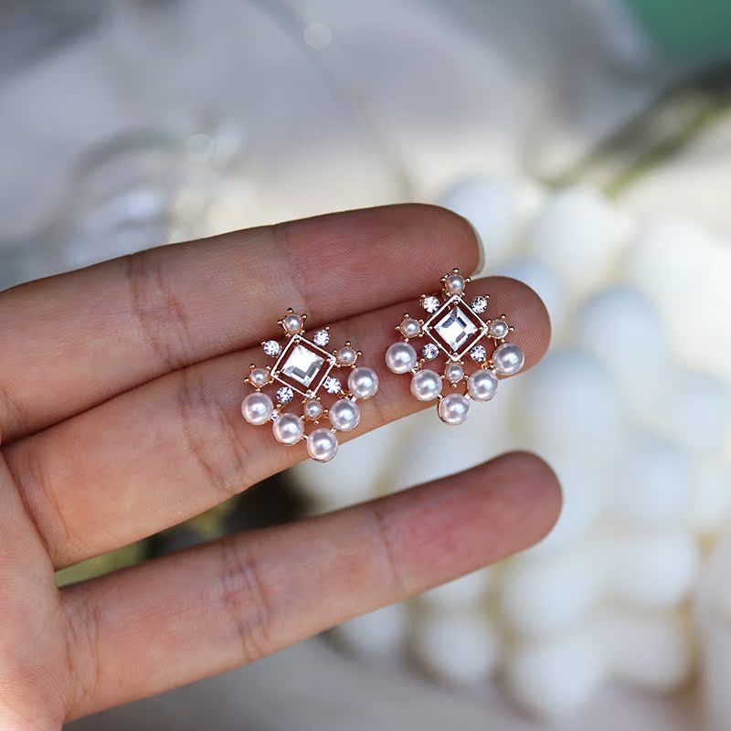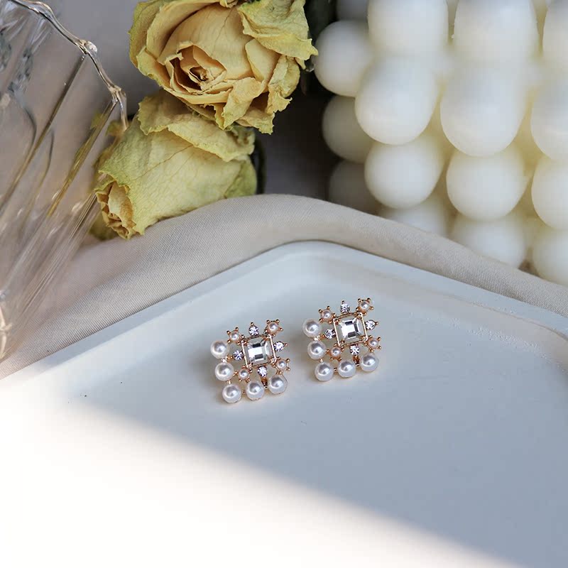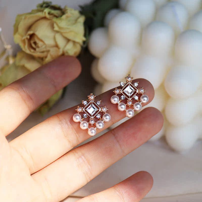 高品質貝珠方形鑲鉆耳釘精致氣質百搭復古溫柔甜美個性高級感耳環1入
