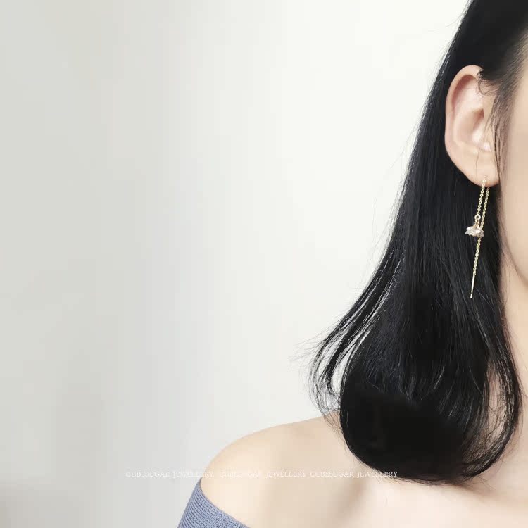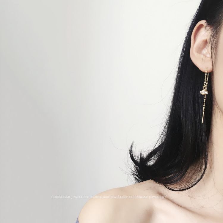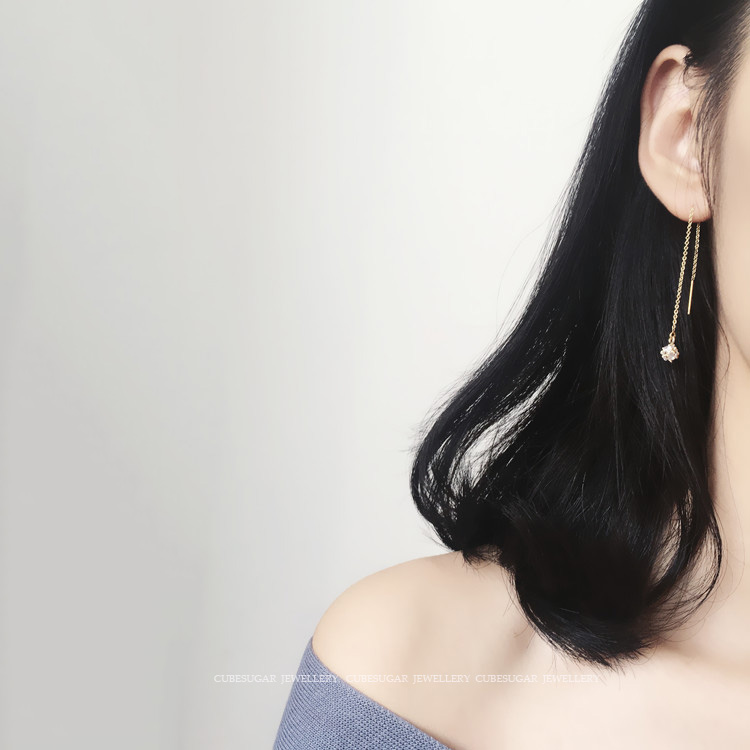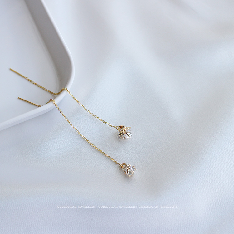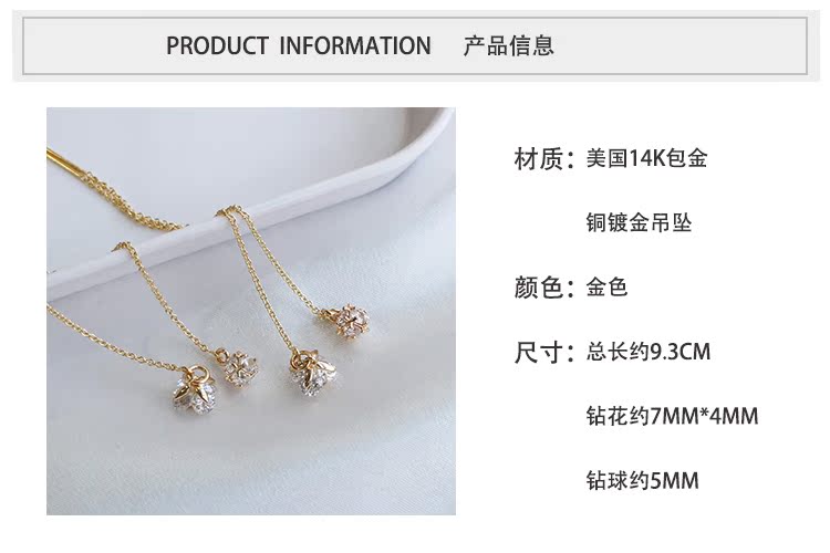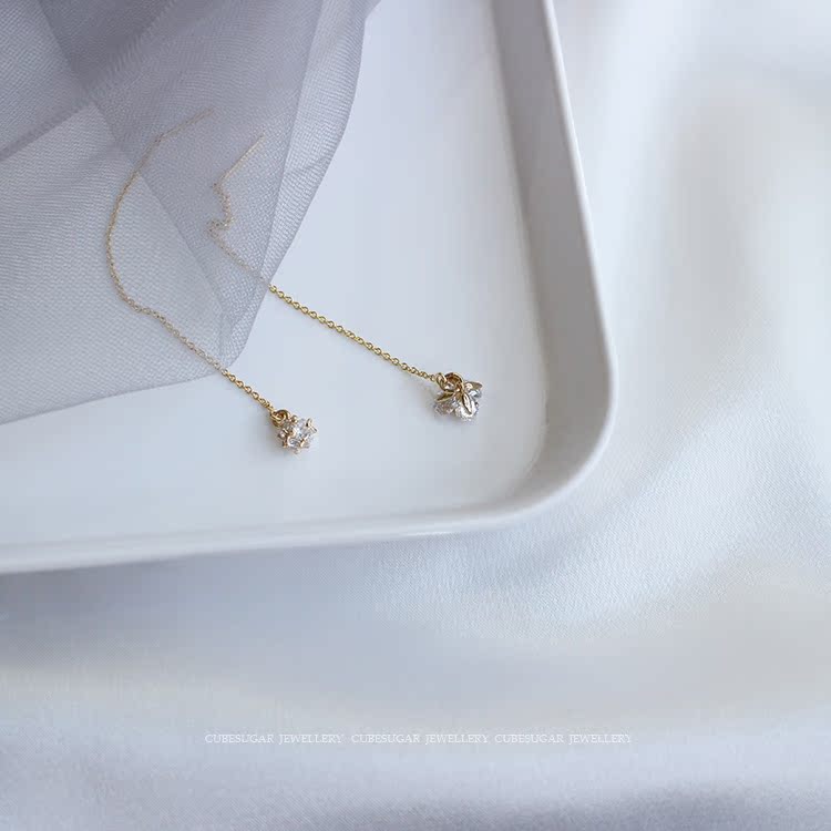 閃閃噠!美國14k包金 鉆花/鉆球 美貌長款百搭耳線長款耳飾單只1入