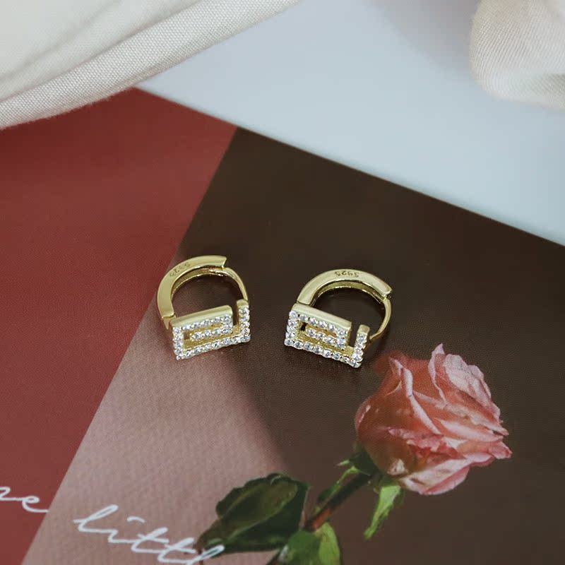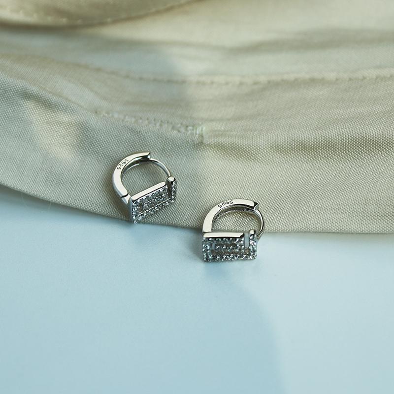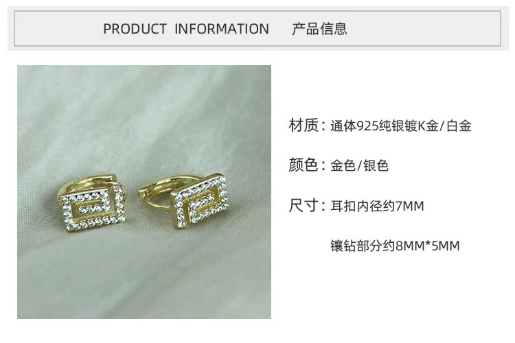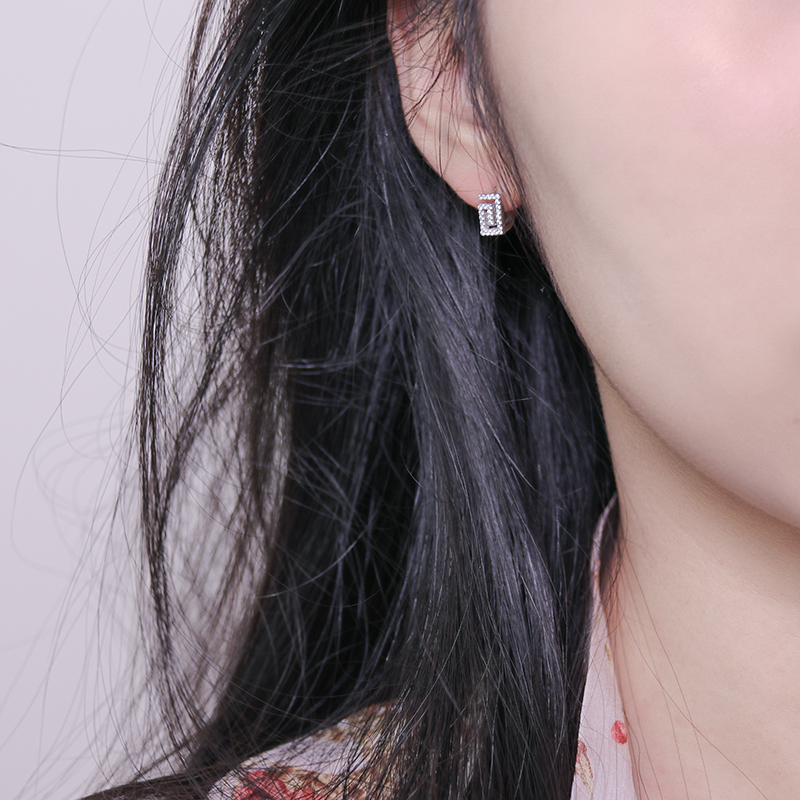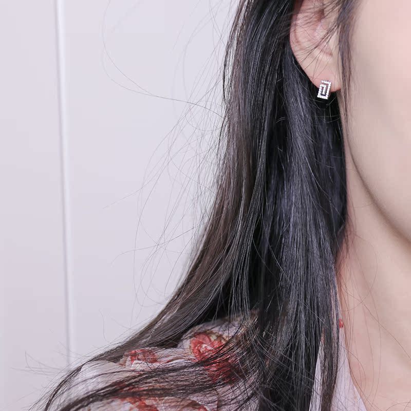 通體925純銀精致鑲鉆鋯石耳扣精致簡約百搭款個性睡覺不用摘耳飾1入