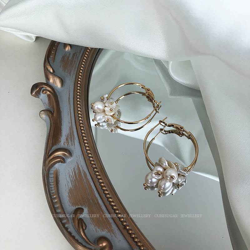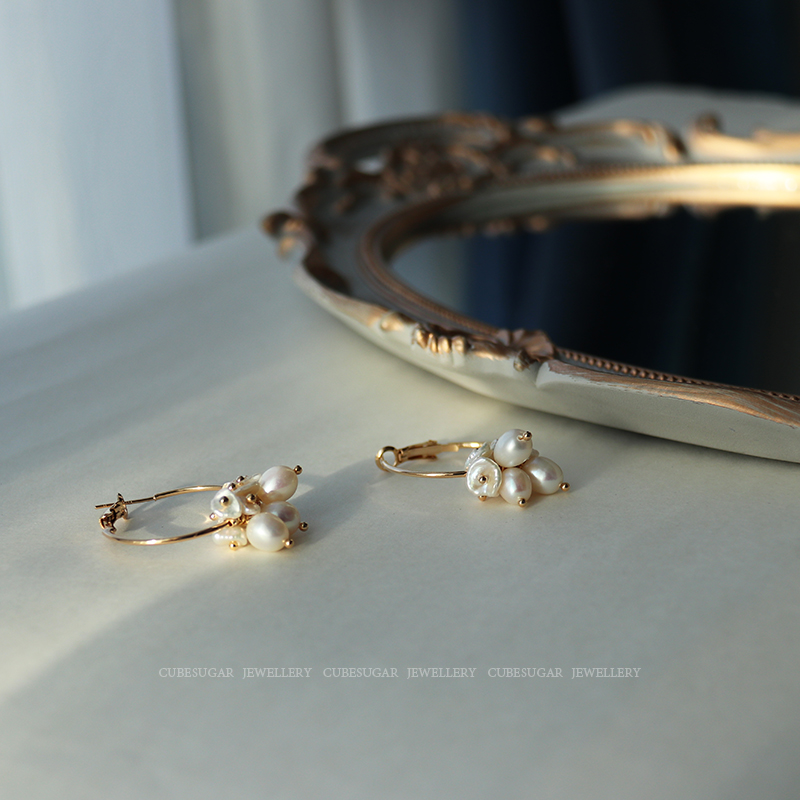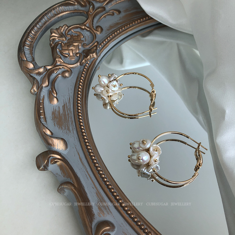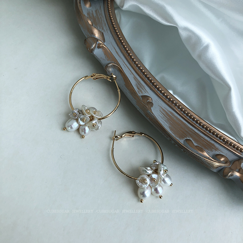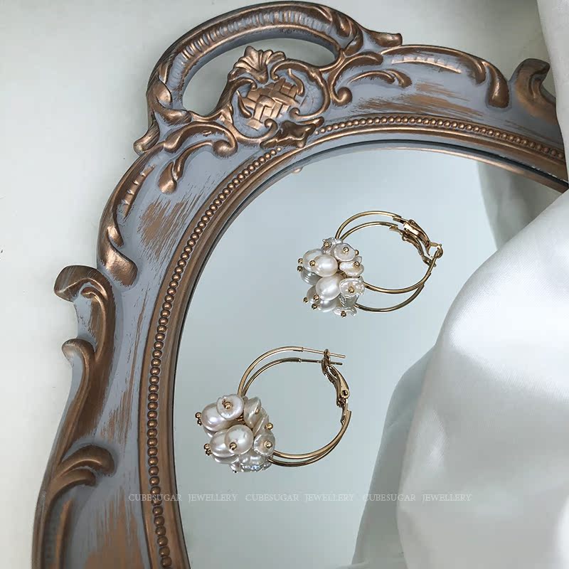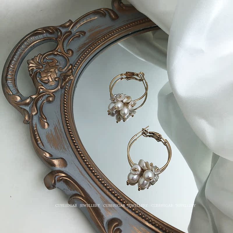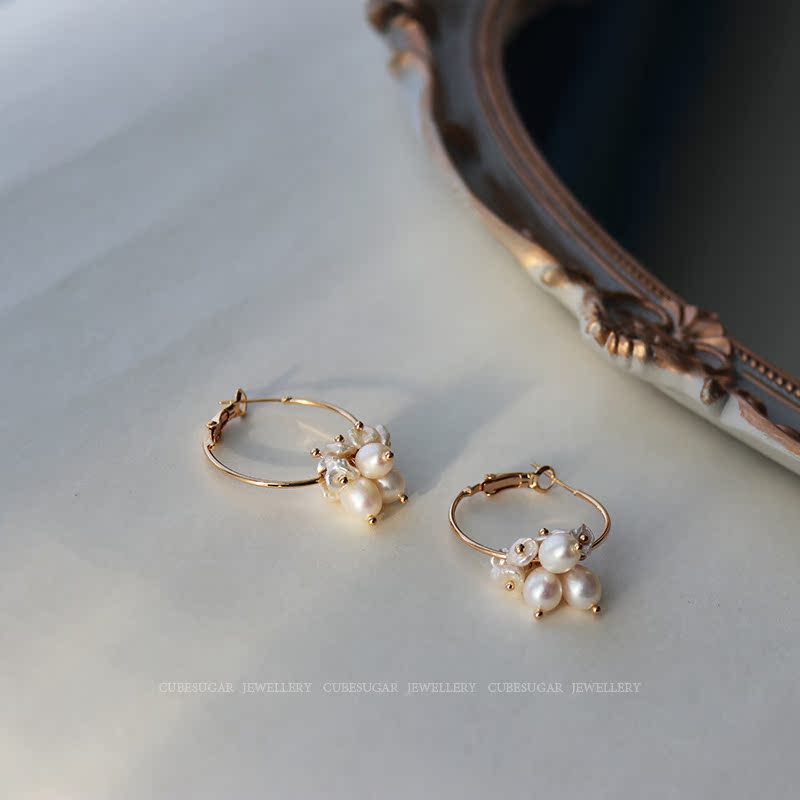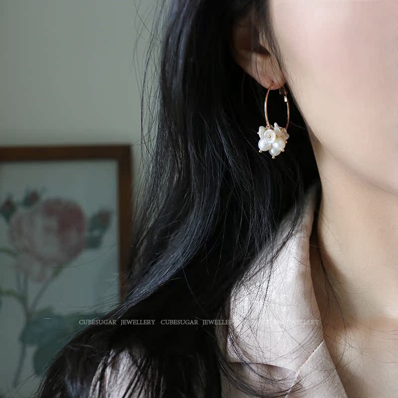 鍍14K真金925銀針珍珠串連耳圈高級感網紅復古ins氣質韓國耳環女1入
