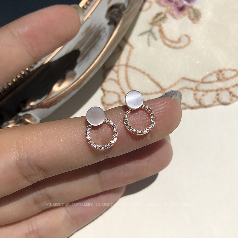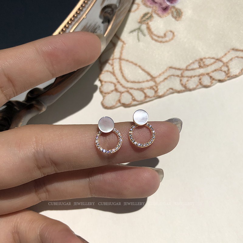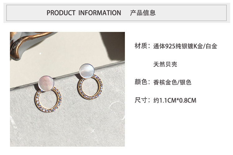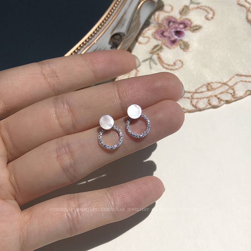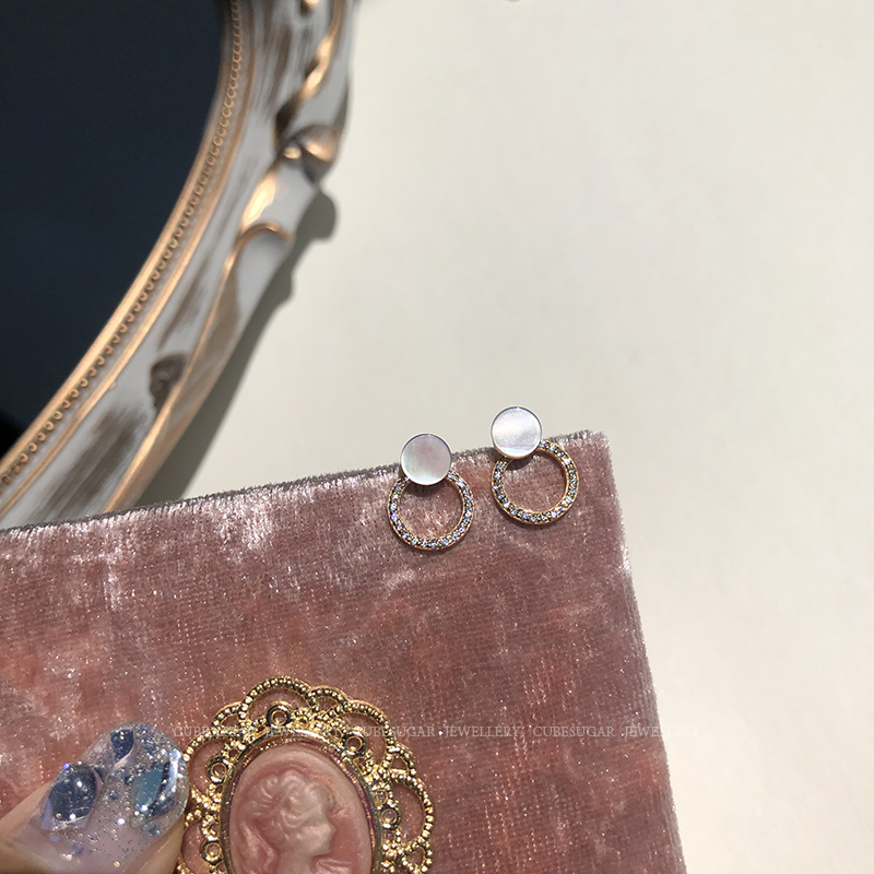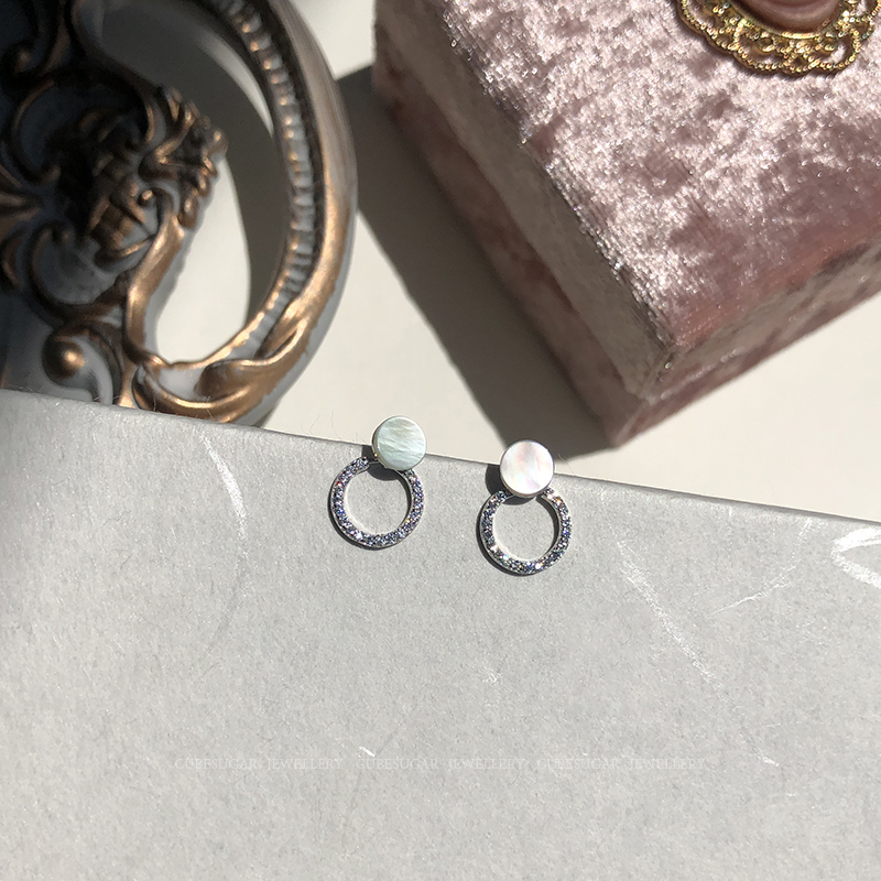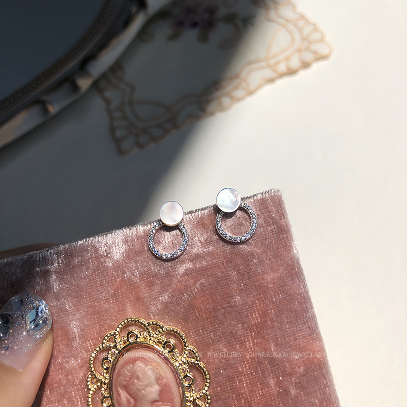 通體925純銀光澤貝殼幾何圓形耳釘氣質簡約韓國高級感復古耳環1入