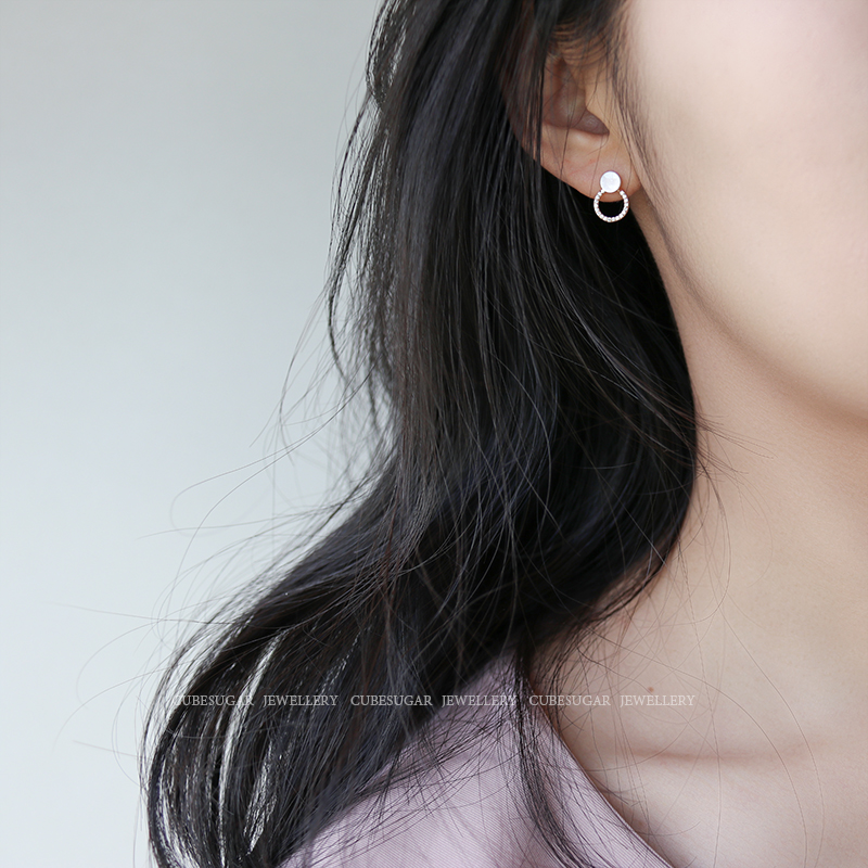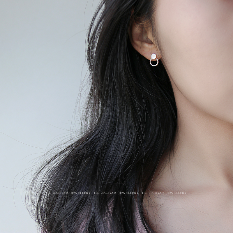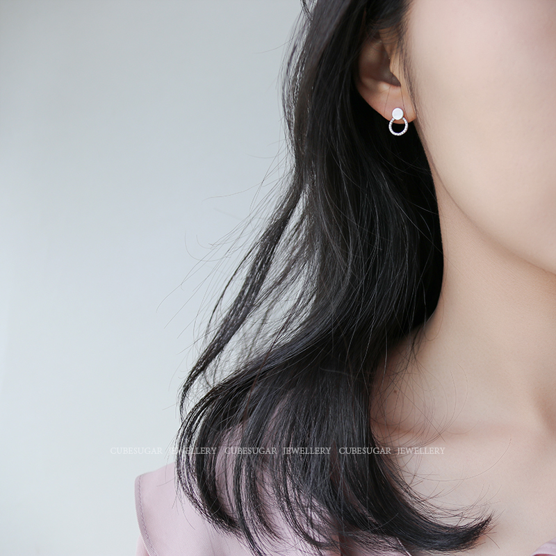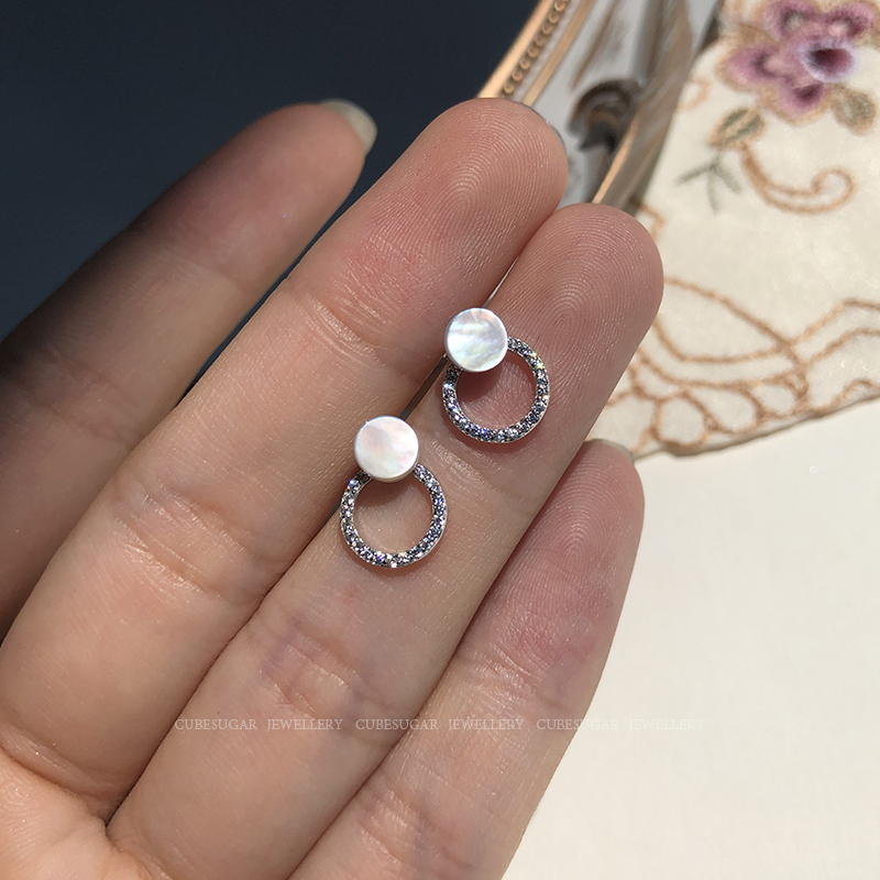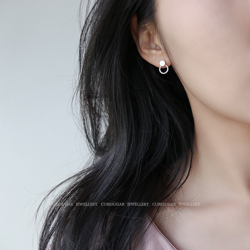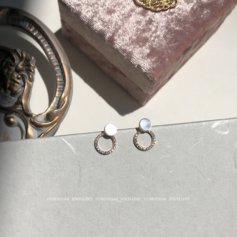 通體925純銀光澤貝殼幾何圓形耳釘氣質簡約韓國高級感復古耳環1入