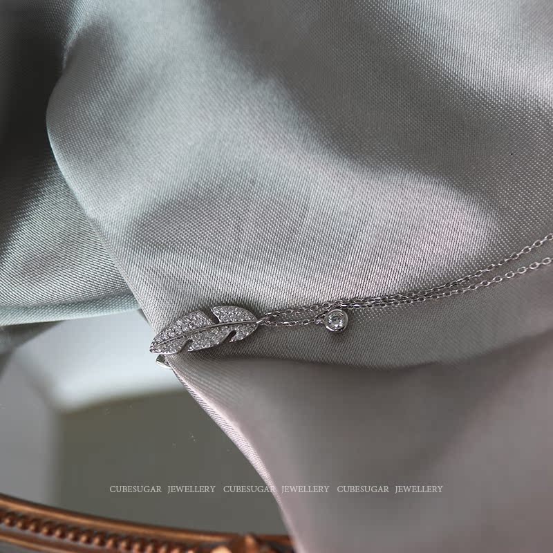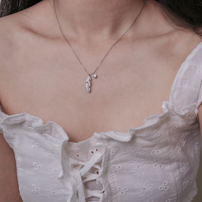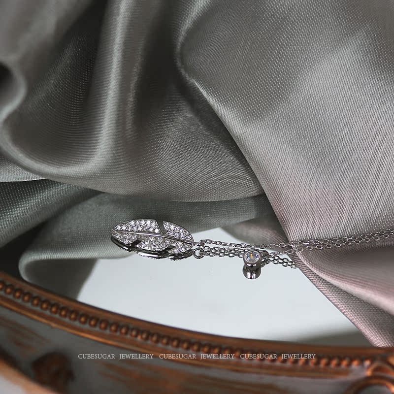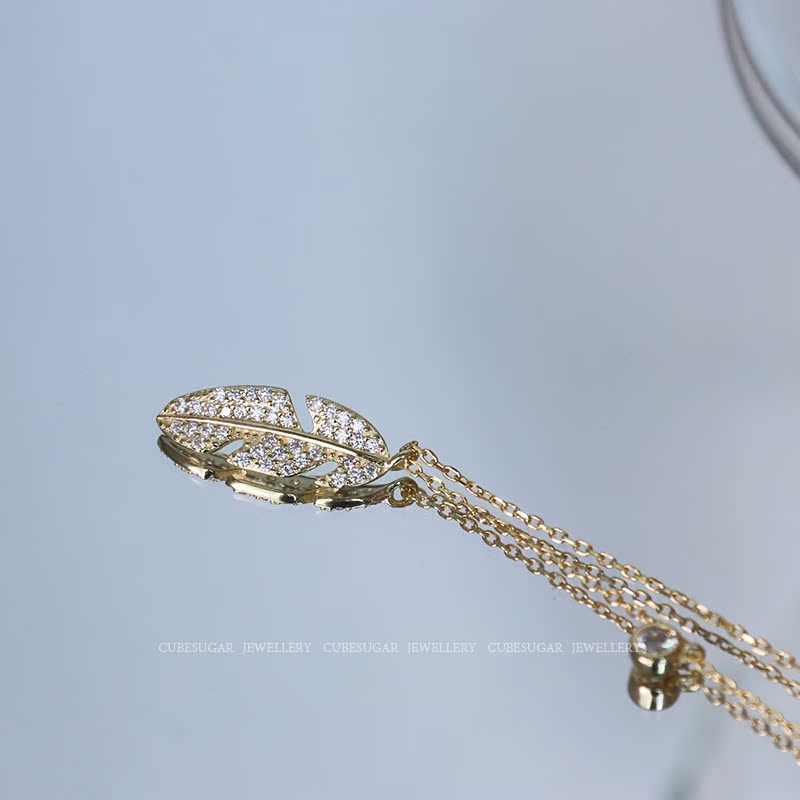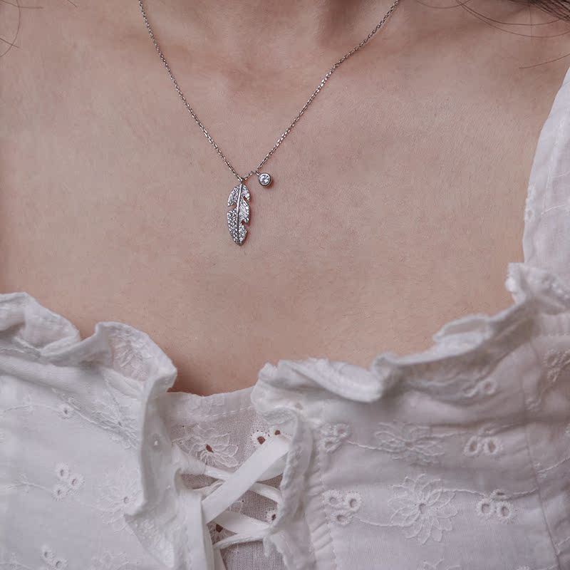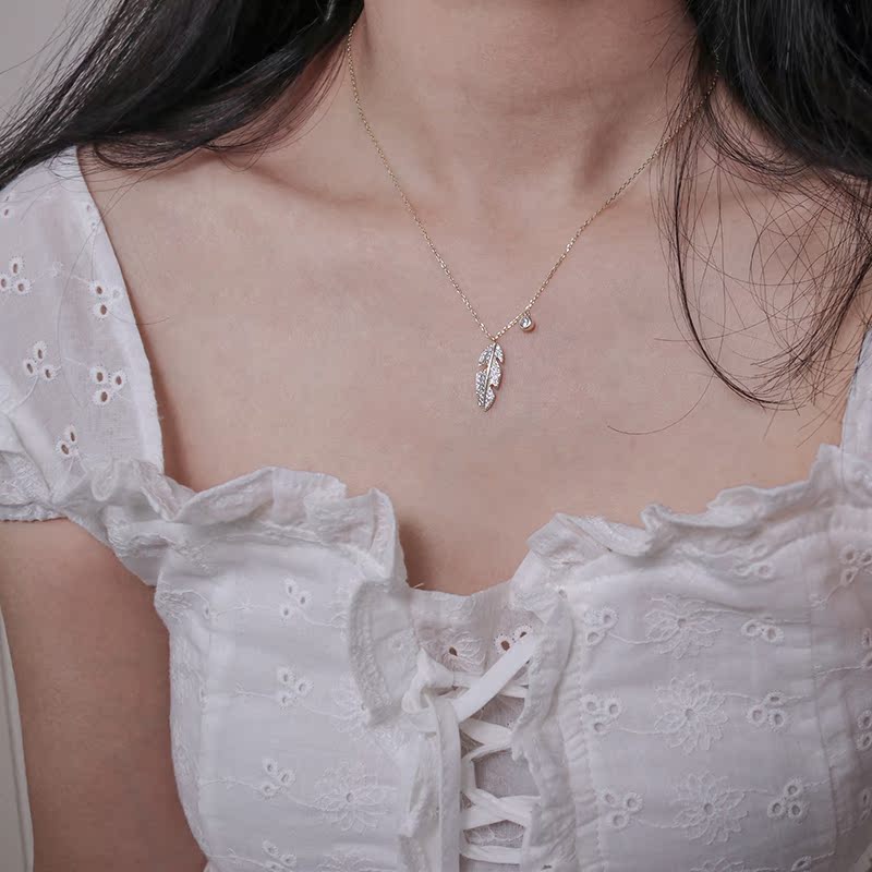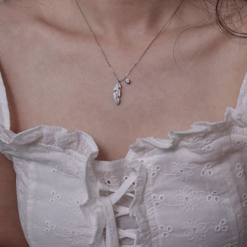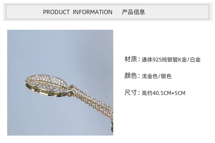 通體925純銀鑲鉆樹葉吊墜項鏈精致簡約氣質輕奢小眾鋯石鎖骨鏈1入