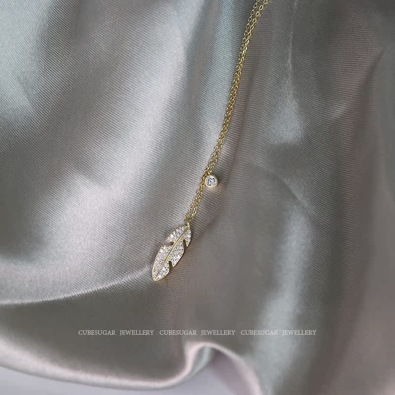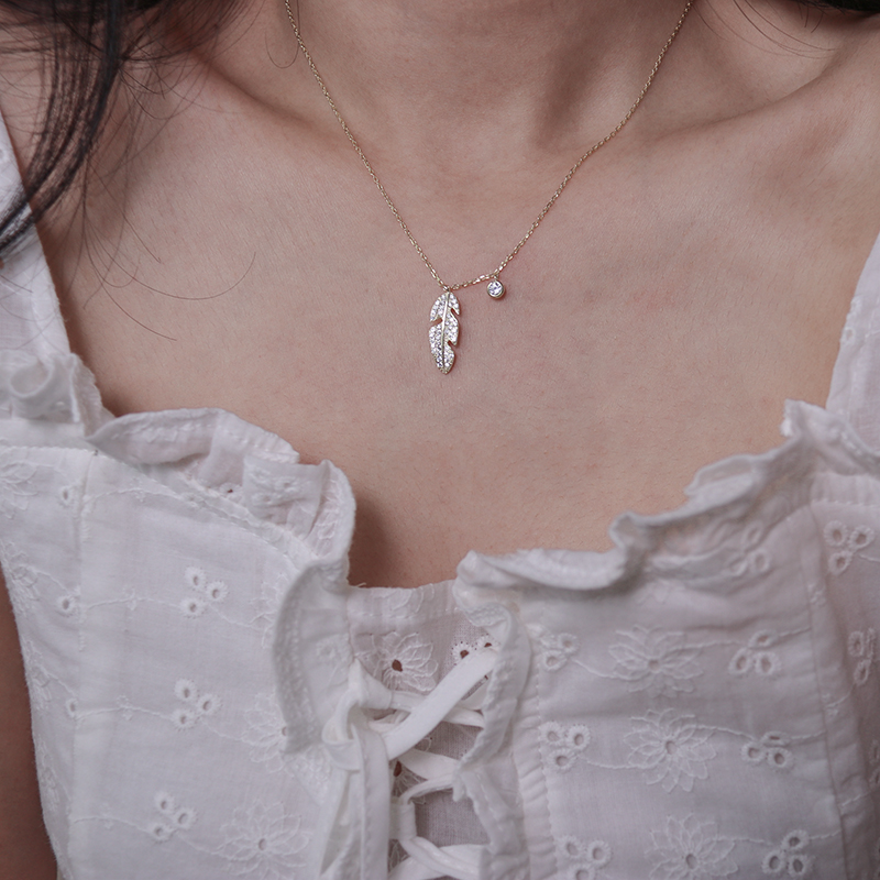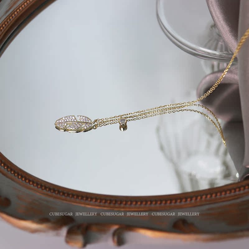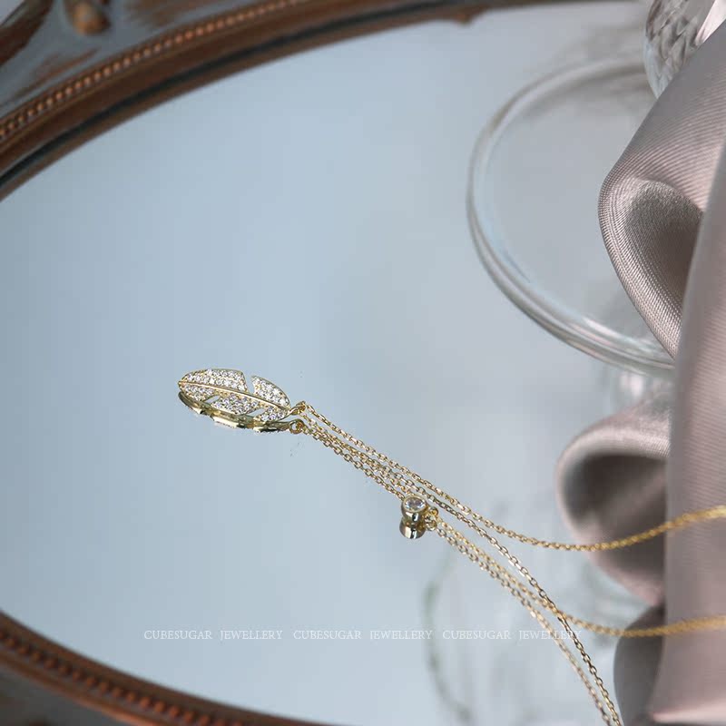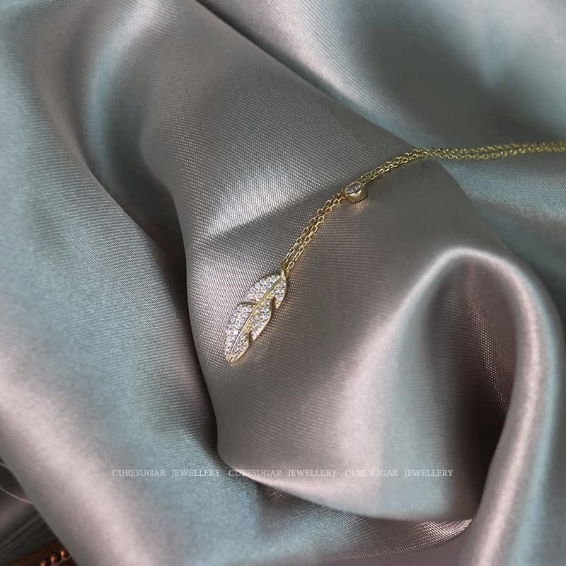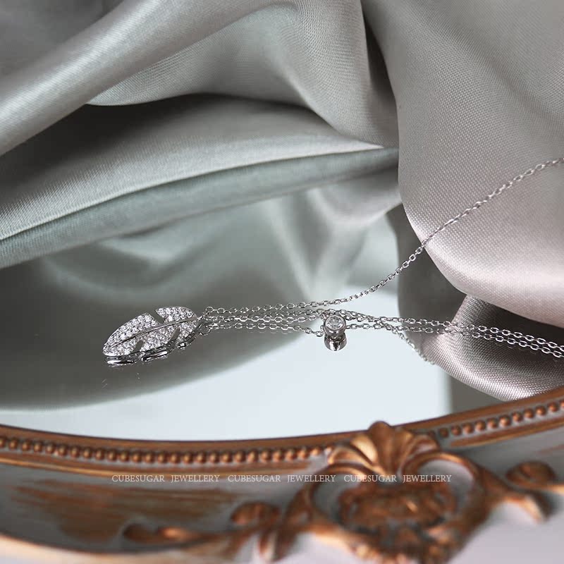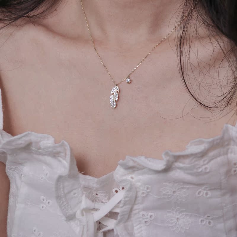 通體925純銀鑲鉆樹葉吊墜項鏈精致簡約氣質輕奢小眾鋯石鎖骨鏈1入