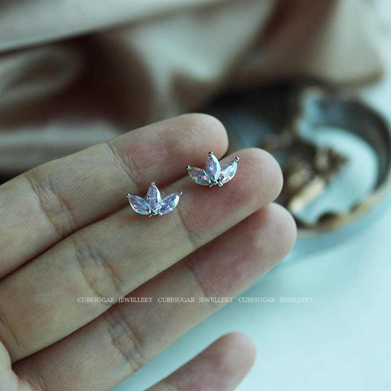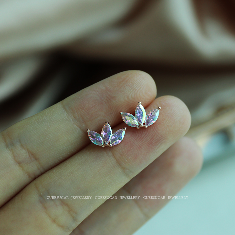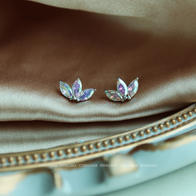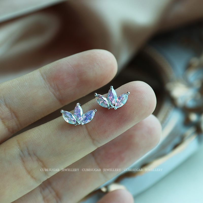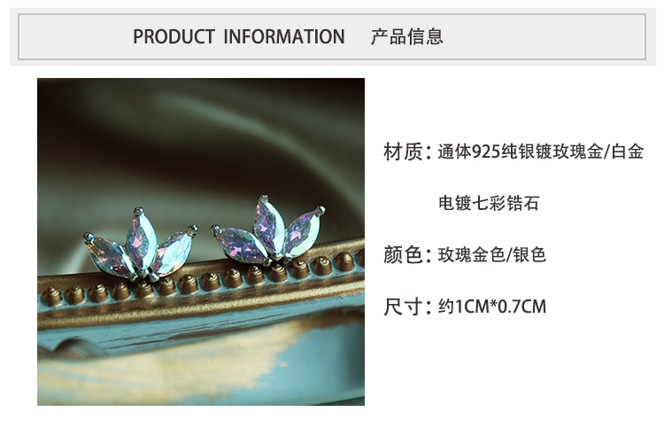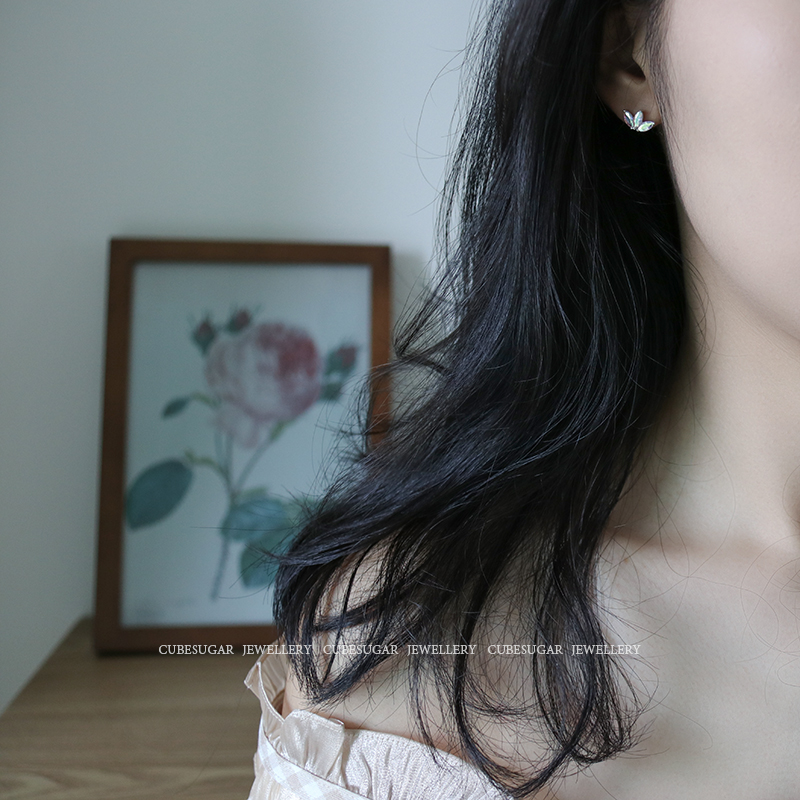通體925純銀炫彩金屬質感鋯石耳釘小巧個性高級感韓式氣質耳環1入