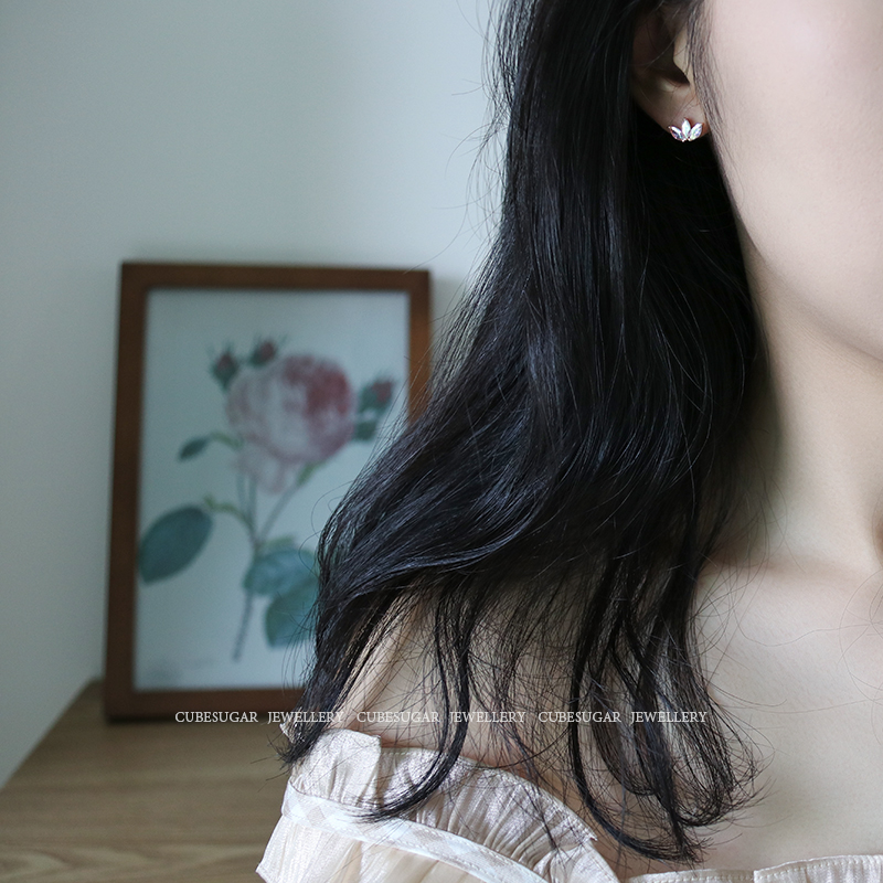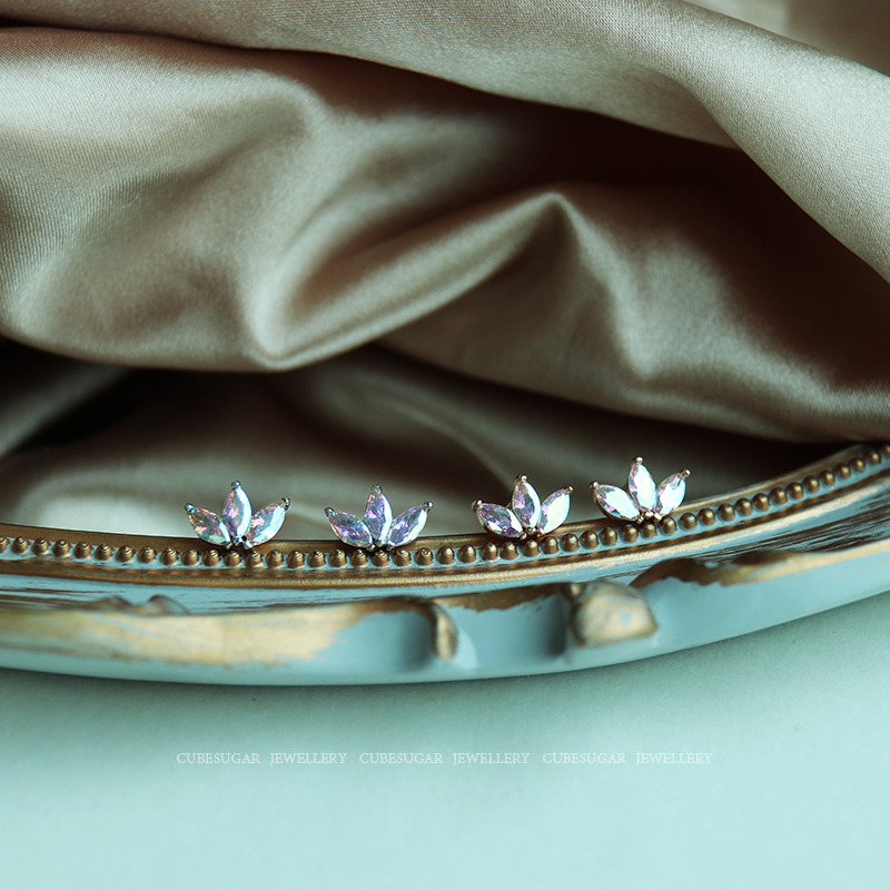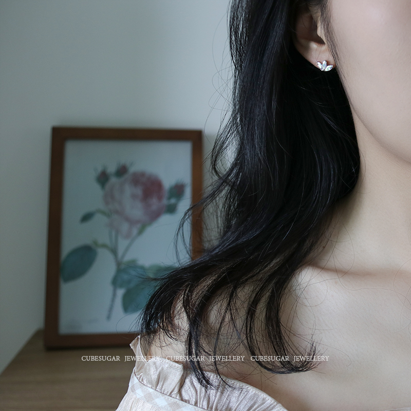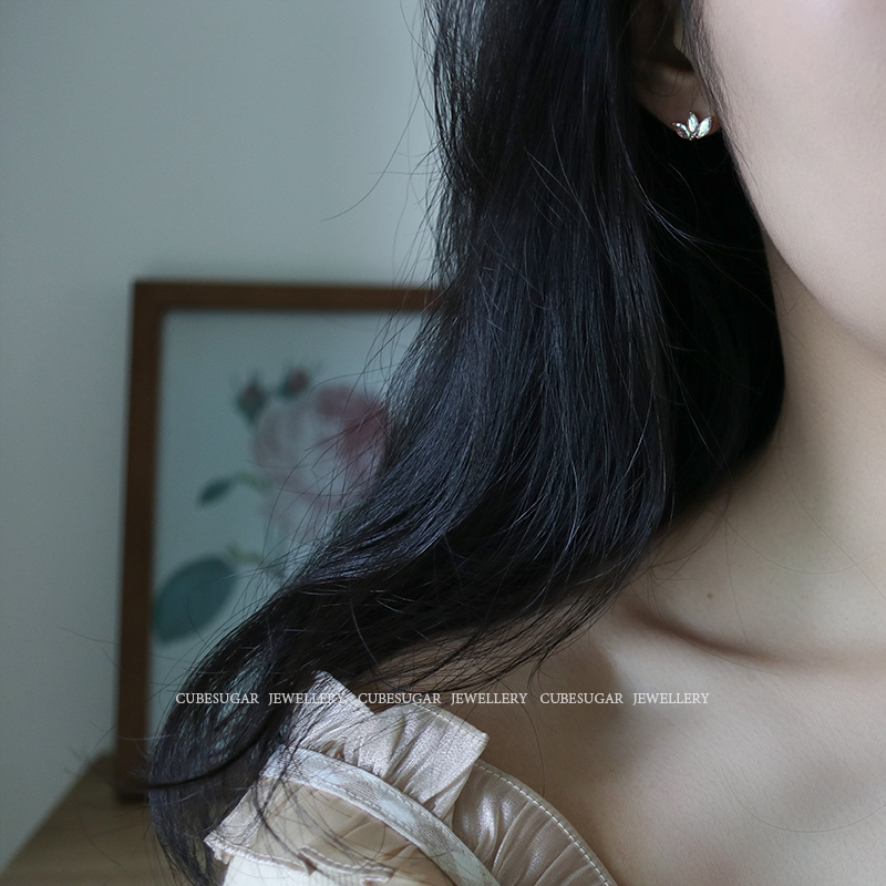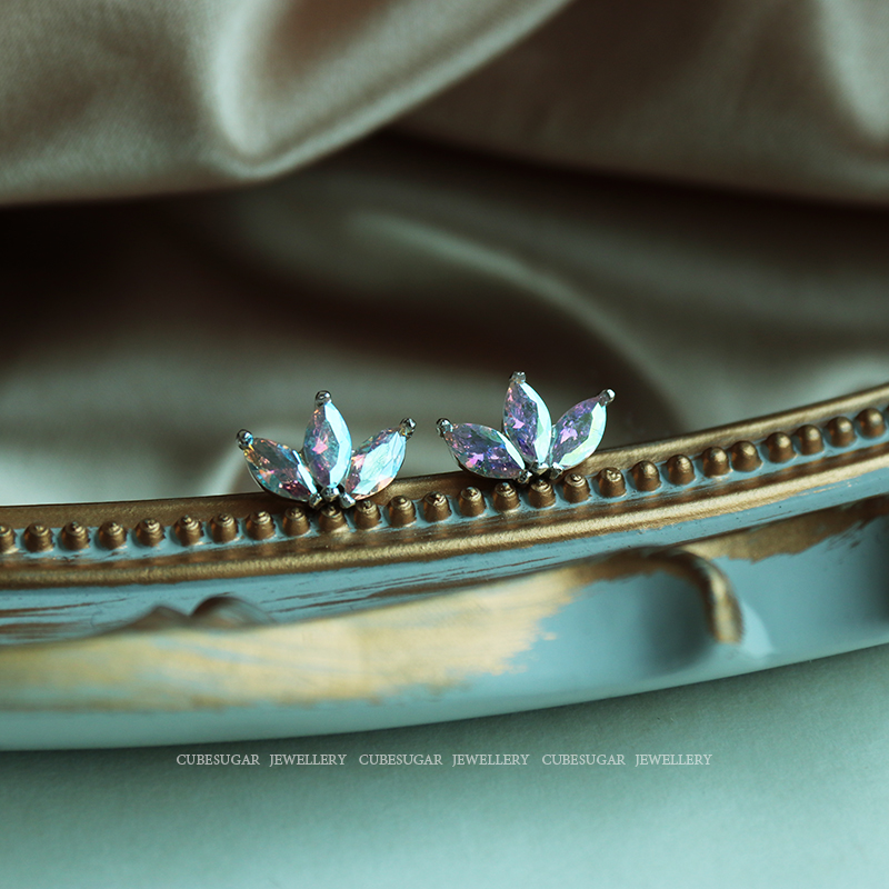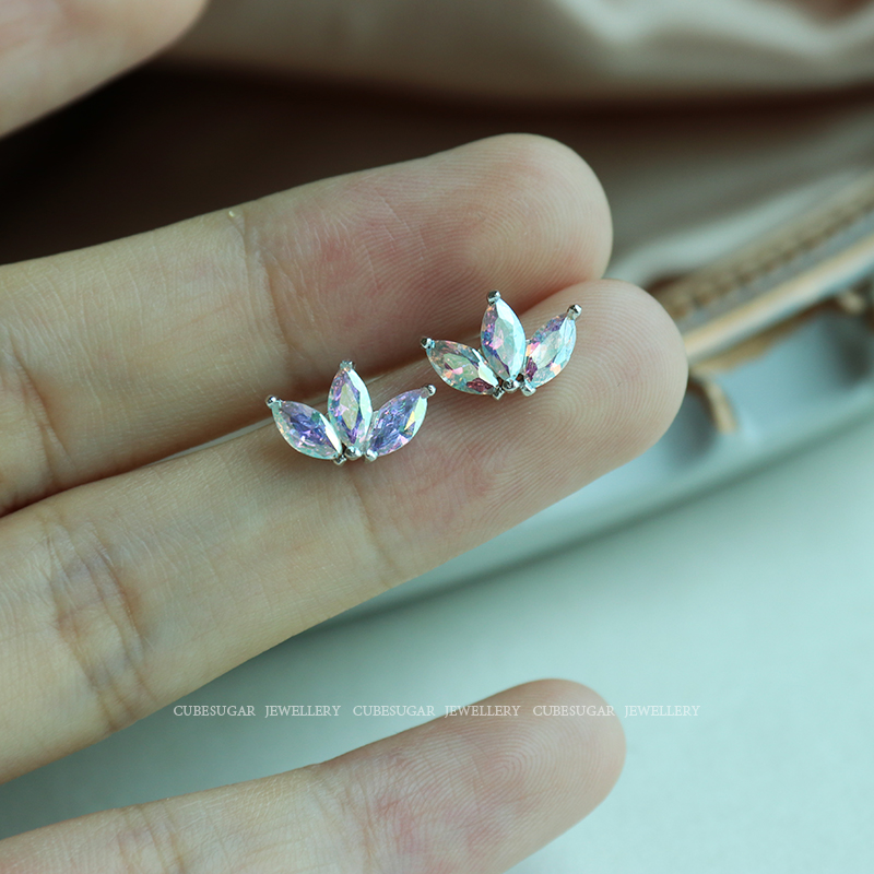 通體925純銀炫彩金屬質感鋯石耳釘小巧個性高級感韓式氣質耳環1入