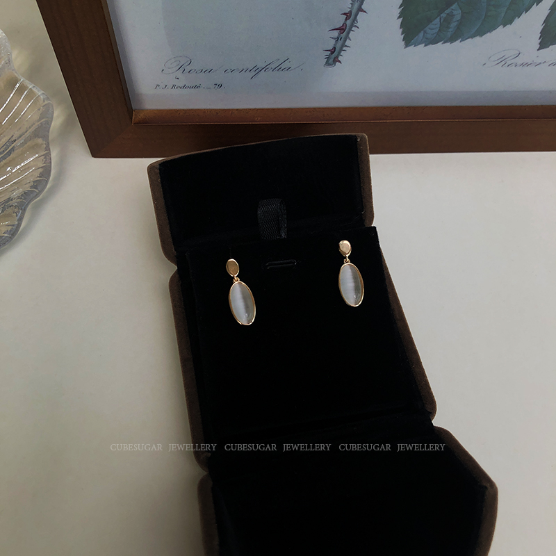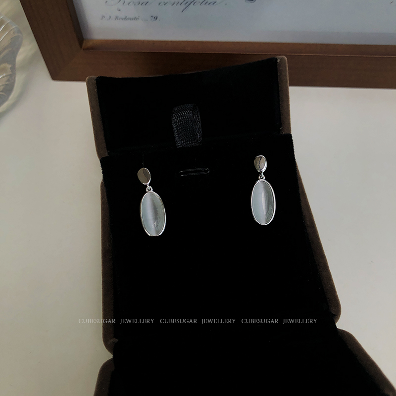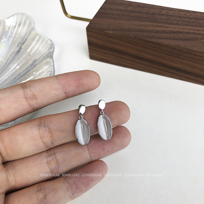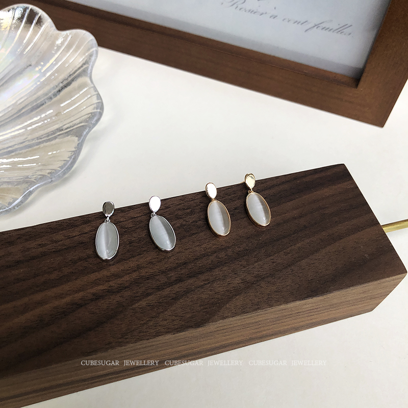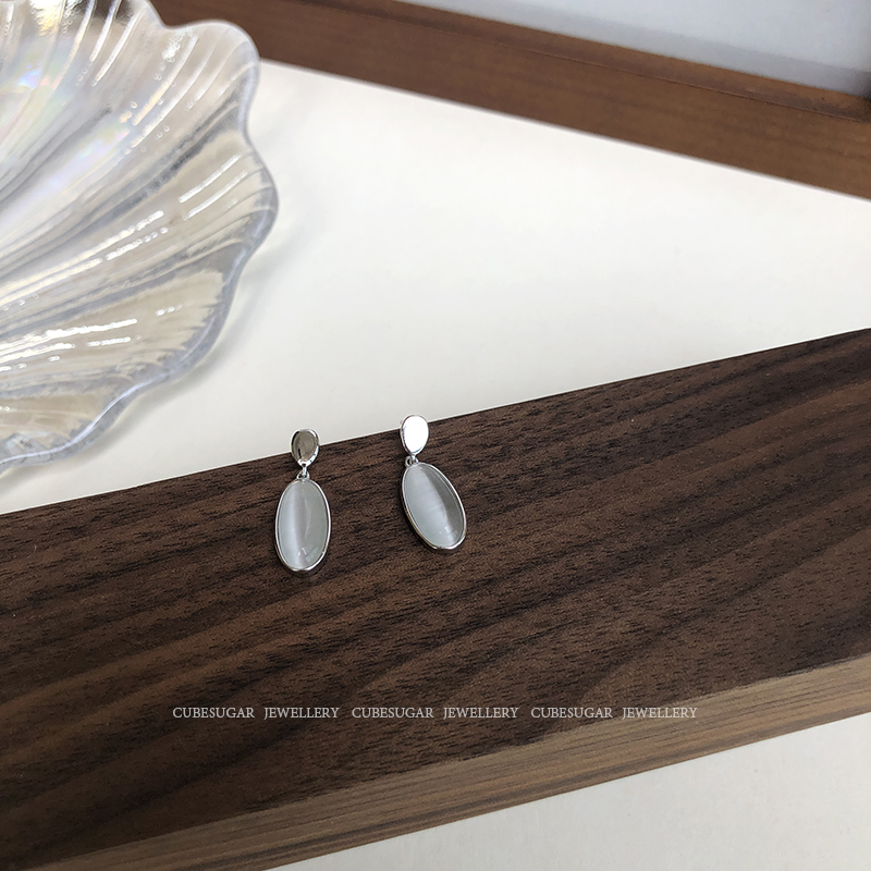 通體925純銀仿貓眼吊墜耳環創意簡約高級感法式網紅小眾韓國耳釘1入