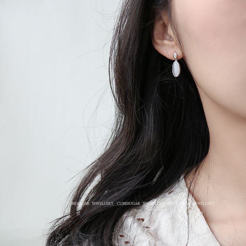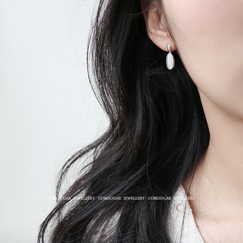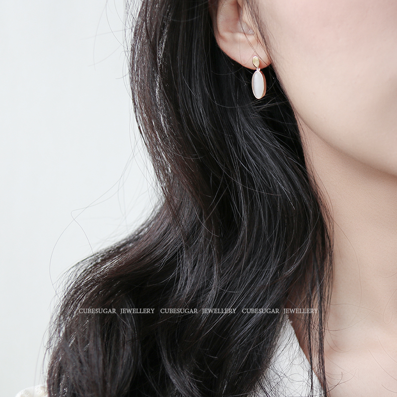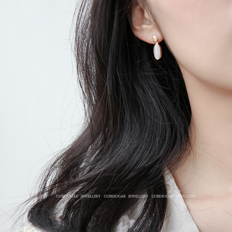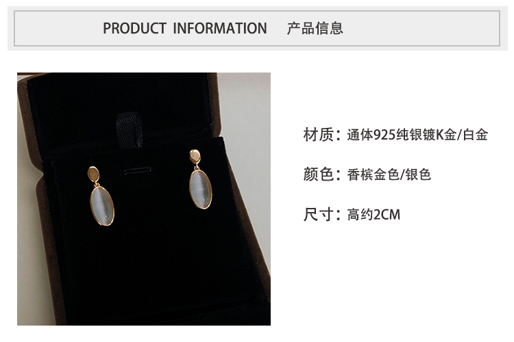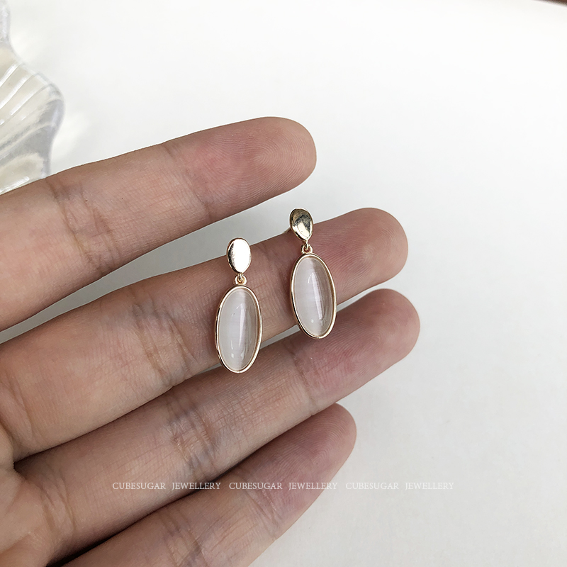 通體925純銀仿貓眼吊墜耳環創意簡約高級感法式網紅小眾韓國耳釘1入