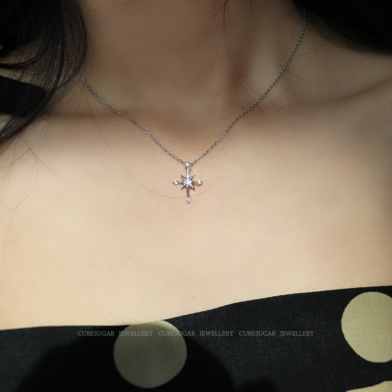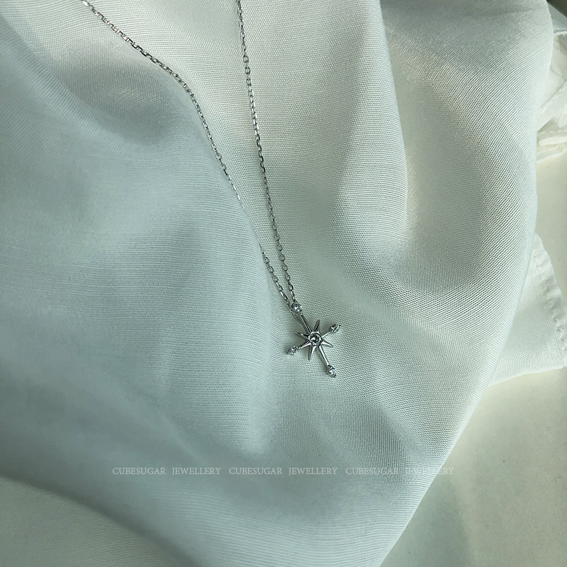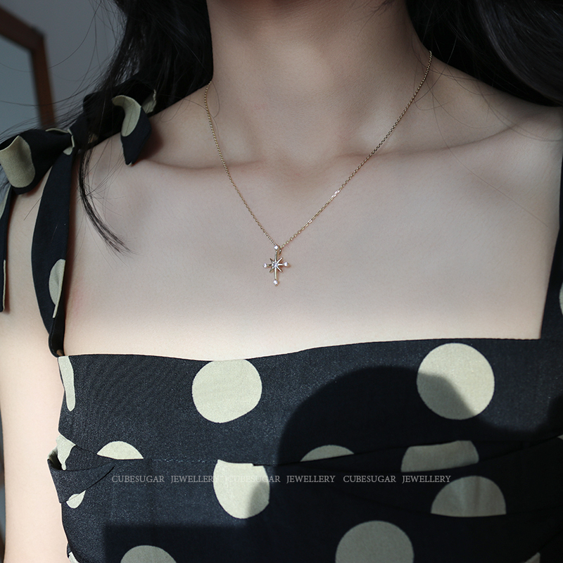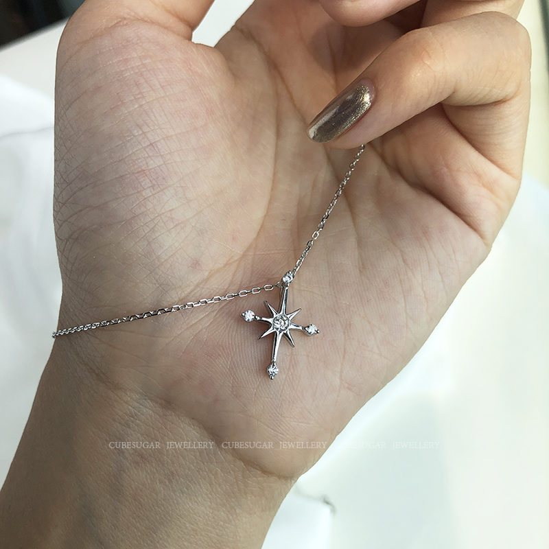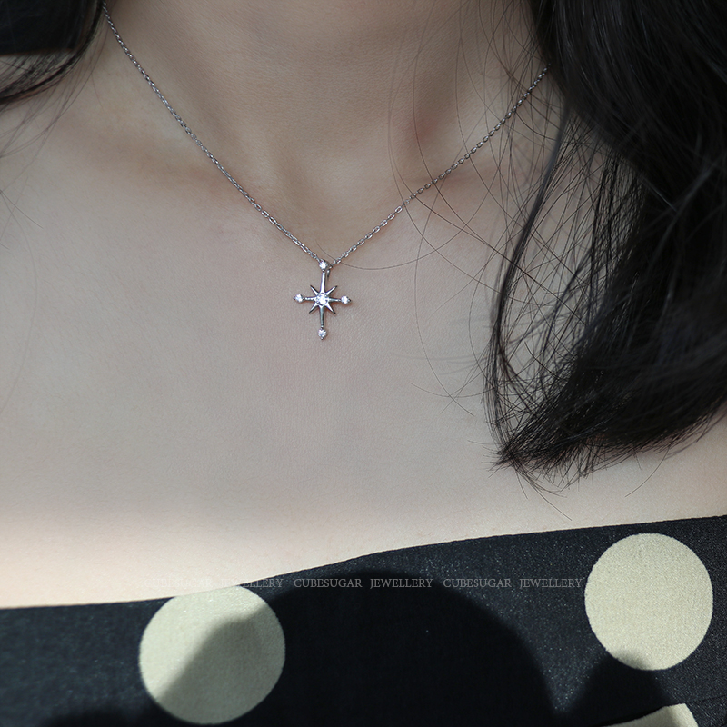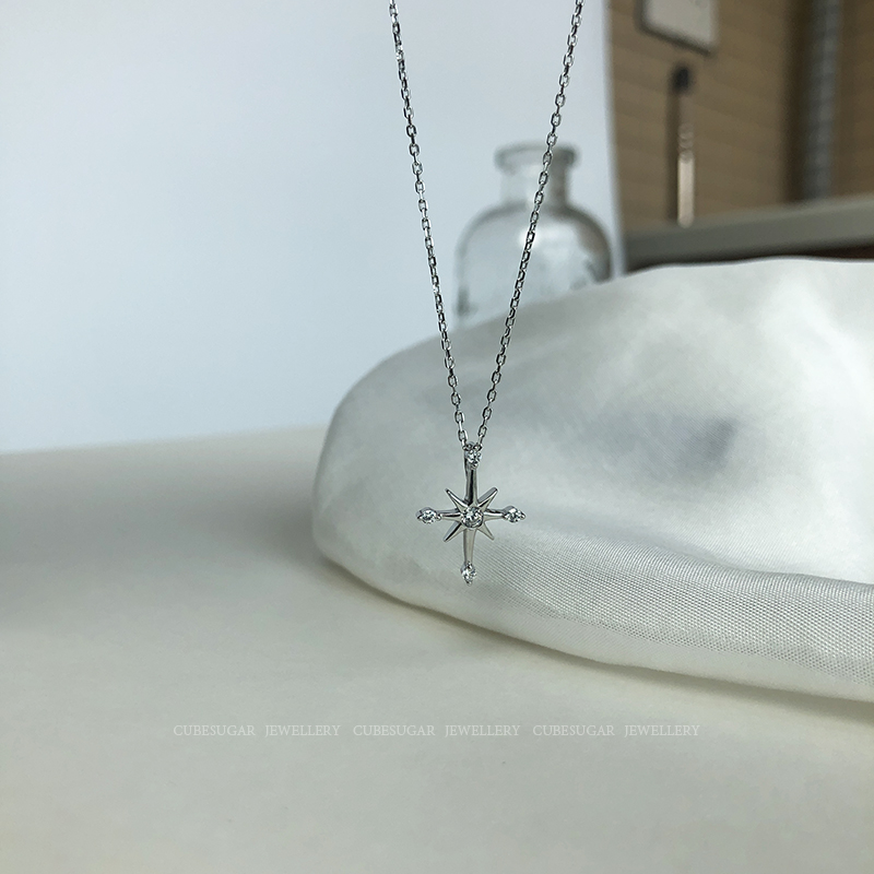 通體925純銀星星十字架項鏈鑲鉆網紅精致簡約仙氣小眾ins鎖骨鏈女1入