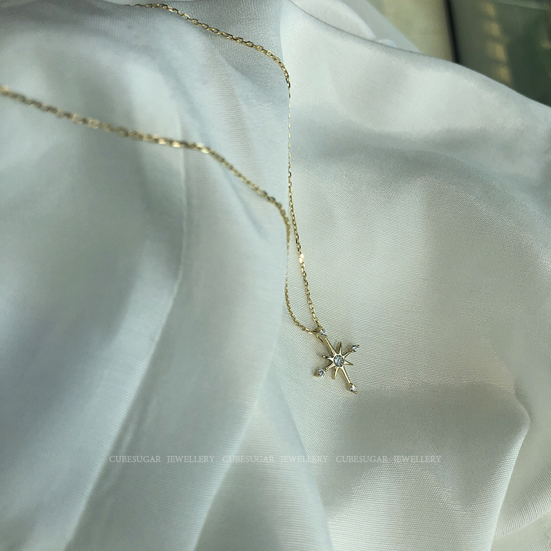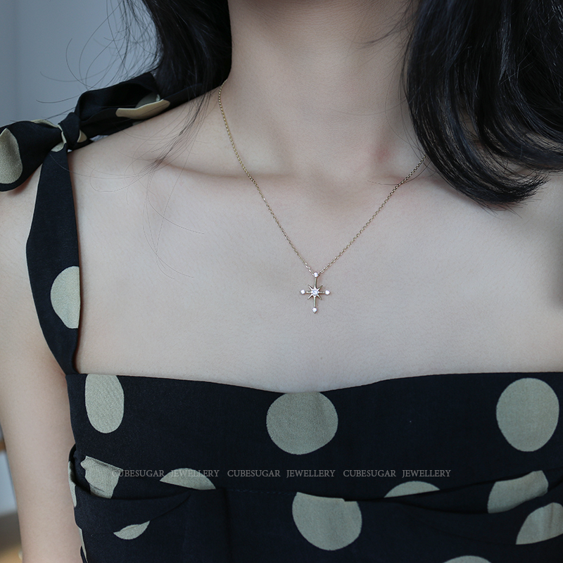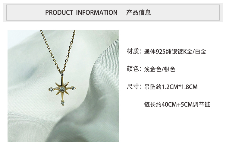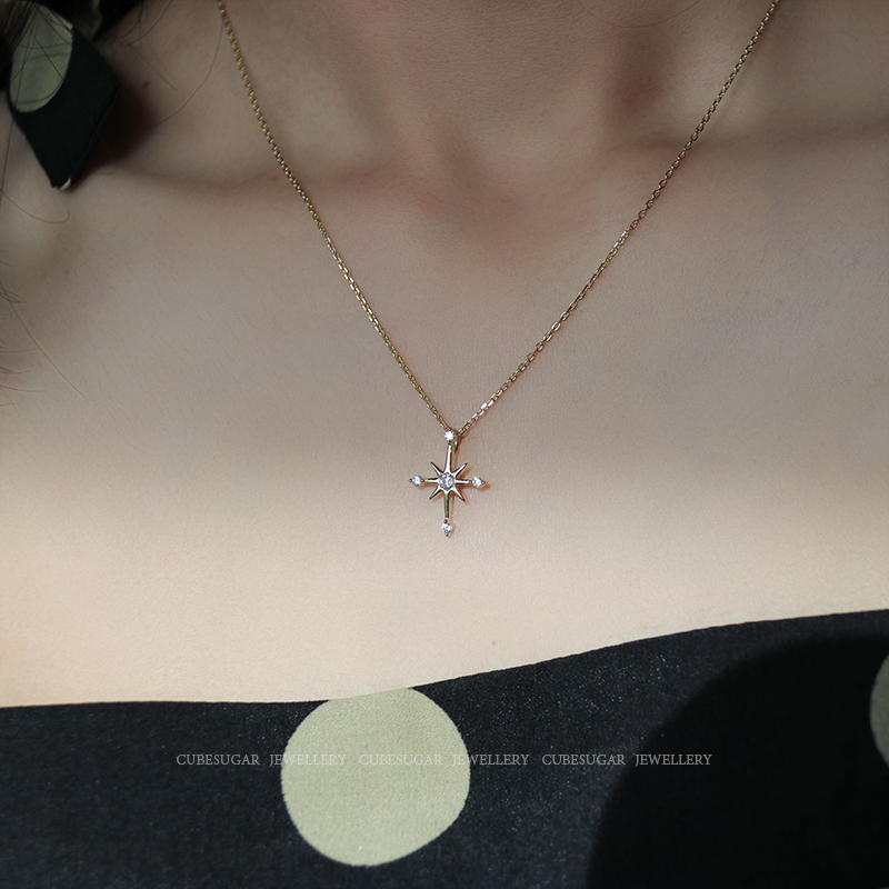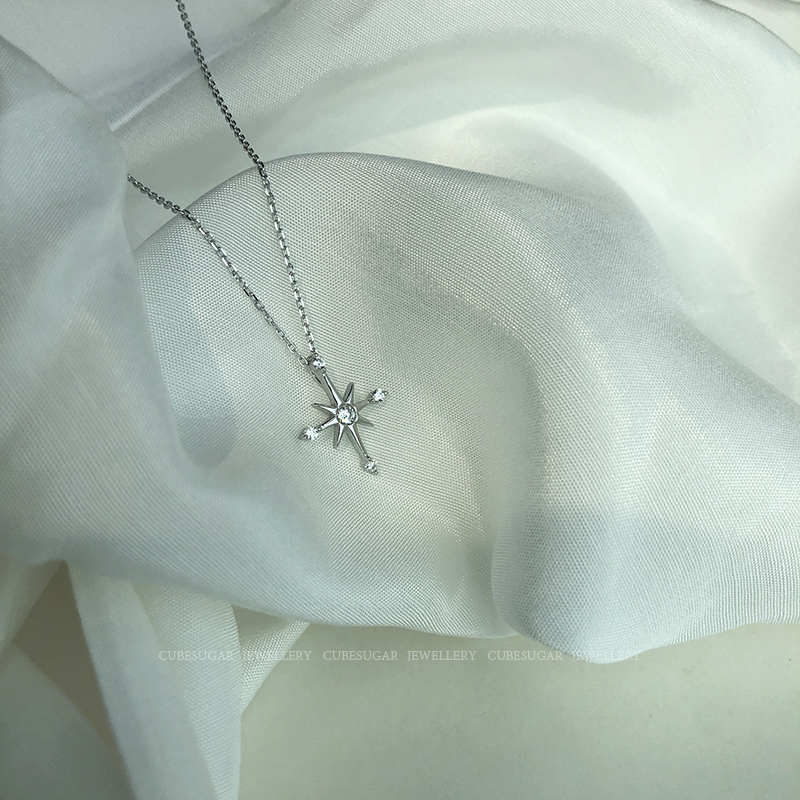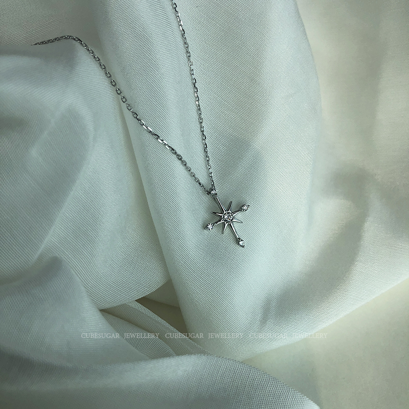 通體925純銀星星十字架項鏈鑲鉆網紅精致簡約仙氣小眾ins鎖骨鏈女1入
