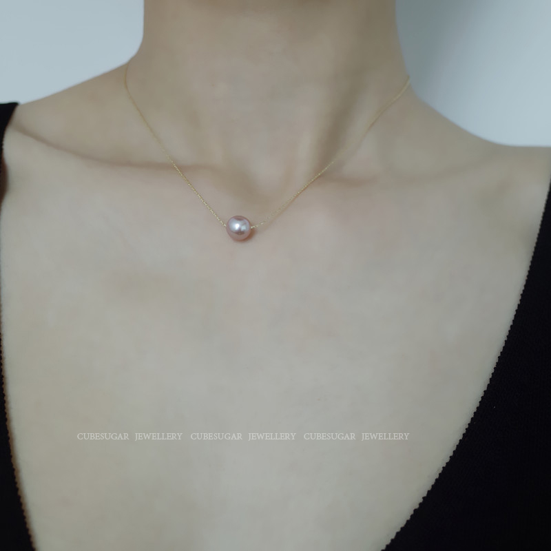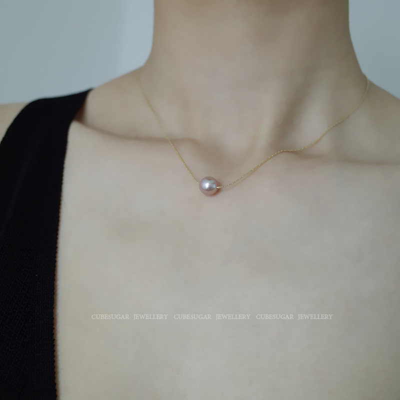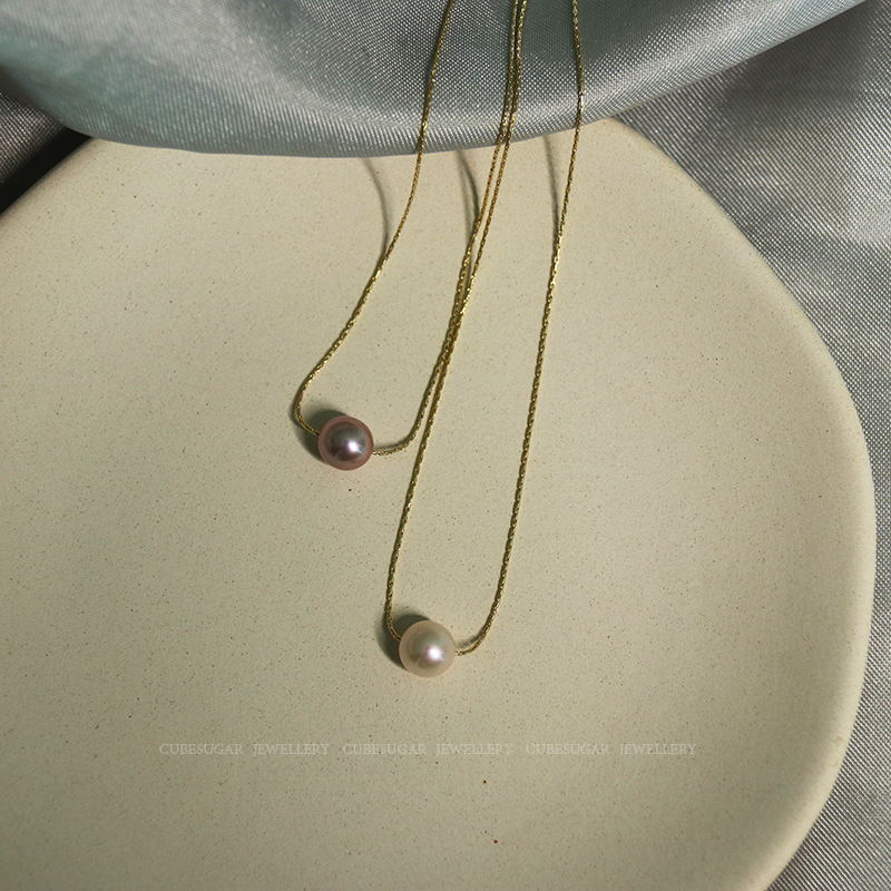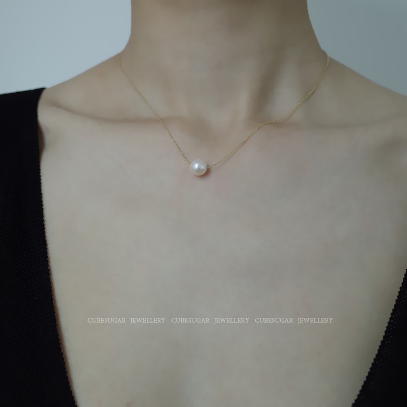 高品質美物 天然強光正圓珍珠鎖骨鏈 單顆精致氣質簡約蛇骨鏈項鏈1入