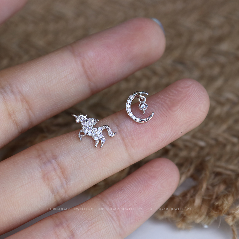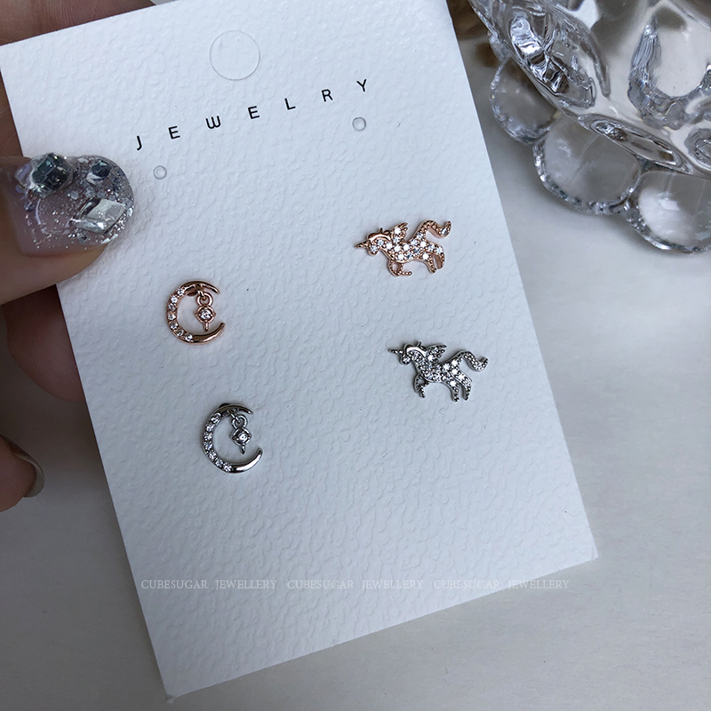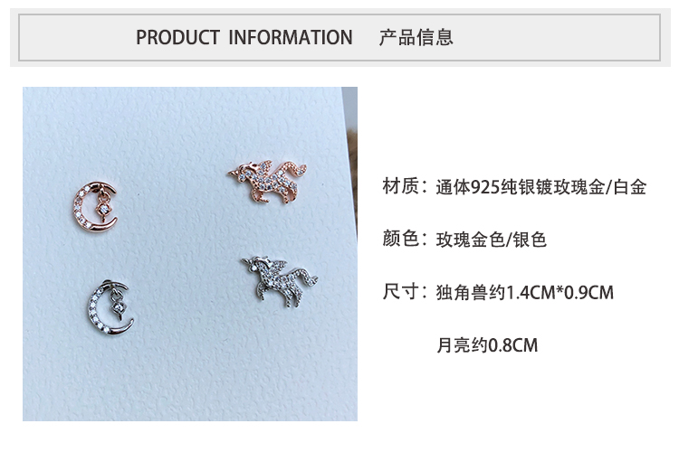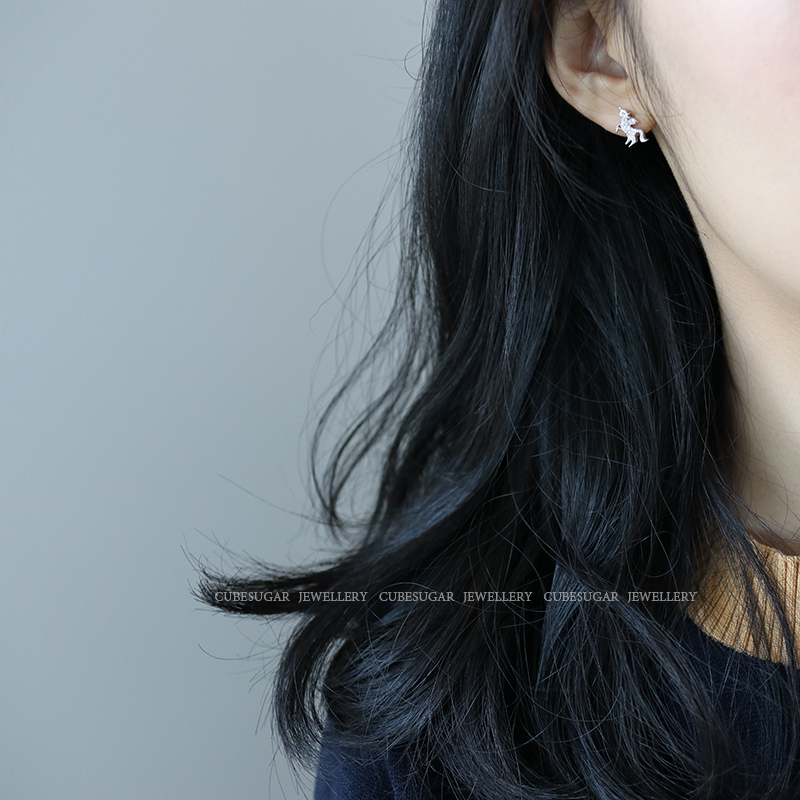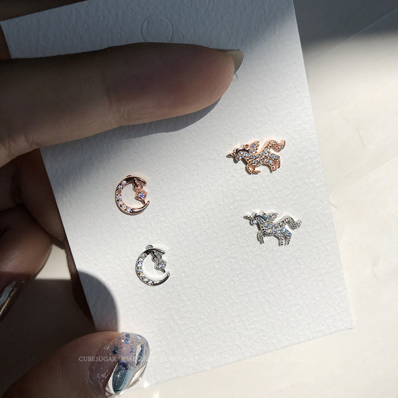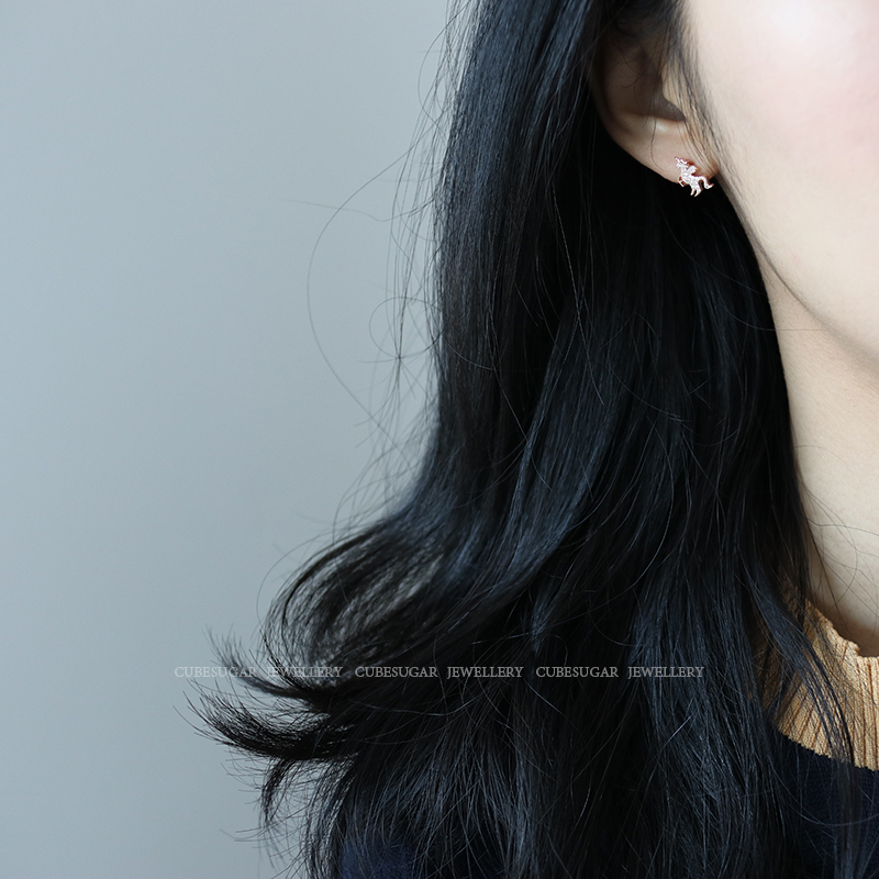 通體925純銀鑲鉆小馬不對稱耳釘網紅創意設計ins小眾高級感耳環1入