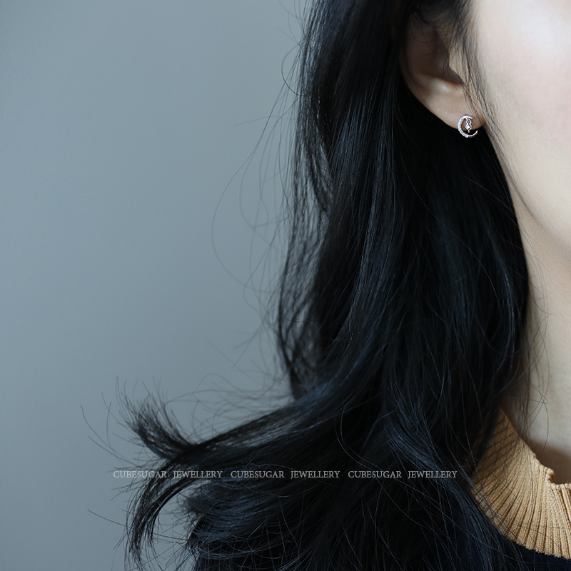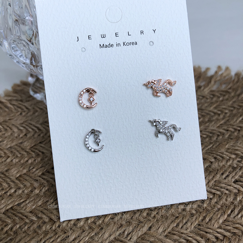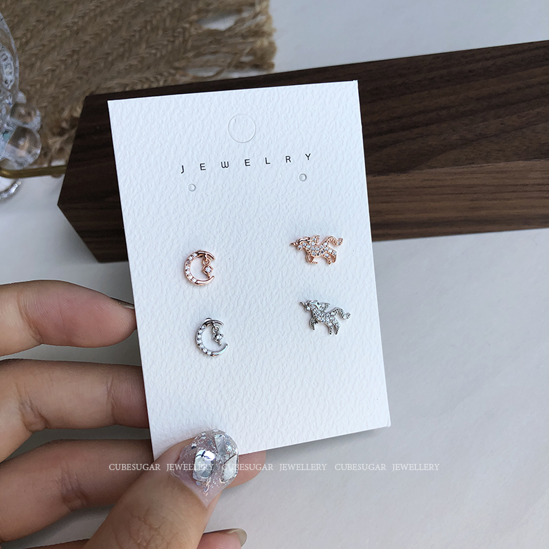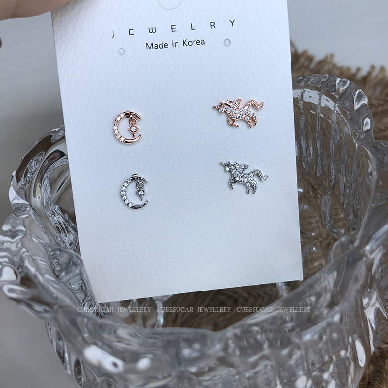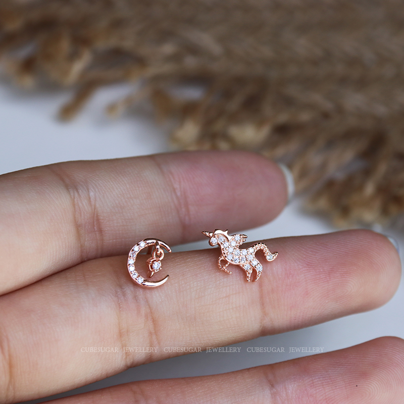 通體925純銀鑲鉆小馬不對稱耳釘網紅創意設計ins小眾高級感耳環1入