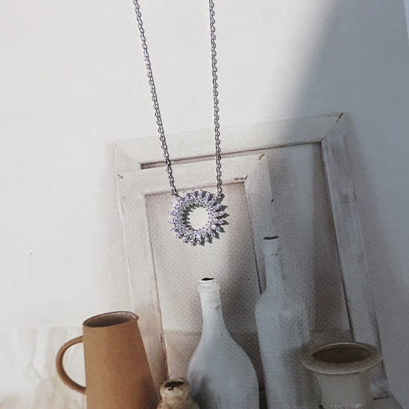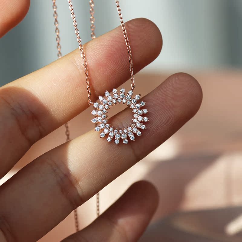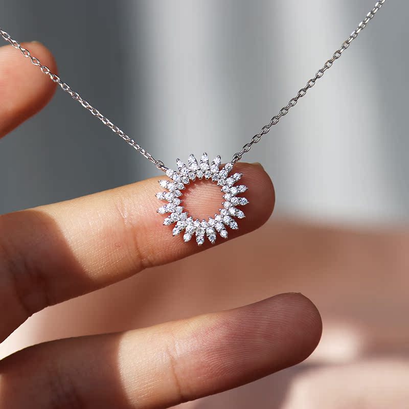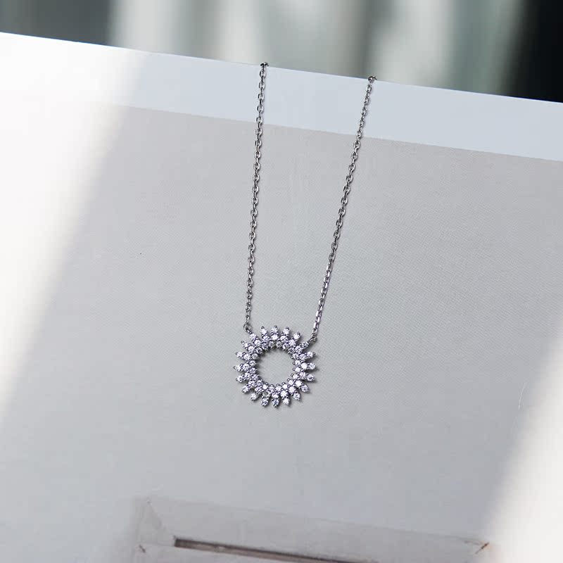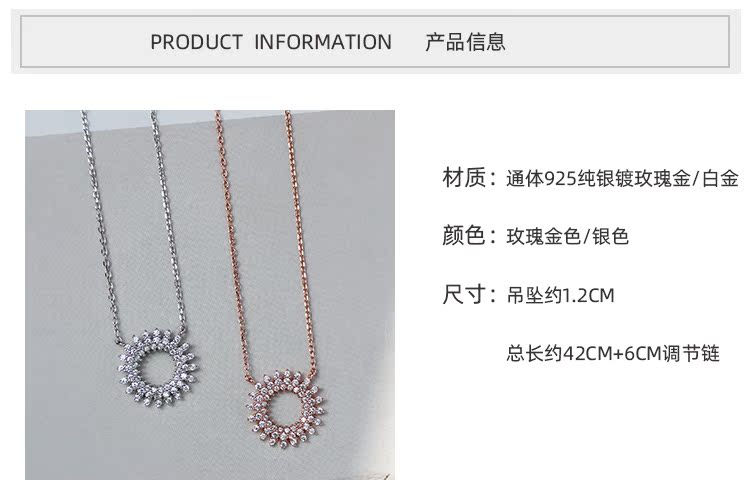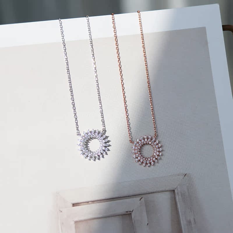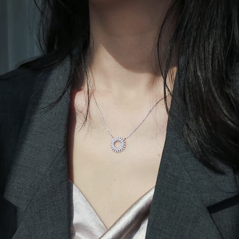 高級感通體925純銀滿鉆圓環項鏈精致日系輕奢鑲鉆氣質鎖骨鏈女1入