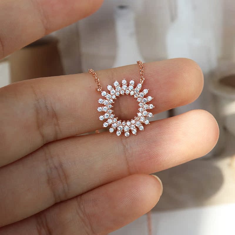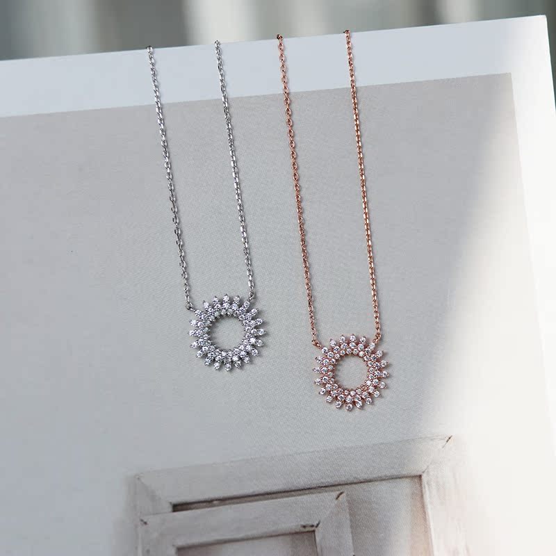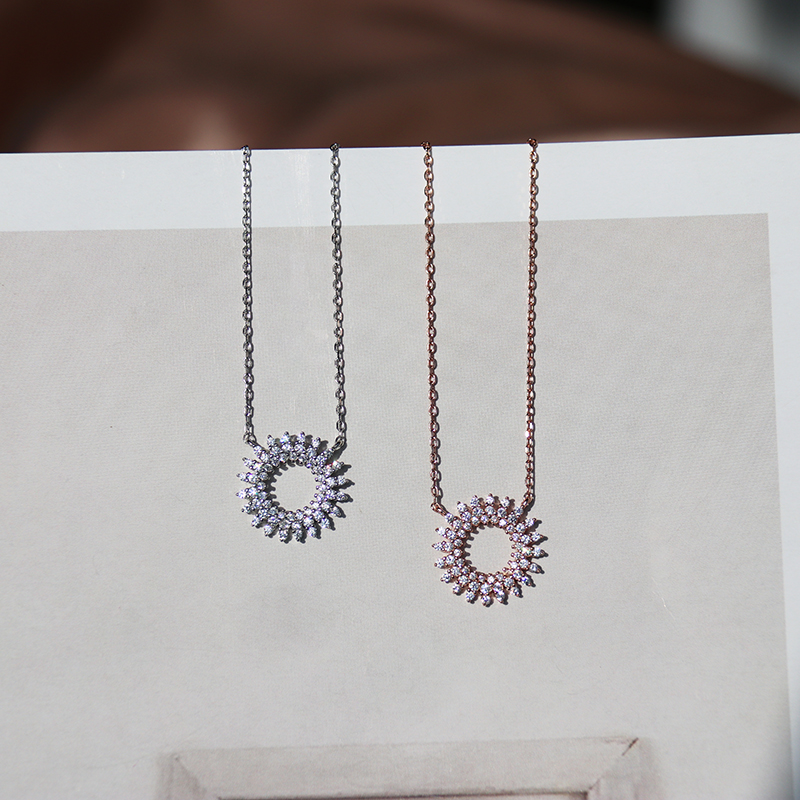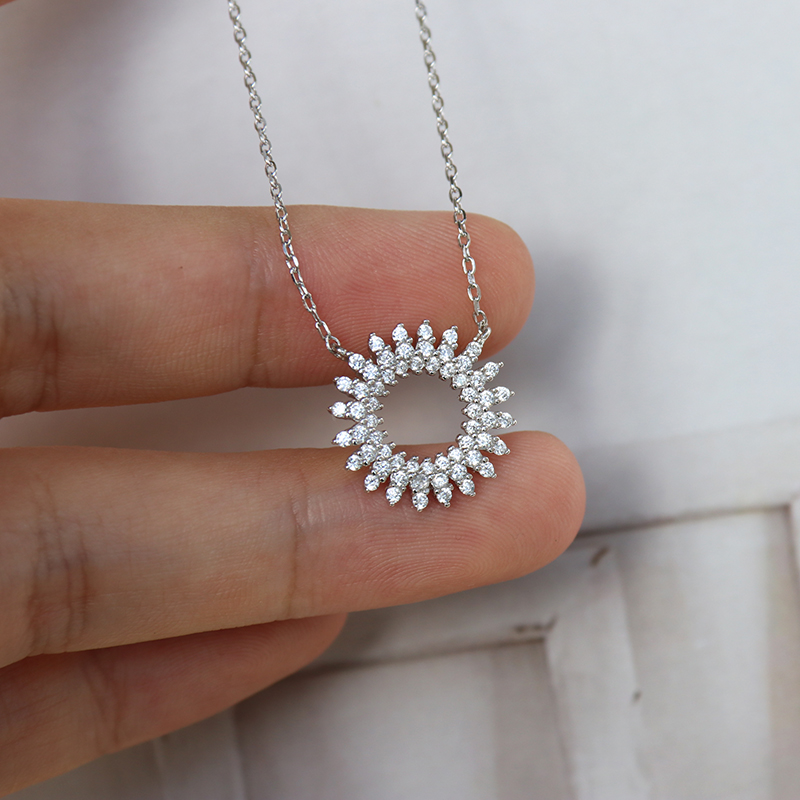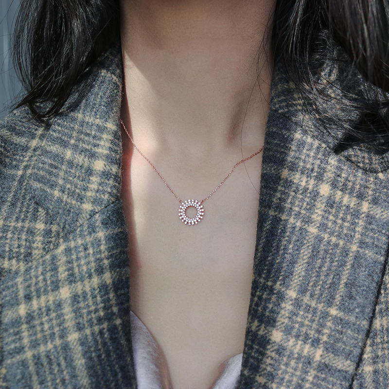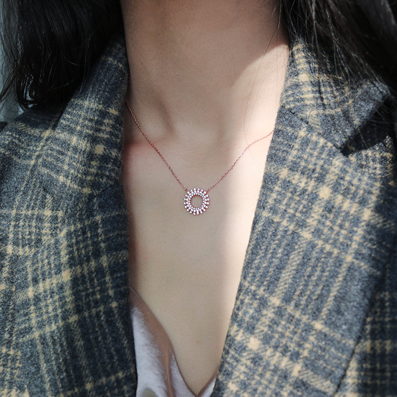 高級感通體925純銀滿鉆圓環項鏈精致日系輕奢鑲鉆氣質鎖骨鏈女1入