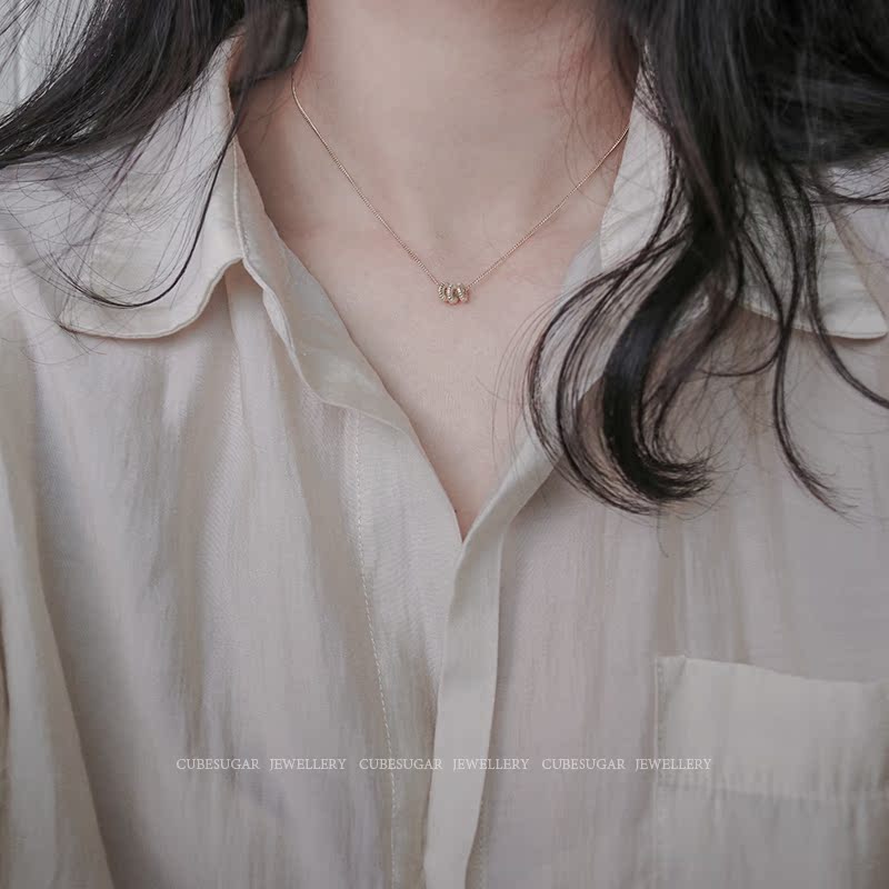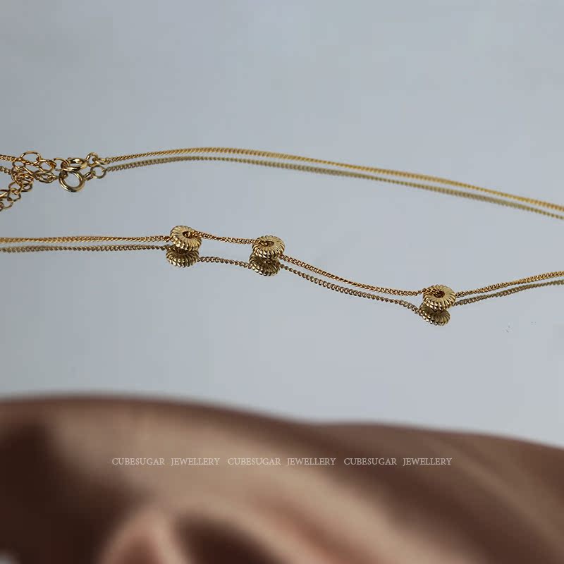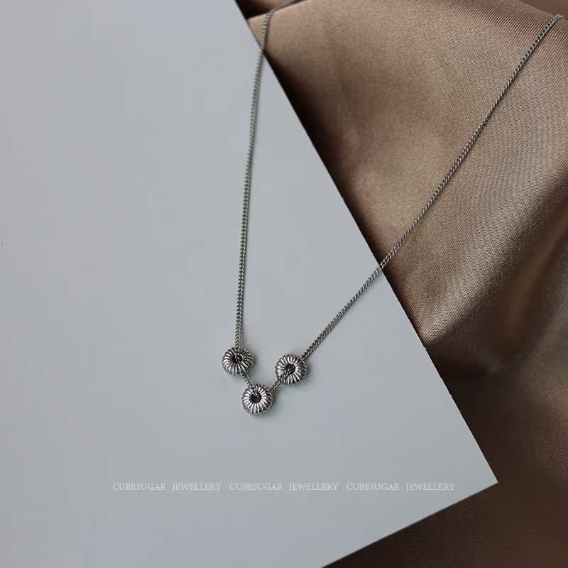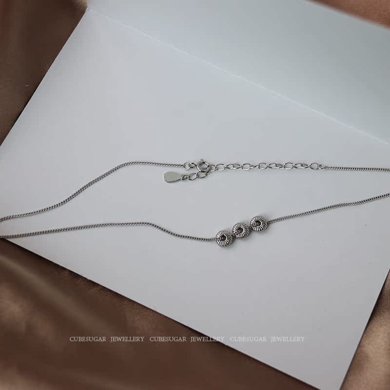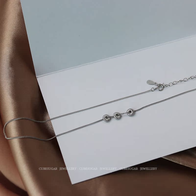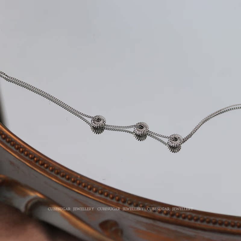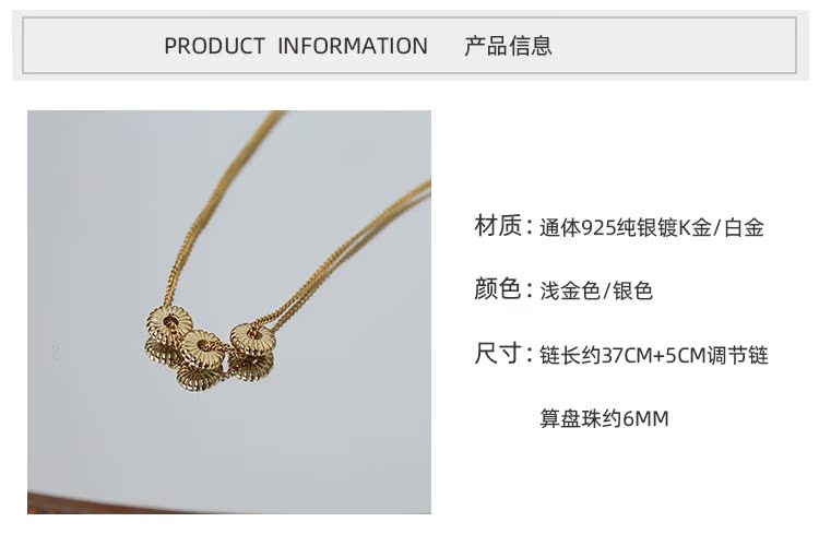 通體925純銀花紋算盤珠項鏈氣質ins風百搭時髦小眾設計鎖骨鏈女1入