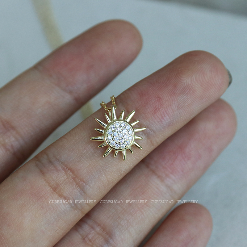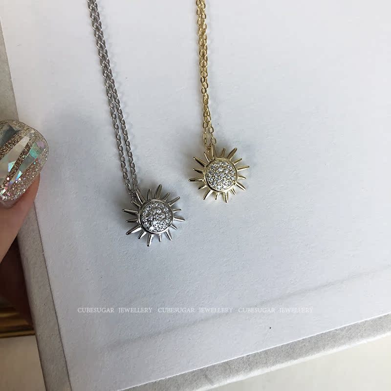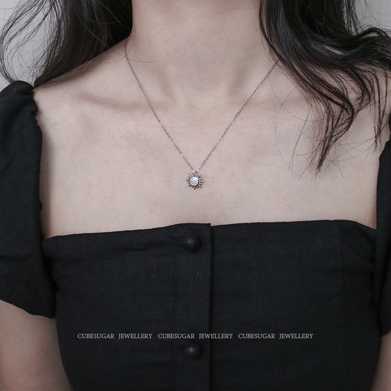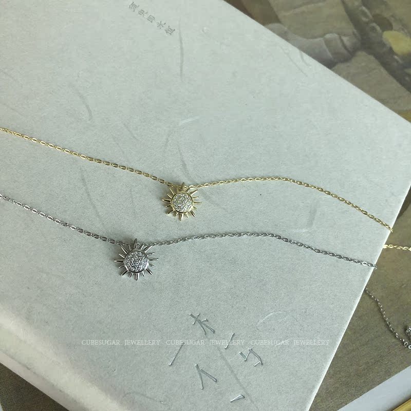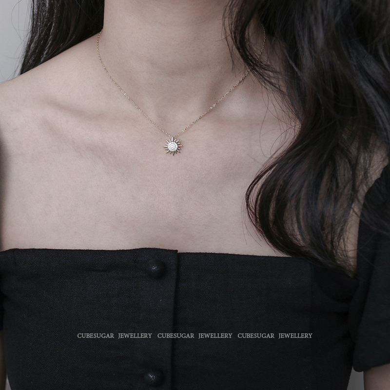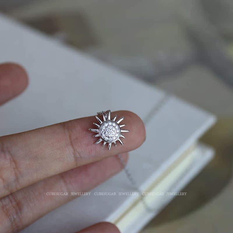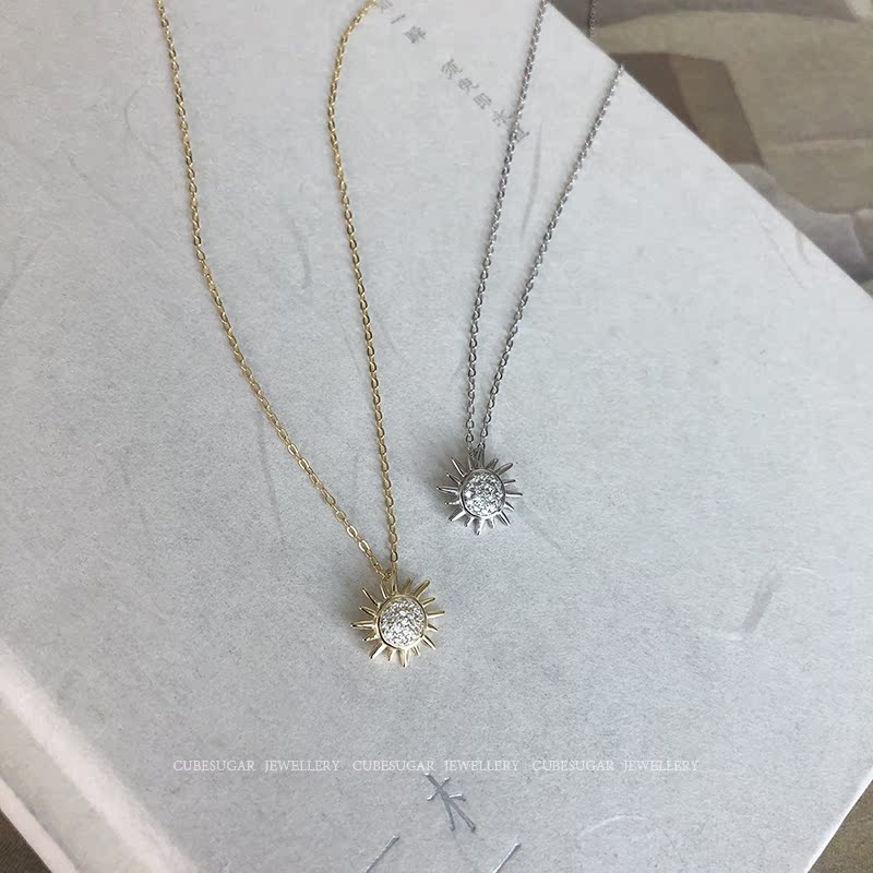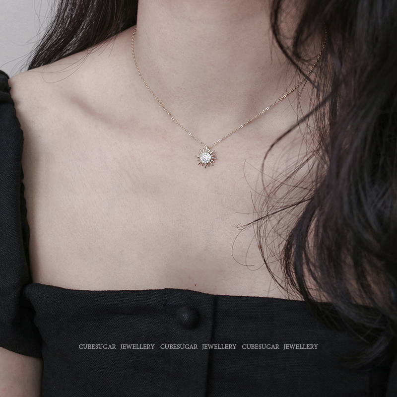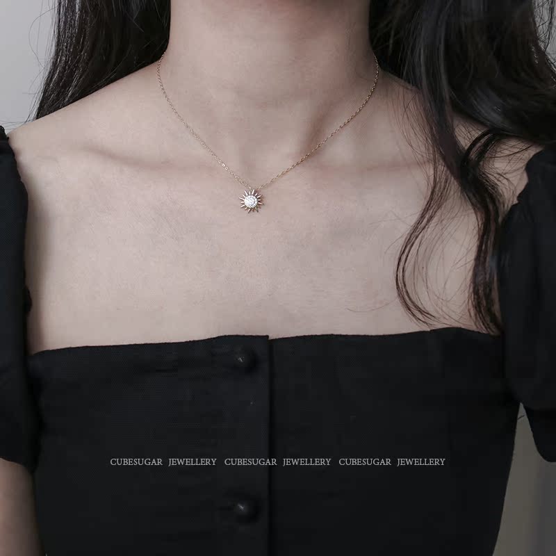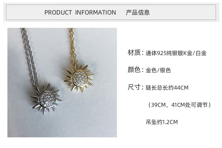 通體925純銀鑲鉆小太陽項鏈簡約氣質精致大方輕奢小眾鎖骨鏈女1入