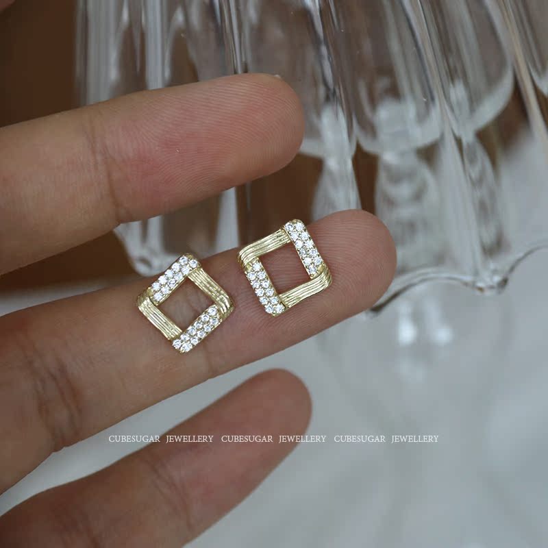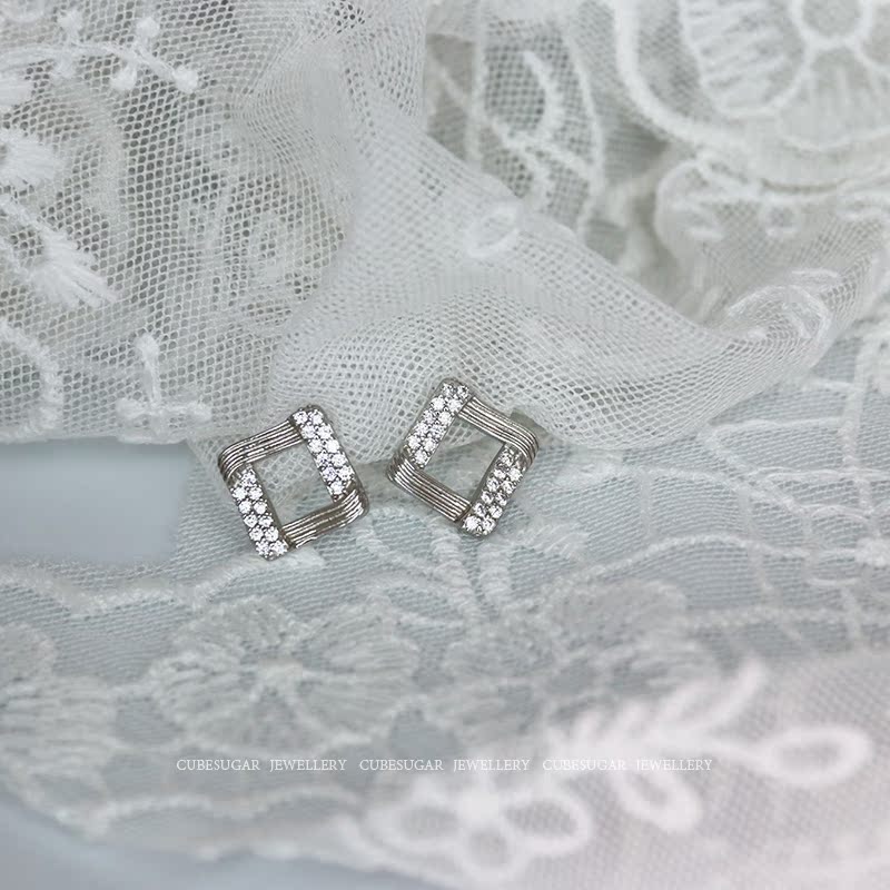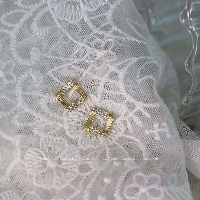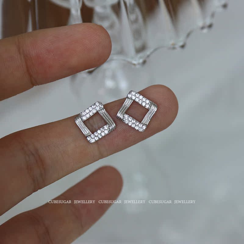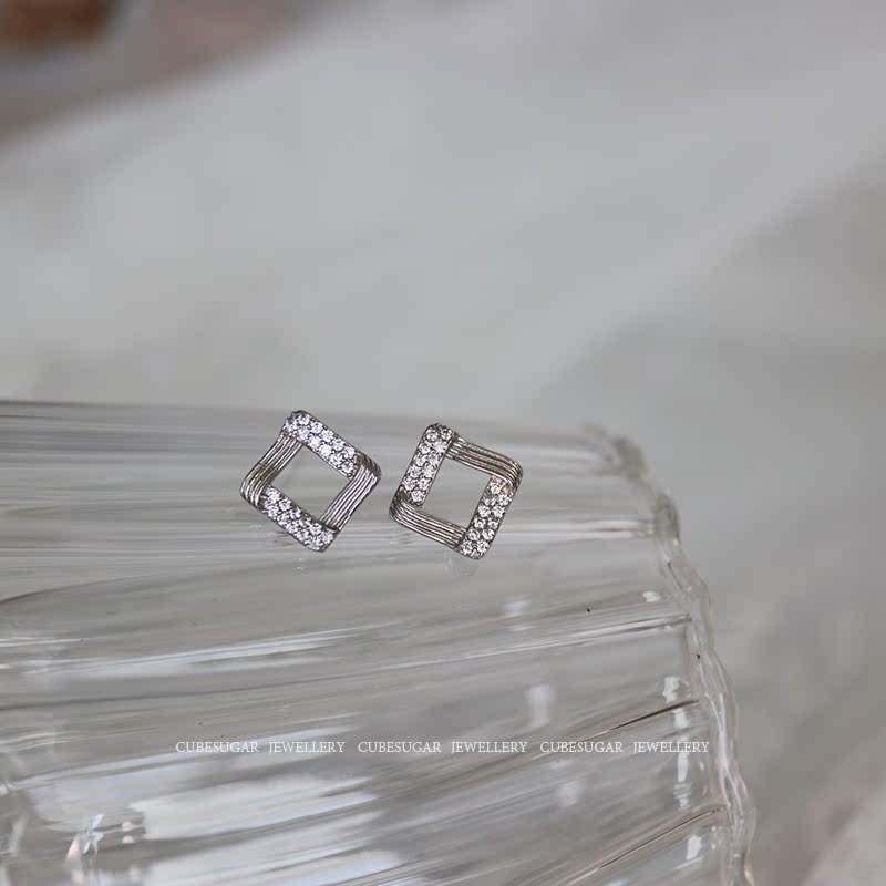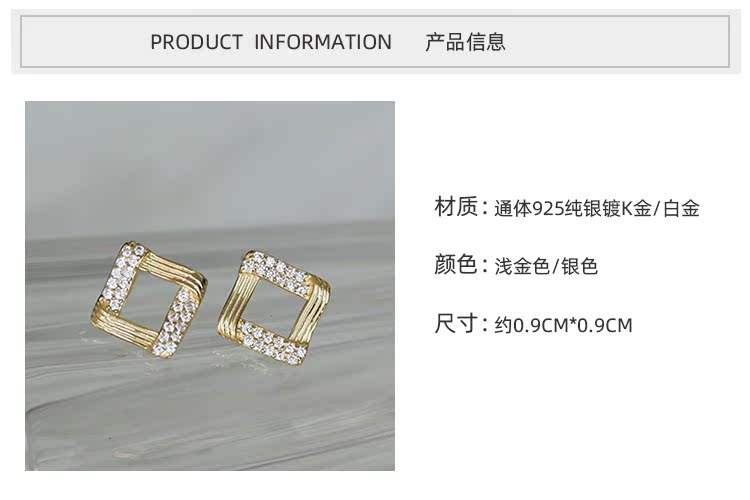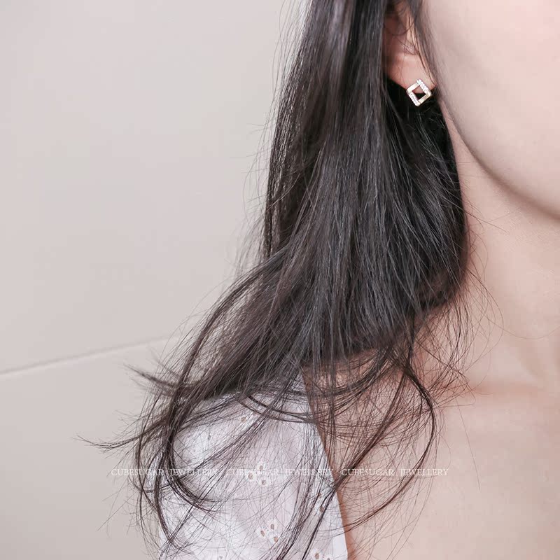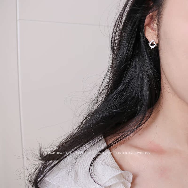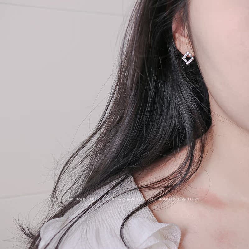通體925純銀方形鑲鉆耳釘簡約氣質個性通勤高級感小巧韓國耳環1入