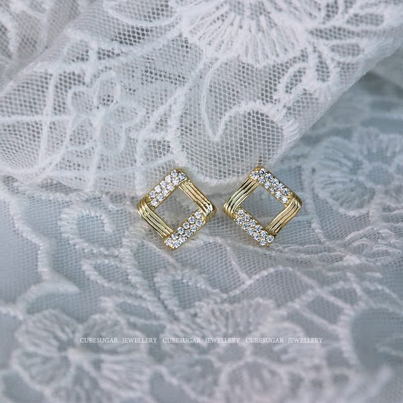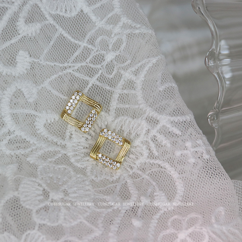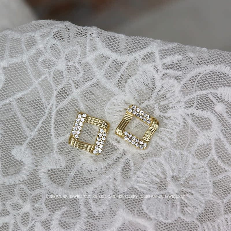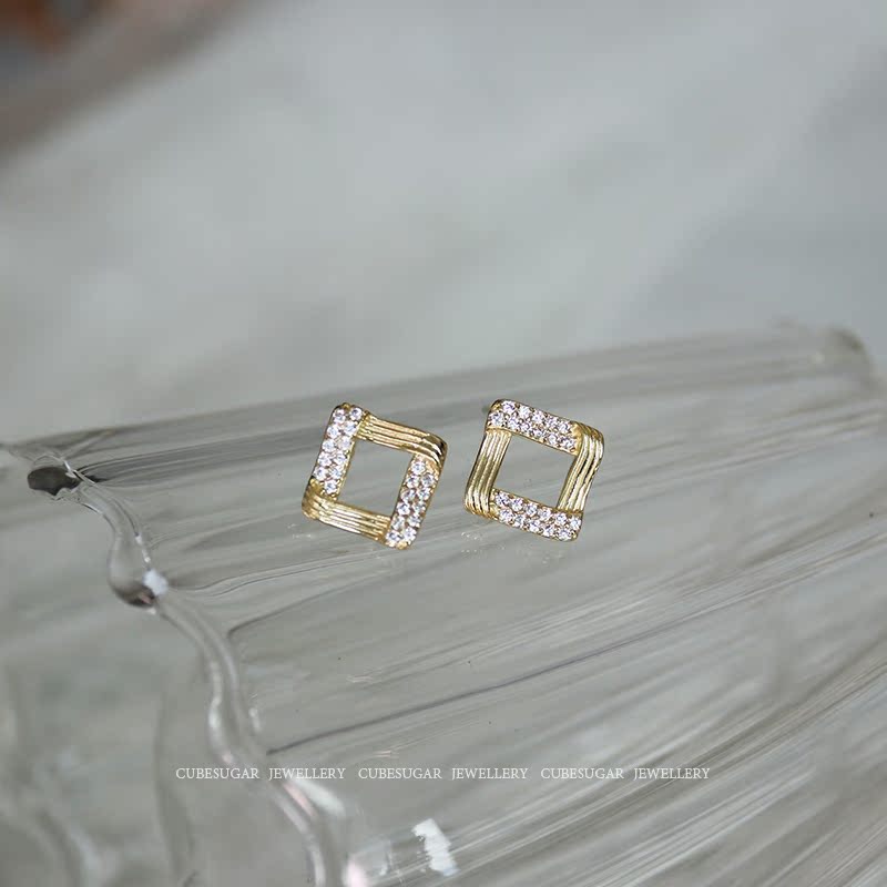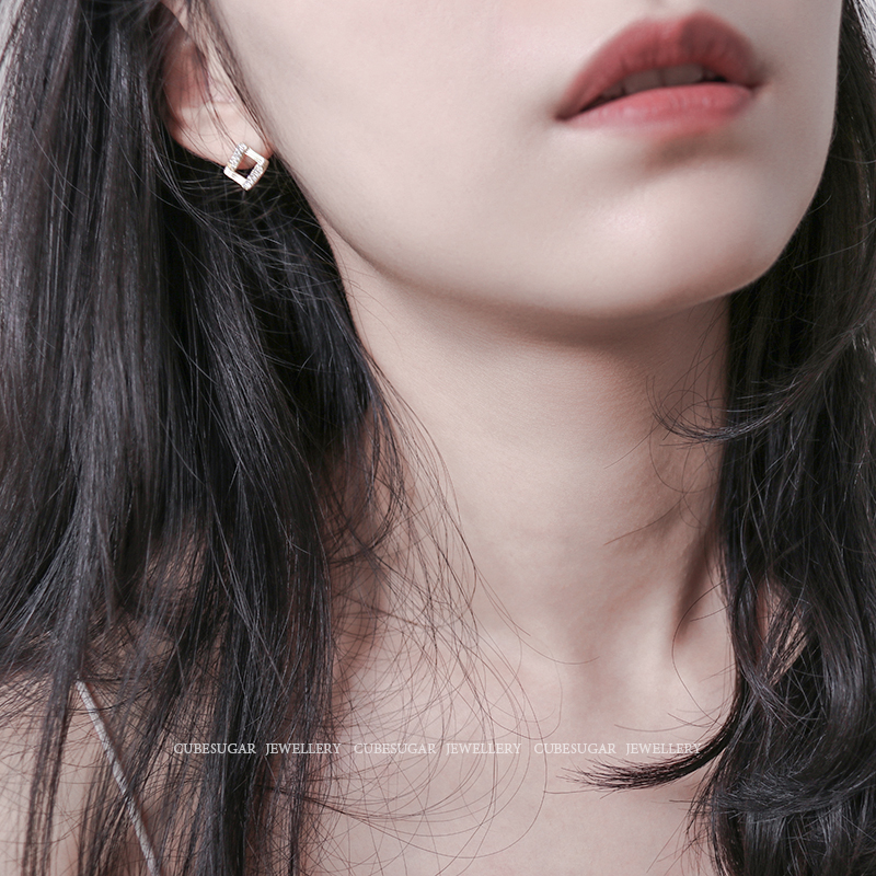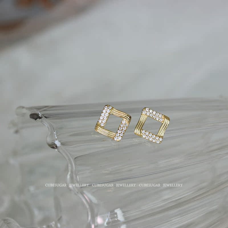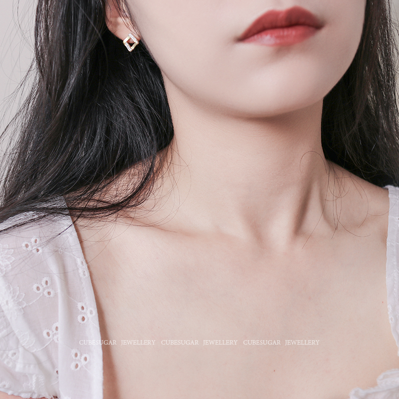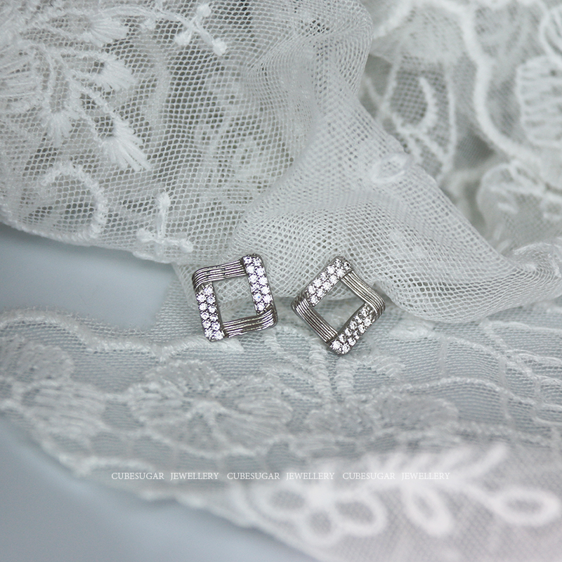 通體925純銀方形鑲鉆耳釘簡約氣質個性通勤高級感小巧韓國耳環1入