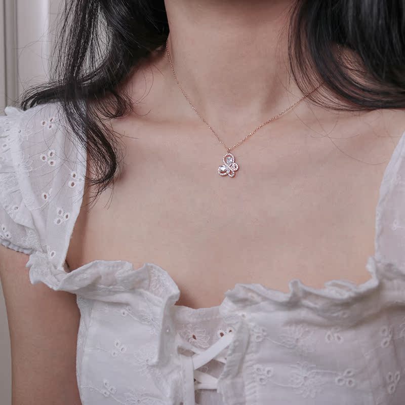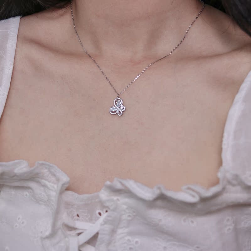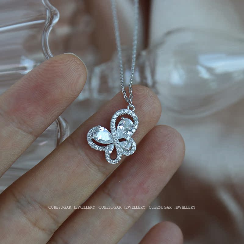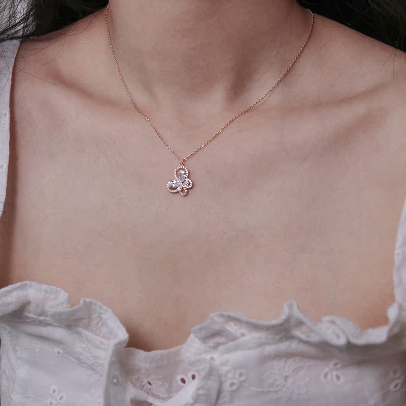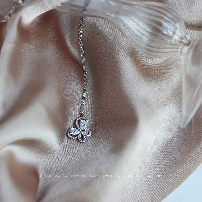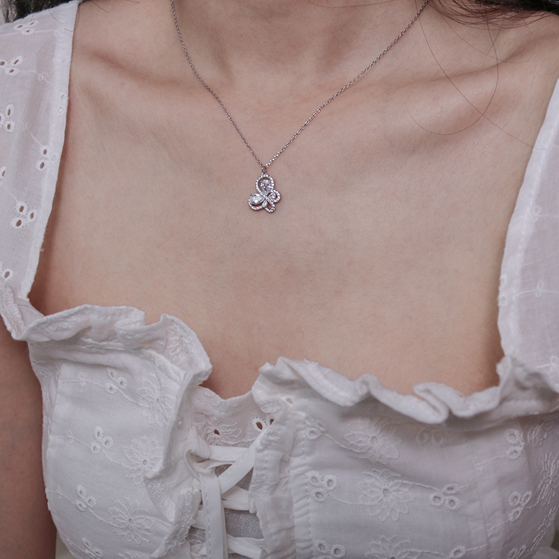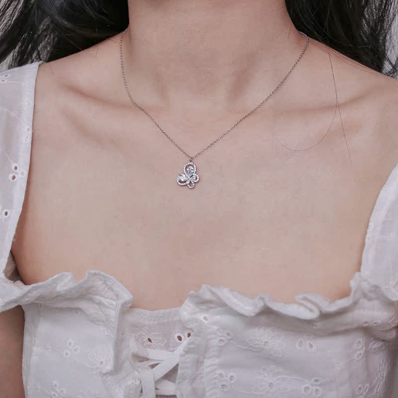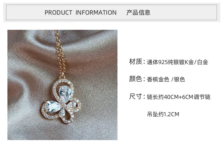 通體925純銀鑲鉆精致蝴蝶項鏈復古鋯石氣質簡約輕奢高級感鎖骨鏈1入