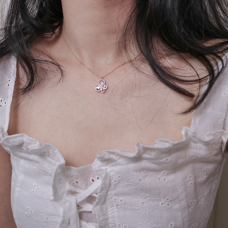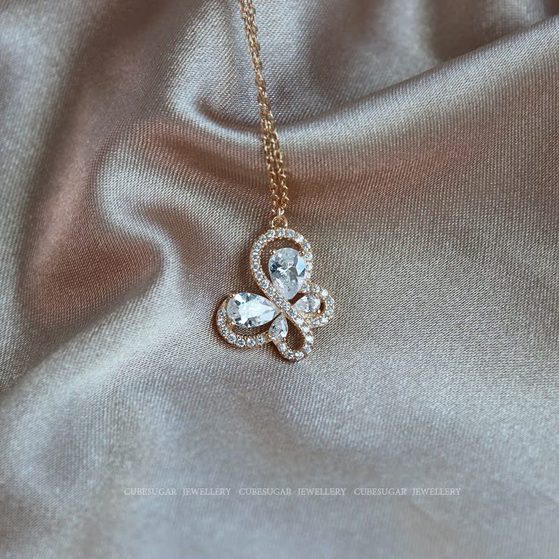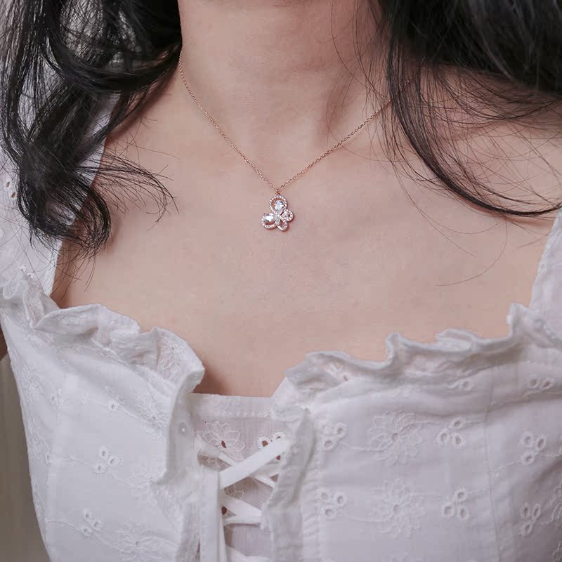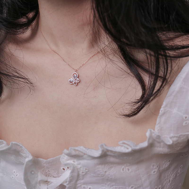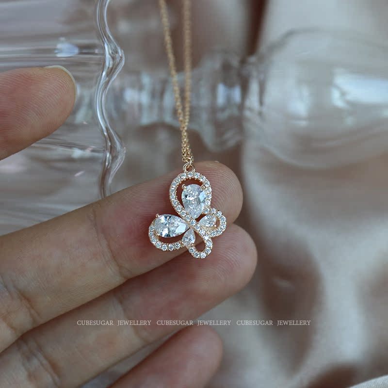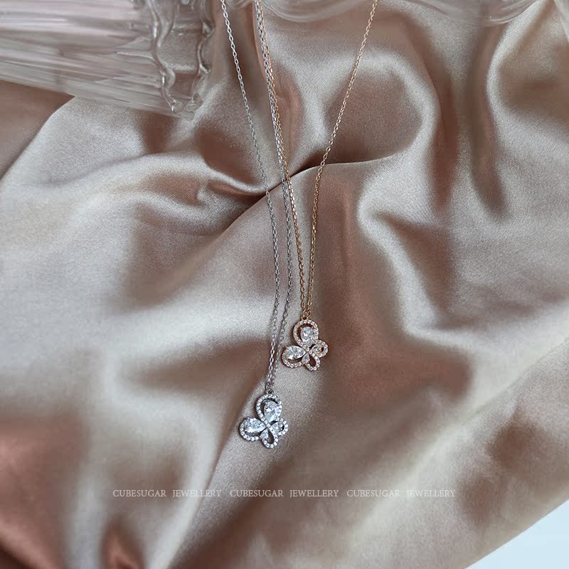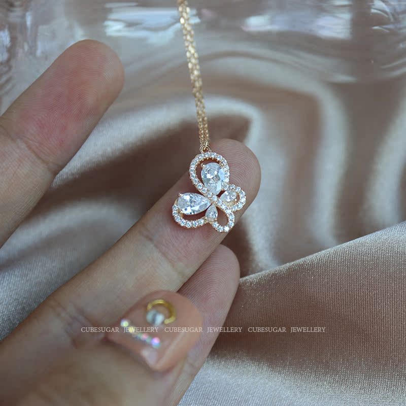 通體925純銀鑲鉆精致蝴蝶項鏈復古鋯石氣質簡約輕奢高級感鎖骨鏈1入