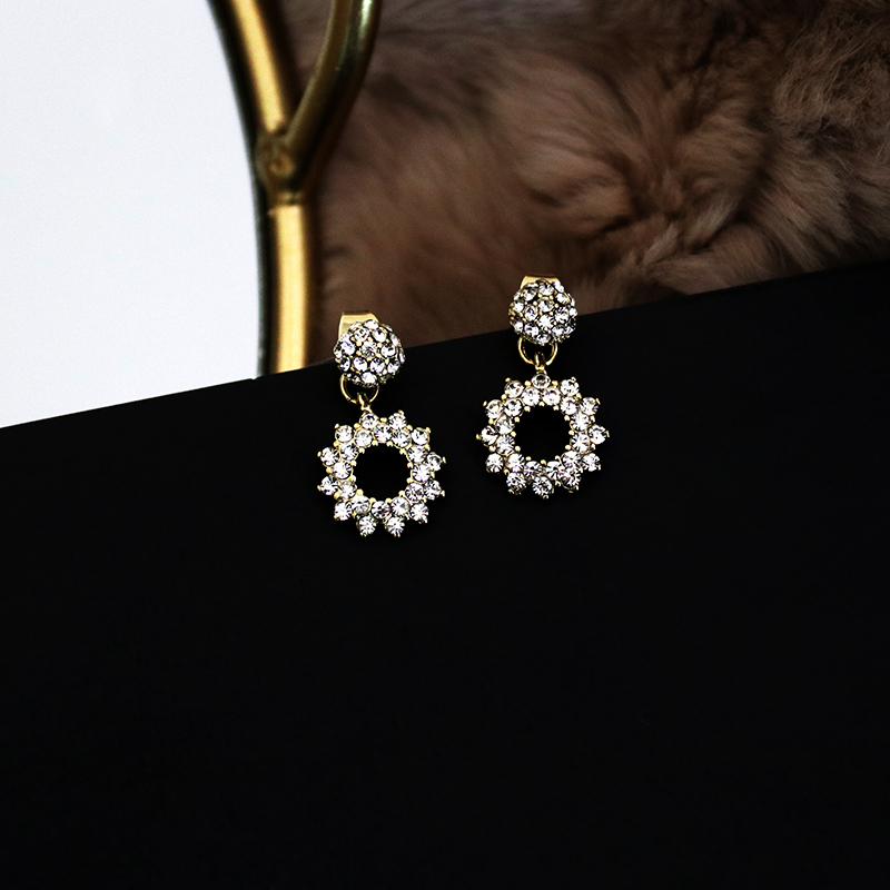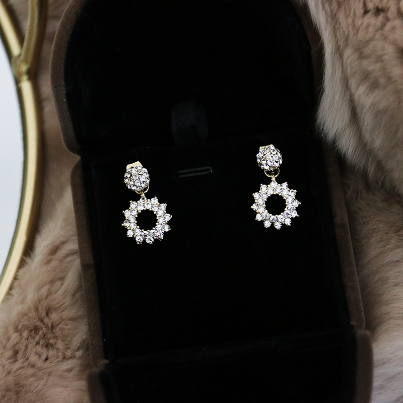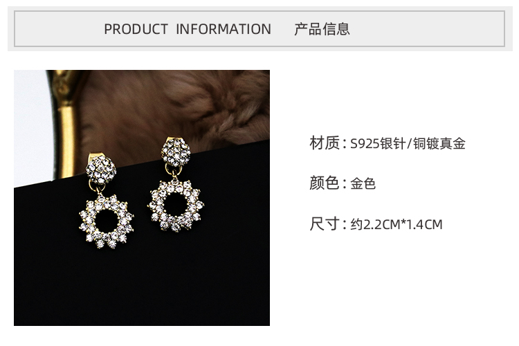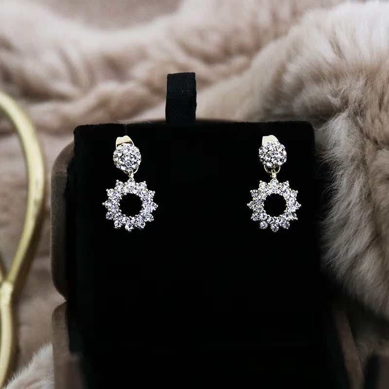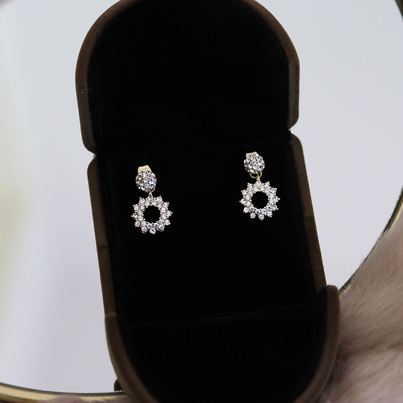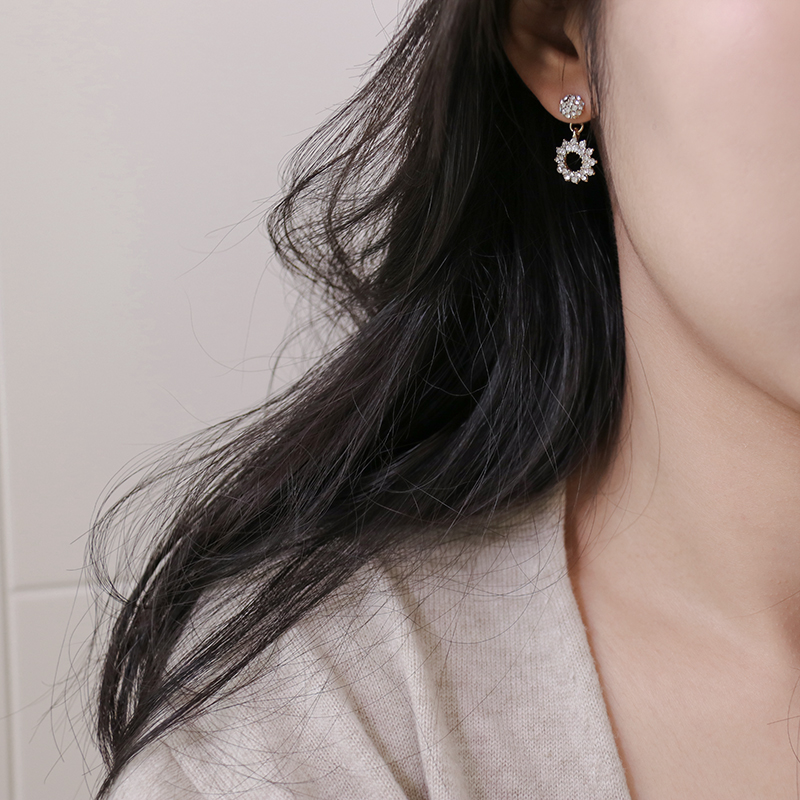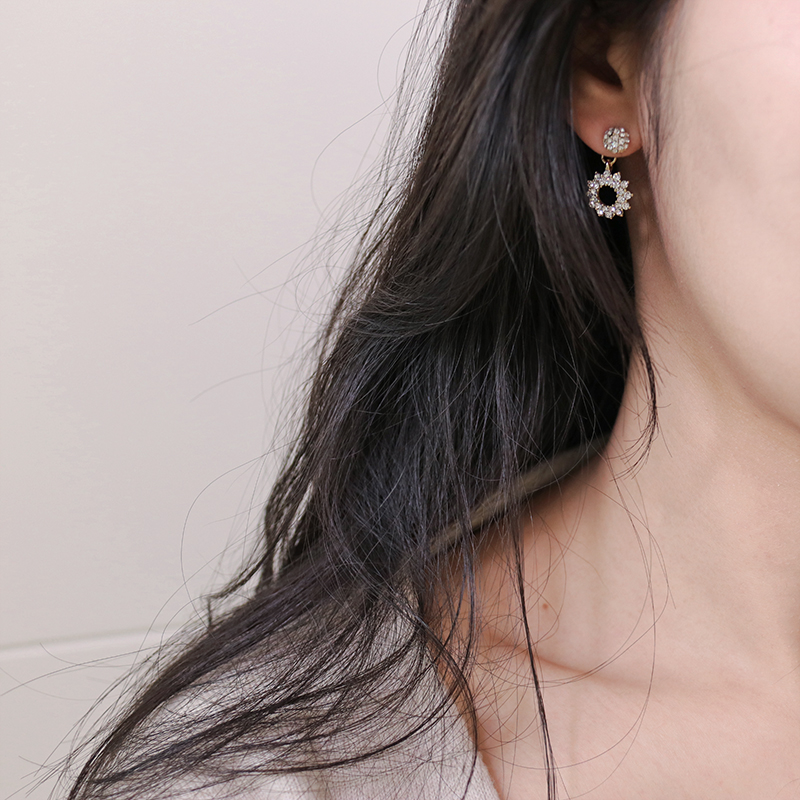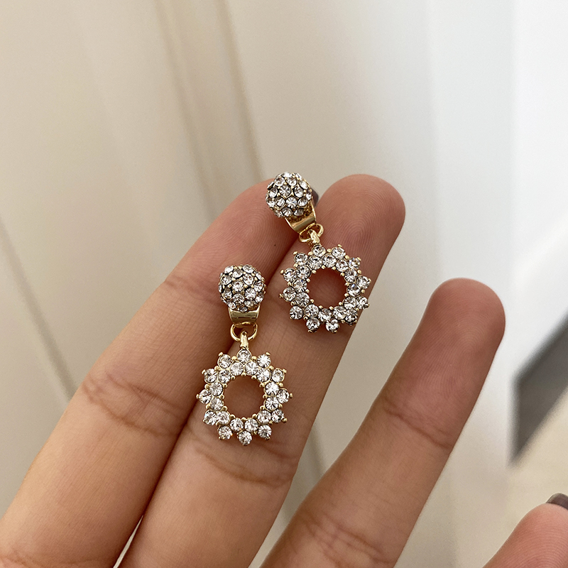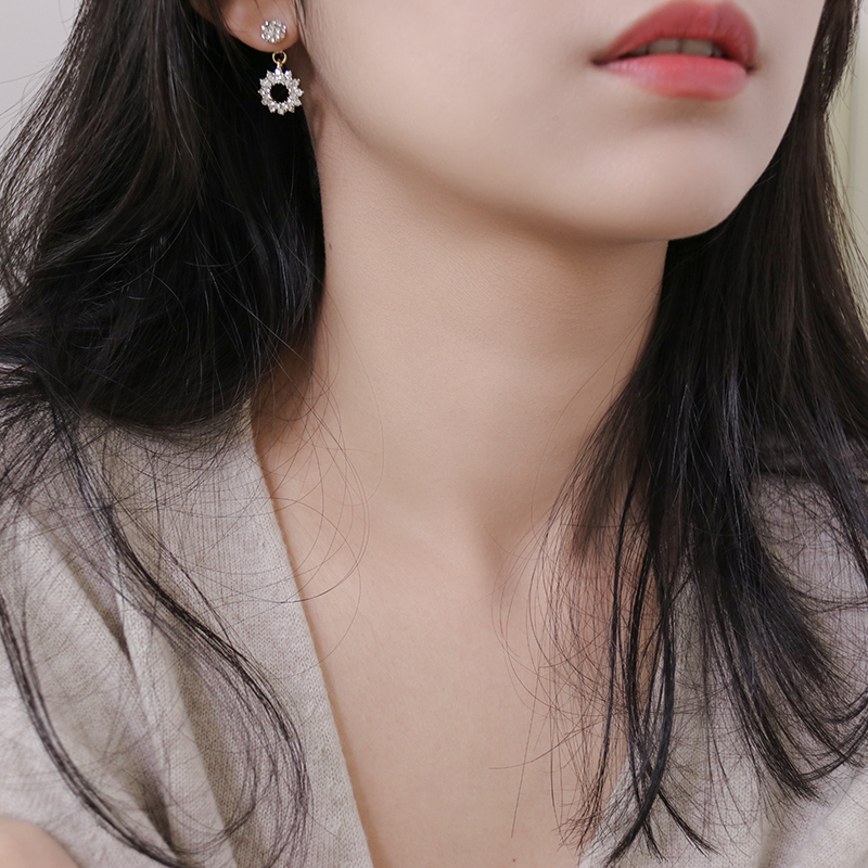高級感S925銀針鑲鉆吊墜耳環精致閃耀網紅時尚簡約個性韓國耳飾1入