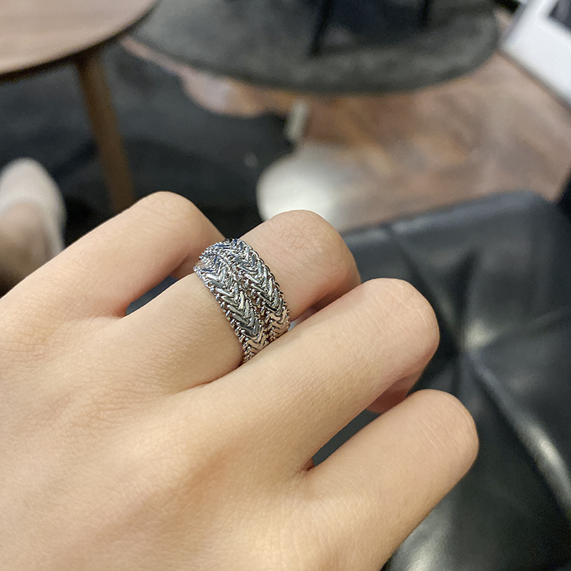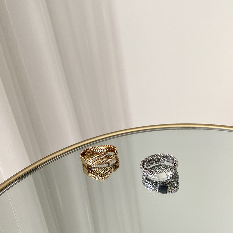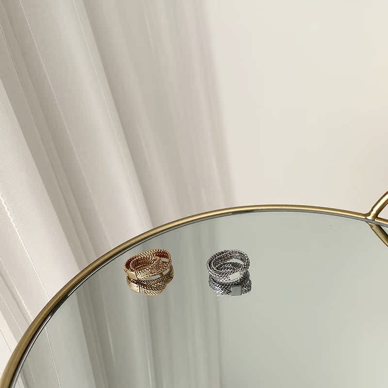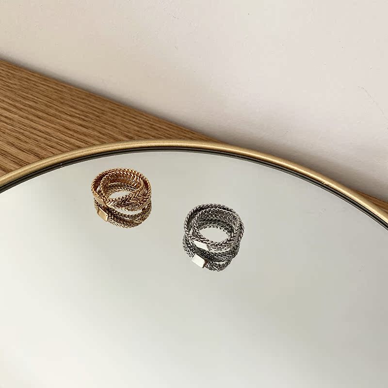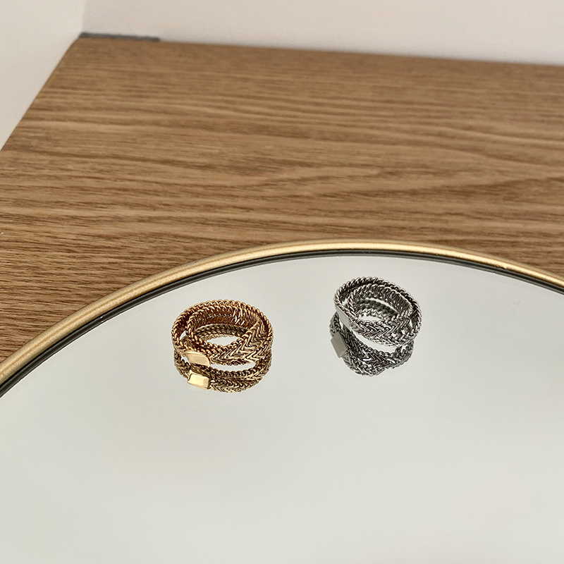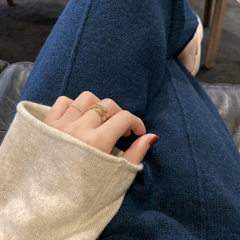 高保色秋冬時髦黃銅鍍真金蛇骨鏈戒指INS風復古冷淡風1入