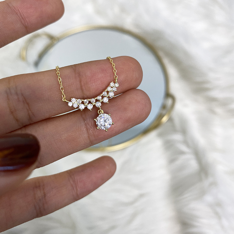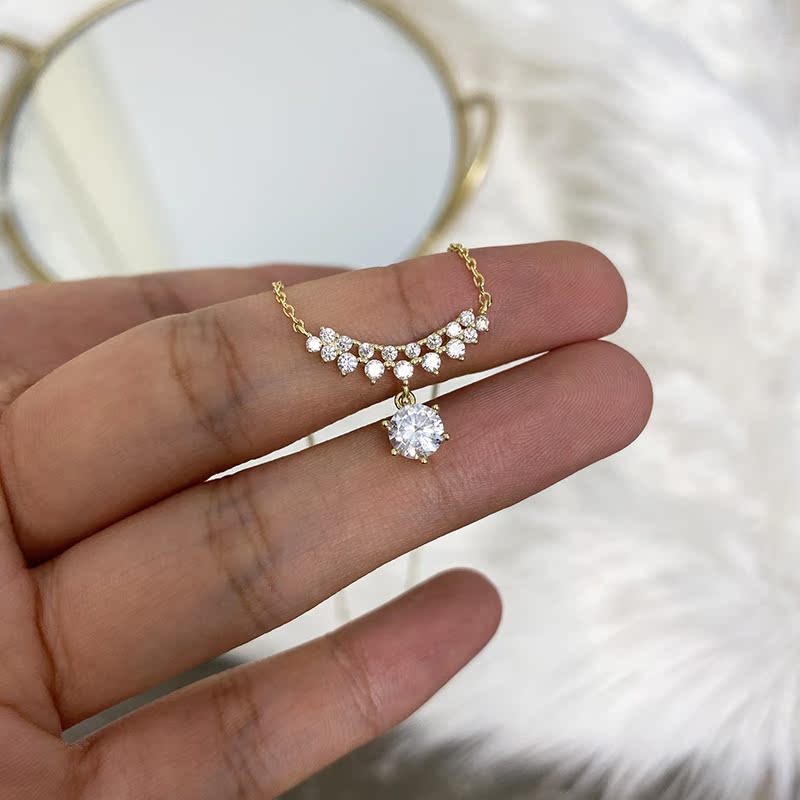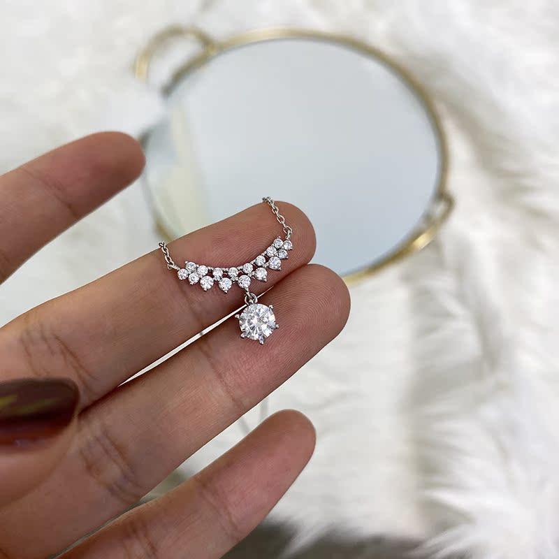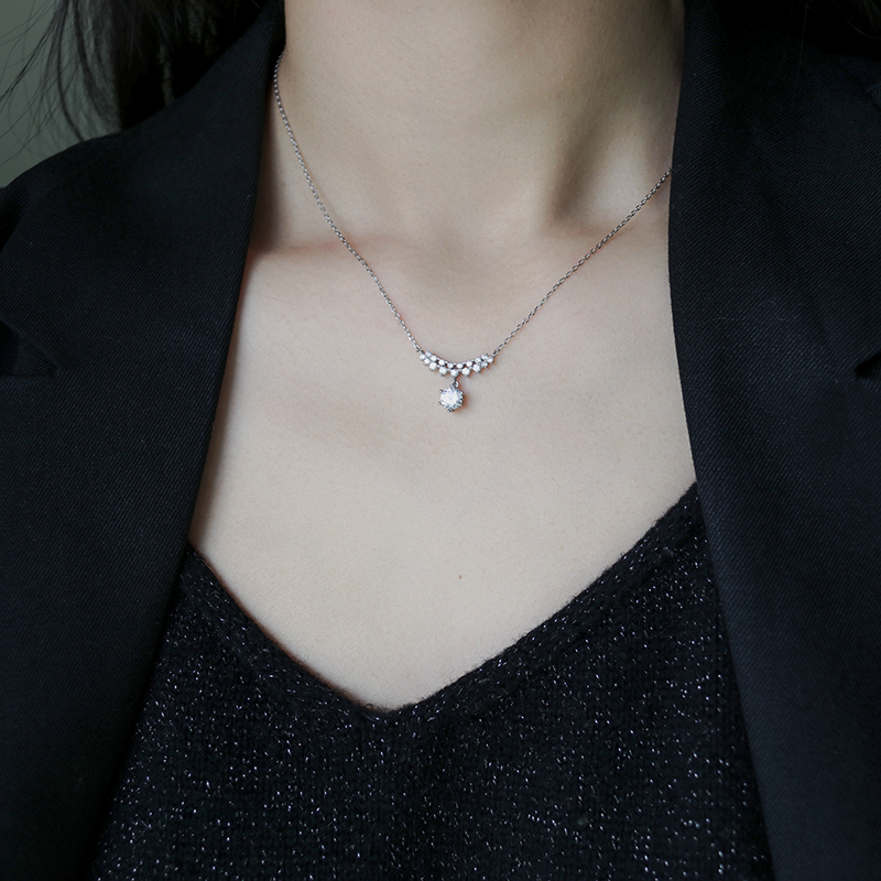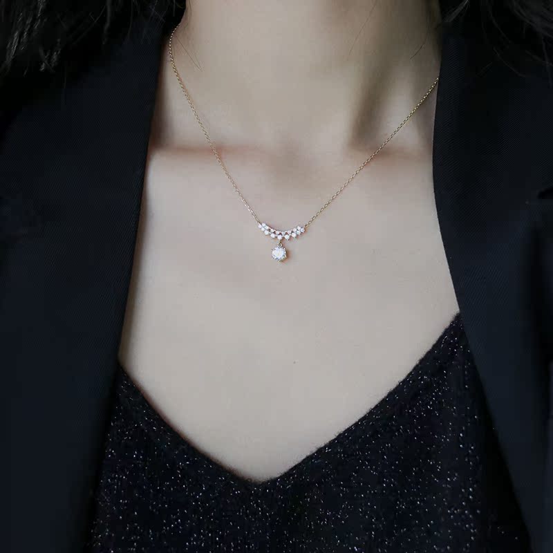 輕奢精致通體925純銀鑲鉆項鏈氣質簡約小眾設計感ins頸鏈鎖骨鏈女1入